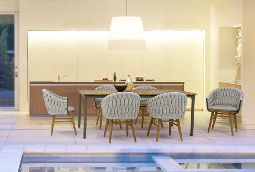 Set mobilier pentru gradina, terasa, Pixel, 2 fotolii + canapea 3 locuri + masuta de cafea, alb sand