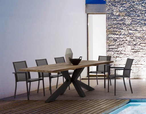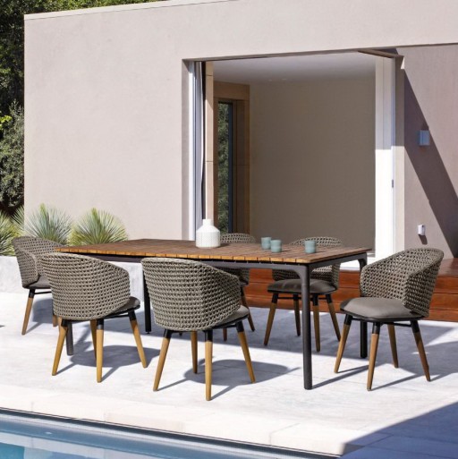Set mobilier pentru gradina, terasa, Pixel, 2 fotolii + canapea 3 locuri + masuta de cafea, gri grafit