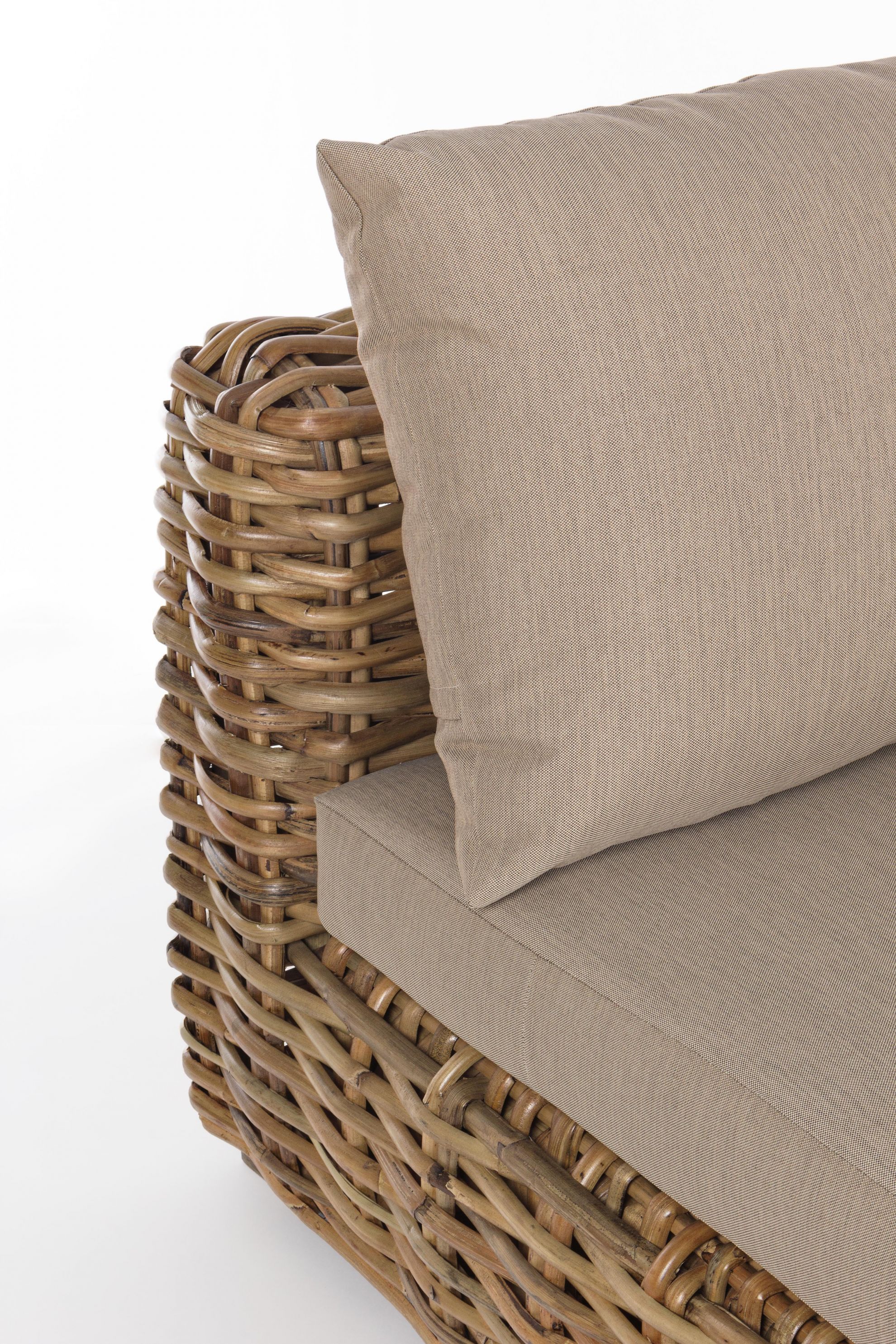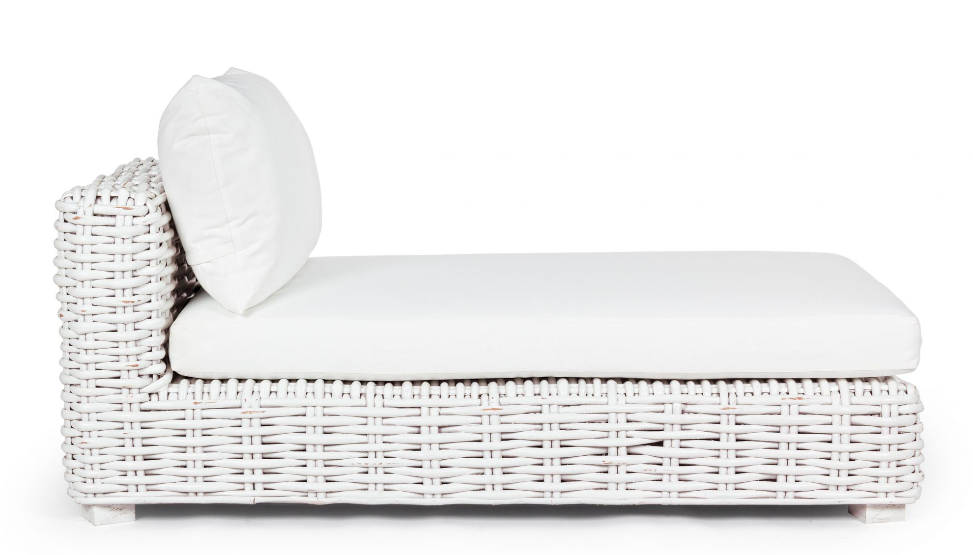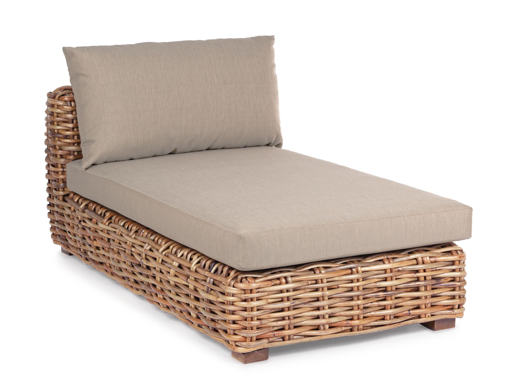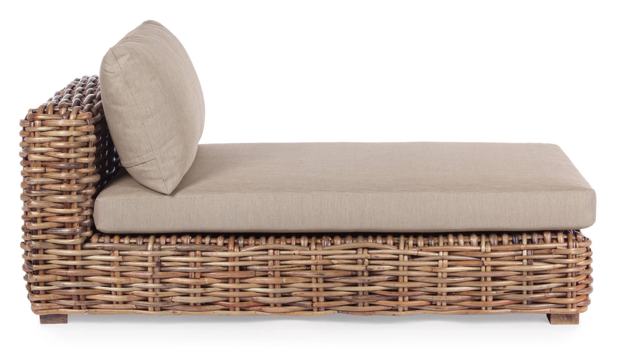 Olivenza de la Bizzotto este o canapea Chaise Lounge cu saltea confortabila si impletitura din ratan.
