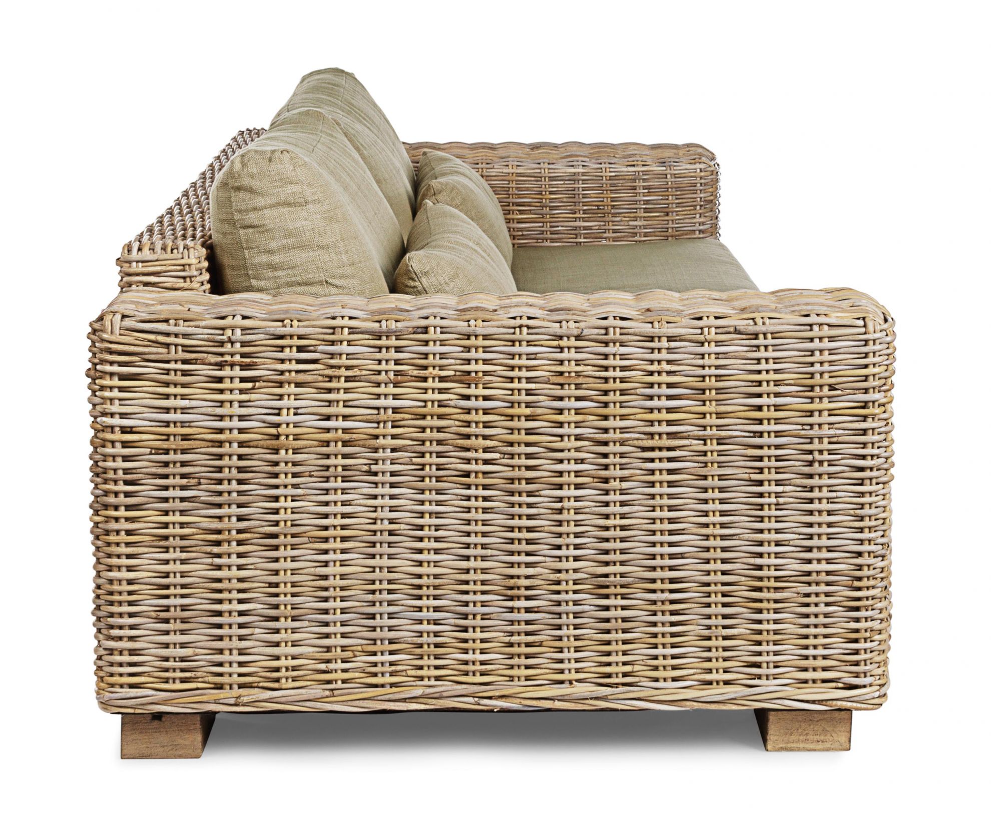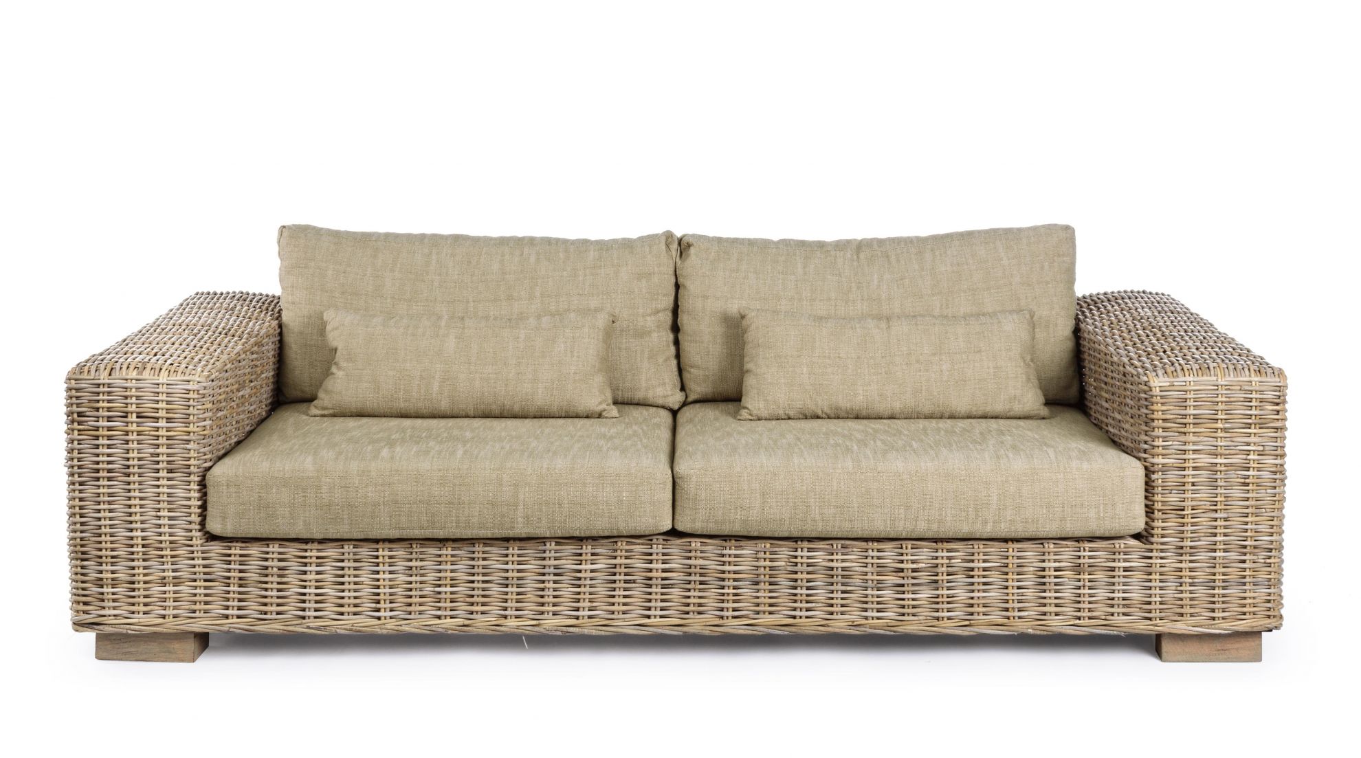 Leandro de la Bizzotto este o canapea fixa, cu 3/4 locuri si impletitura din ratan.