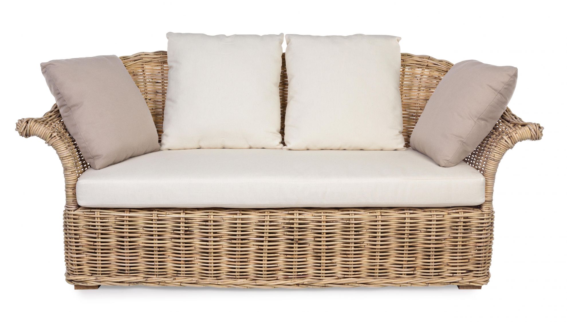 Pamplona de la Bizzotto este o canapea fixa, cu 2 locuri si impletitura din ratan.