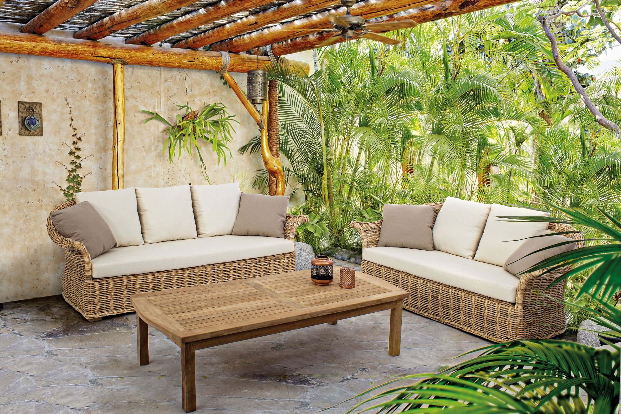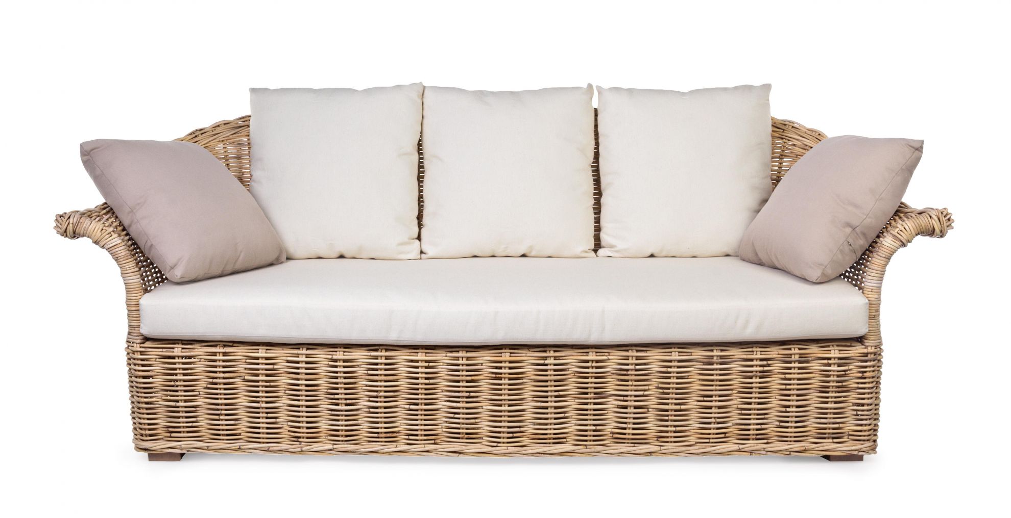 Pamplona de la Bizzotto este o canapea fixa, cu 3 locuri si impletitura din ratan.