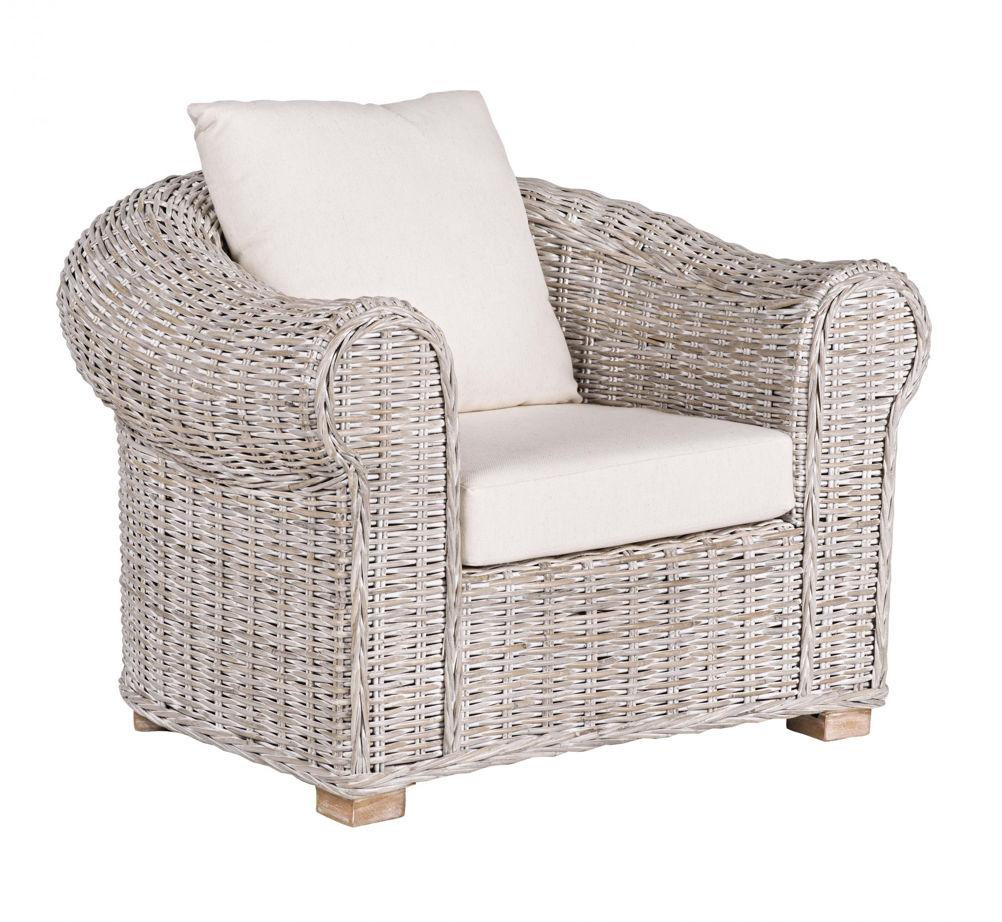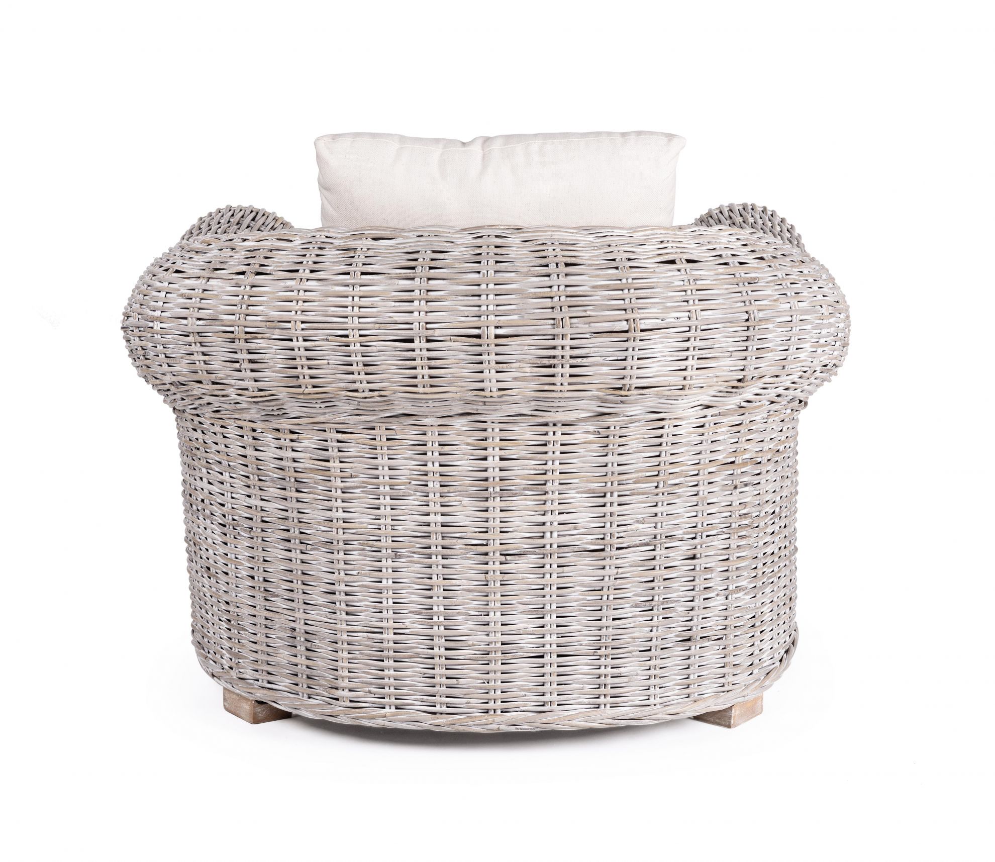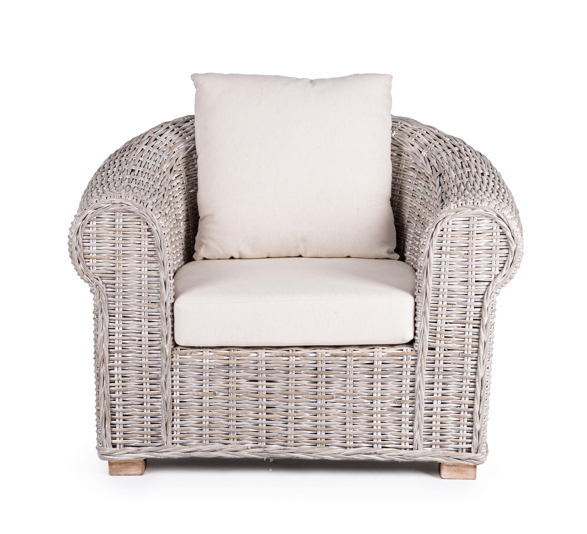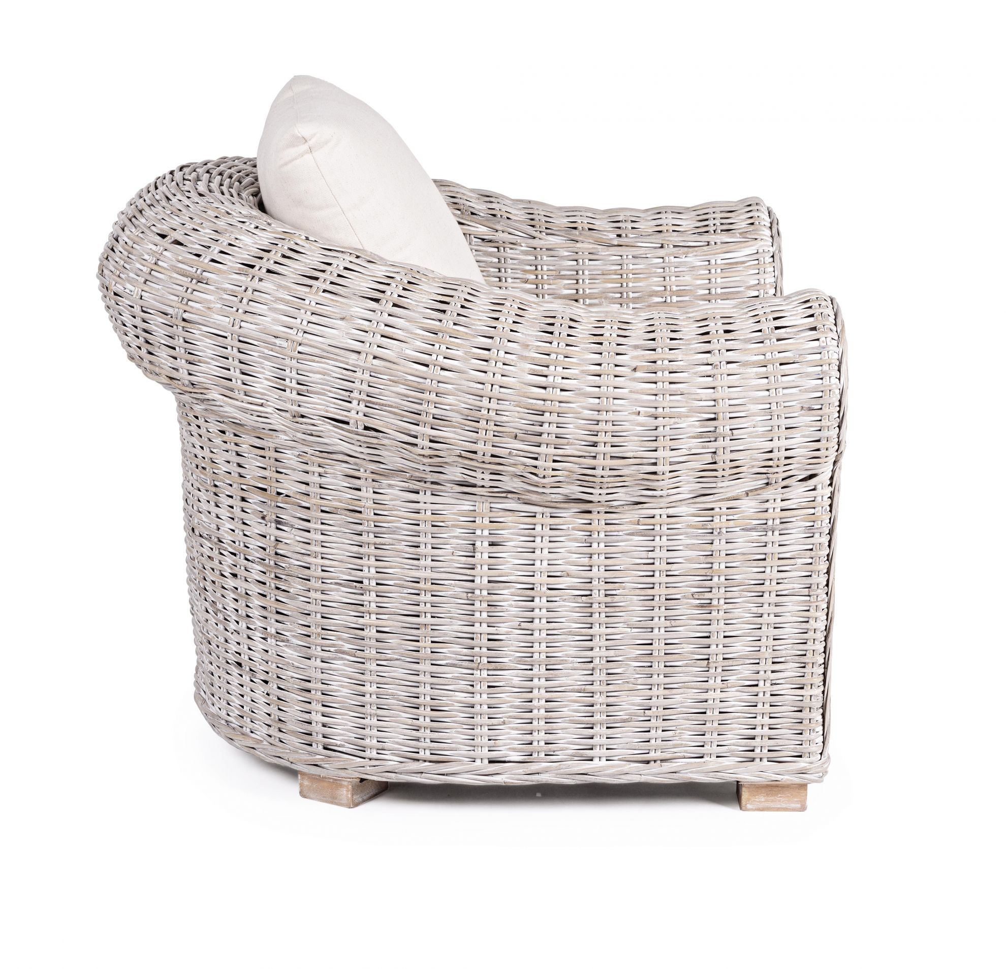 Coba de la Bizzotto este un fotoliu cu perna confortabila si impletitura din ratan.