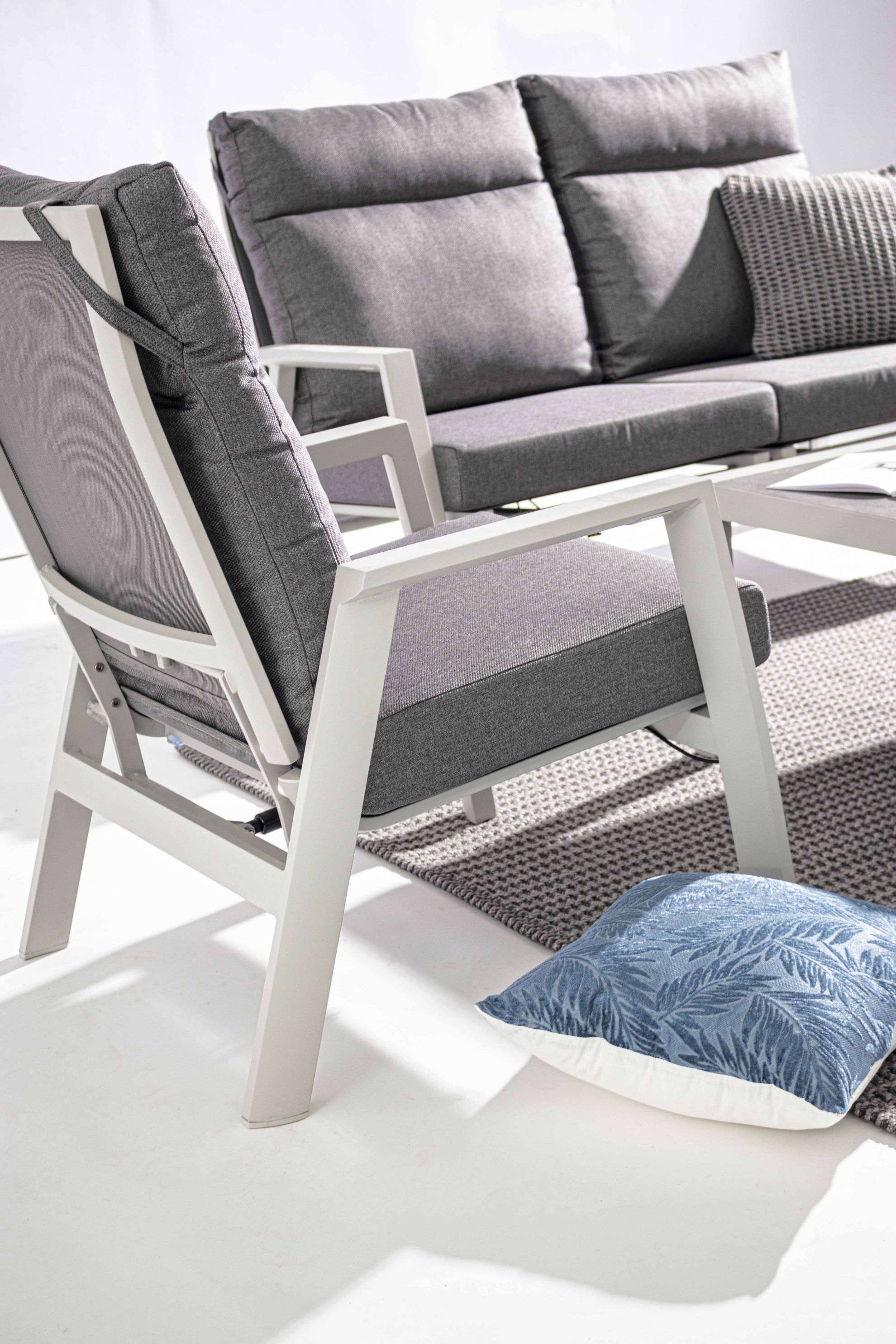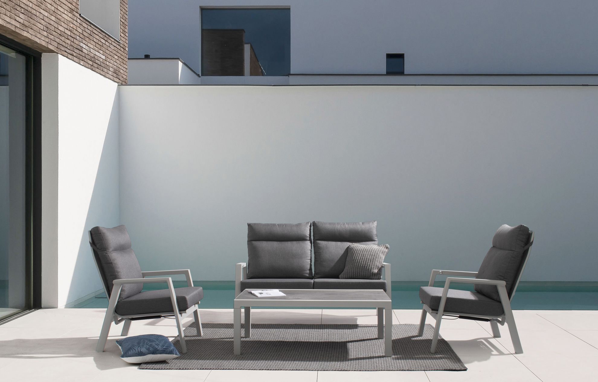 Fotoliu pentru exterior cu stuctura din aluminiu.