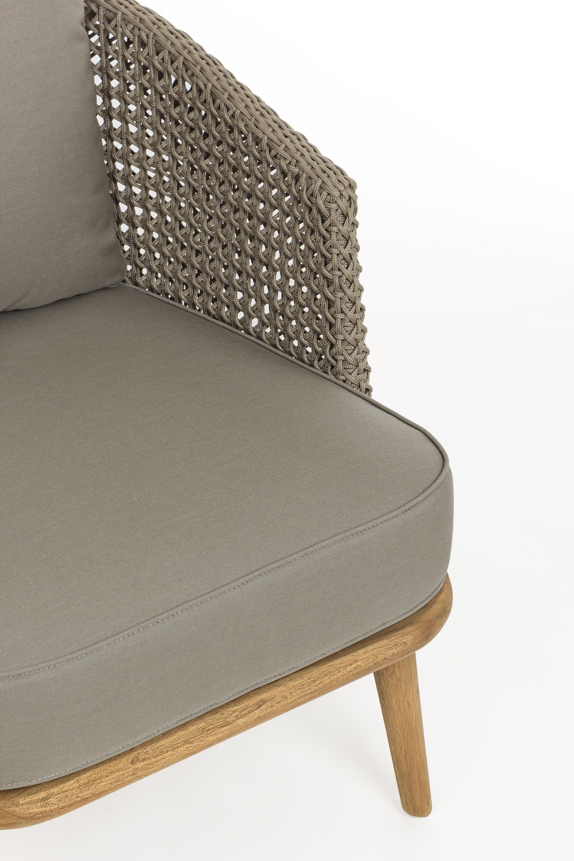 Picioare din lemn de tec cu finisaj rustic.
