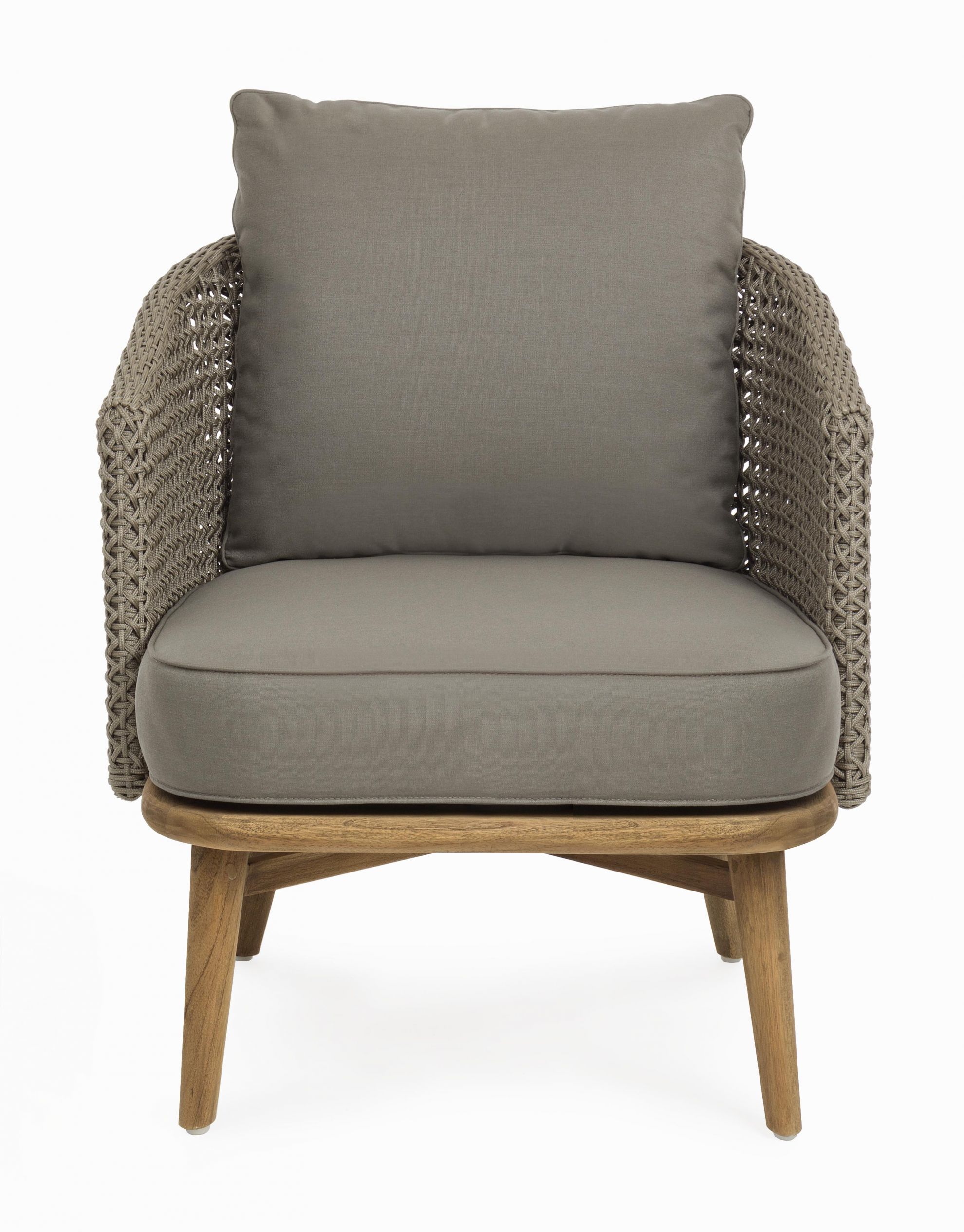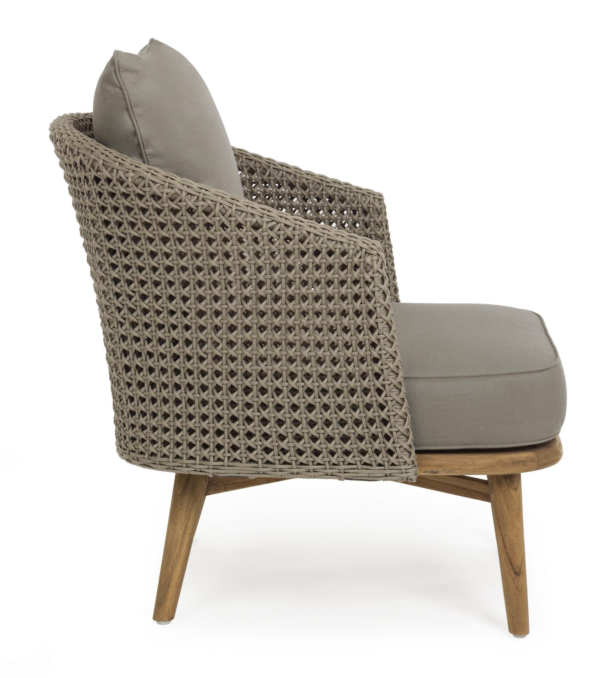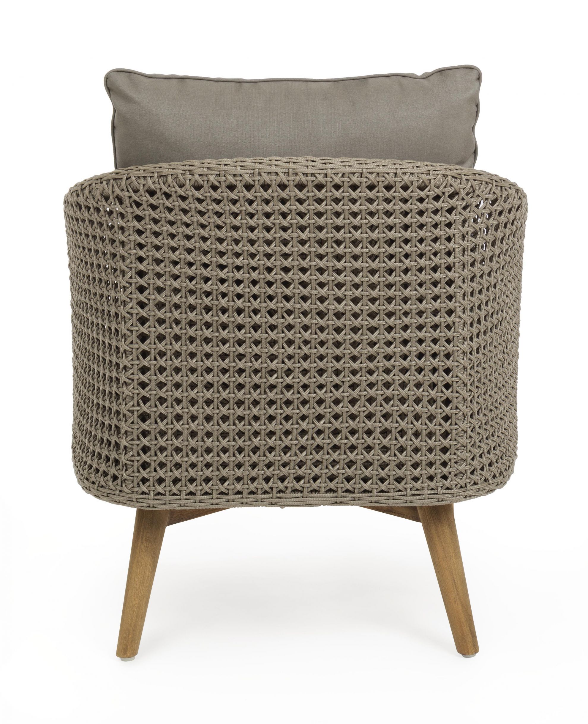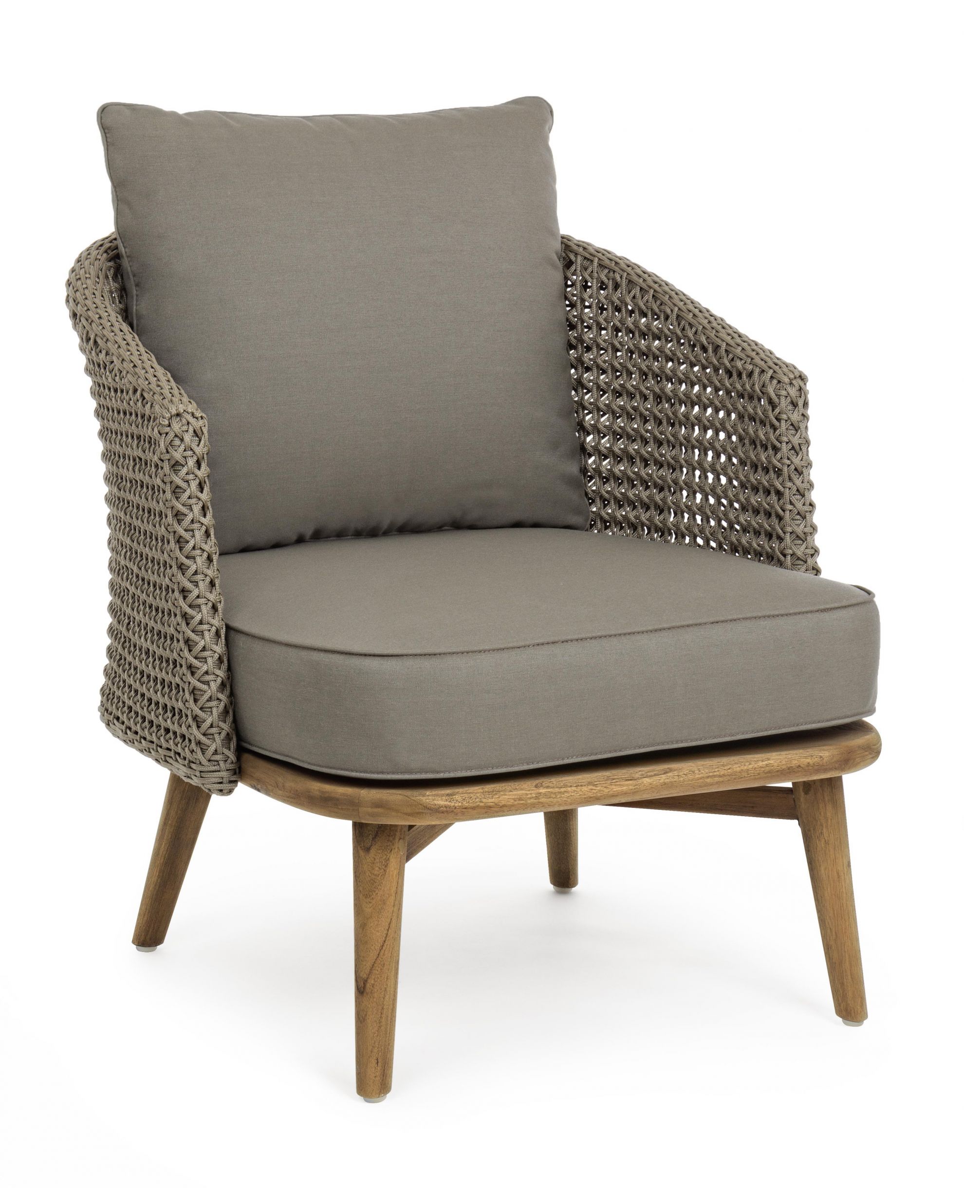 Fotoliu pentru exterior cu stuctura din aluminiu si picioare din lemn.