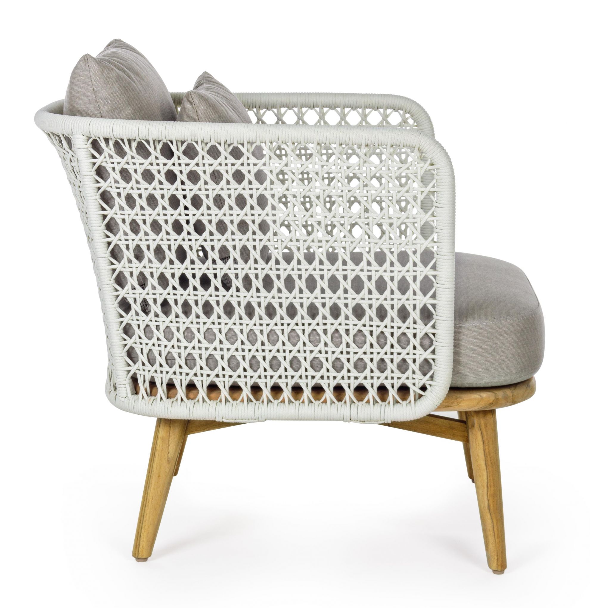 Culoare: Gri (Perne) / Alb (Laterale) / Maro lemn de Tec (Picioare).