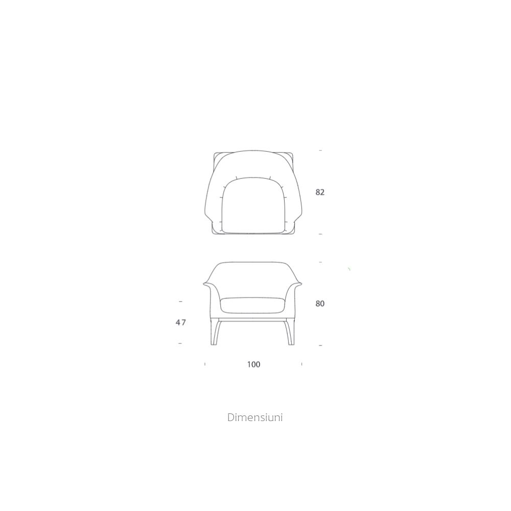 Dimensiuni: L 100 x h 80 x A 82 cm. / inaltime sezut: 47 cm.
