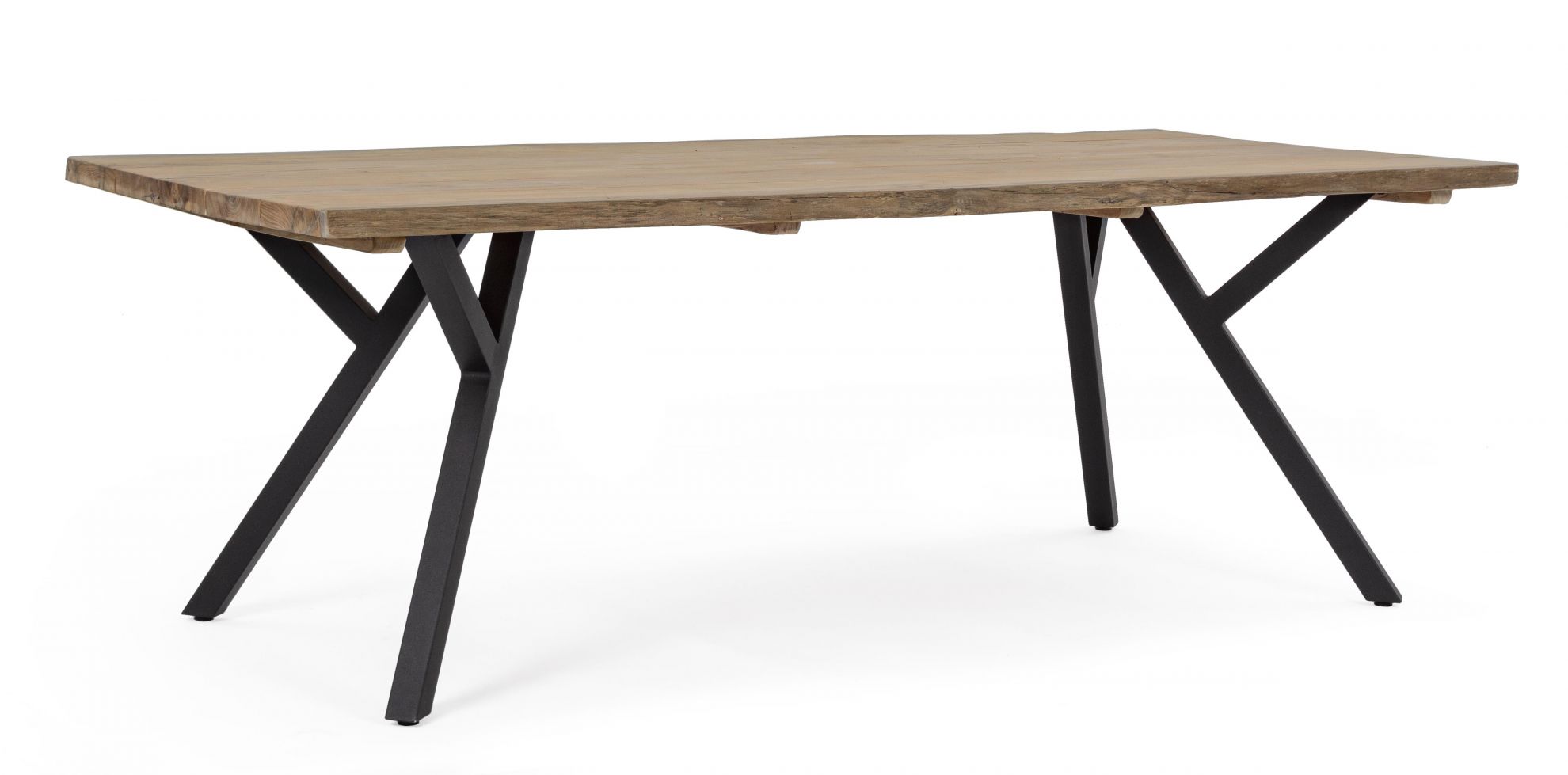 Coleman este o masa pentru exterior cu picioare din aluminiu si blat din lemn de tec.