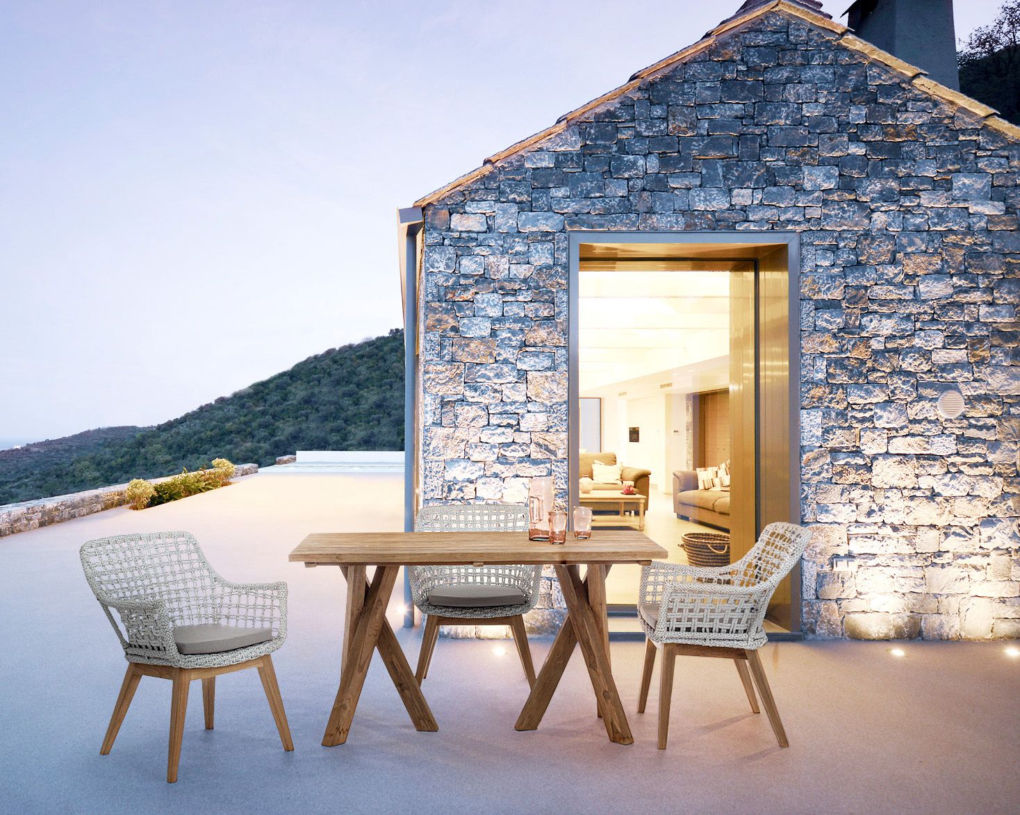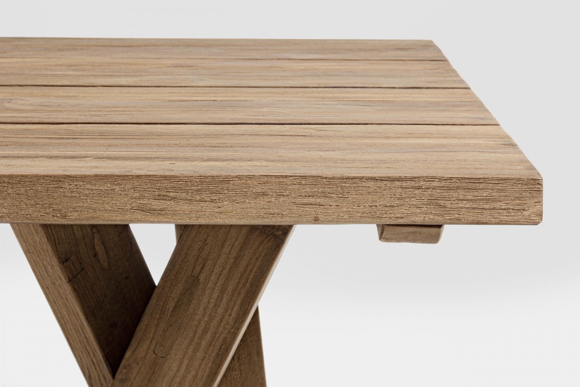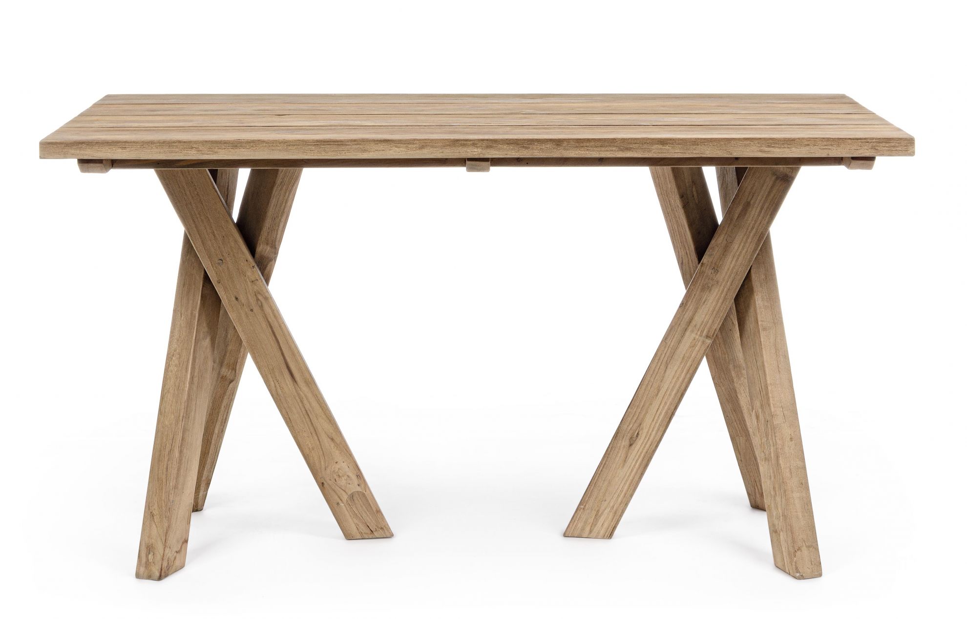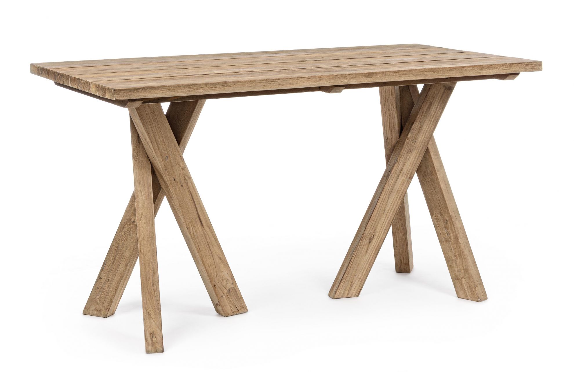 Masa pentru exterior realizata din lemn de tec reciclat FSC, finisaj natural, vopsea pe baza de apa.