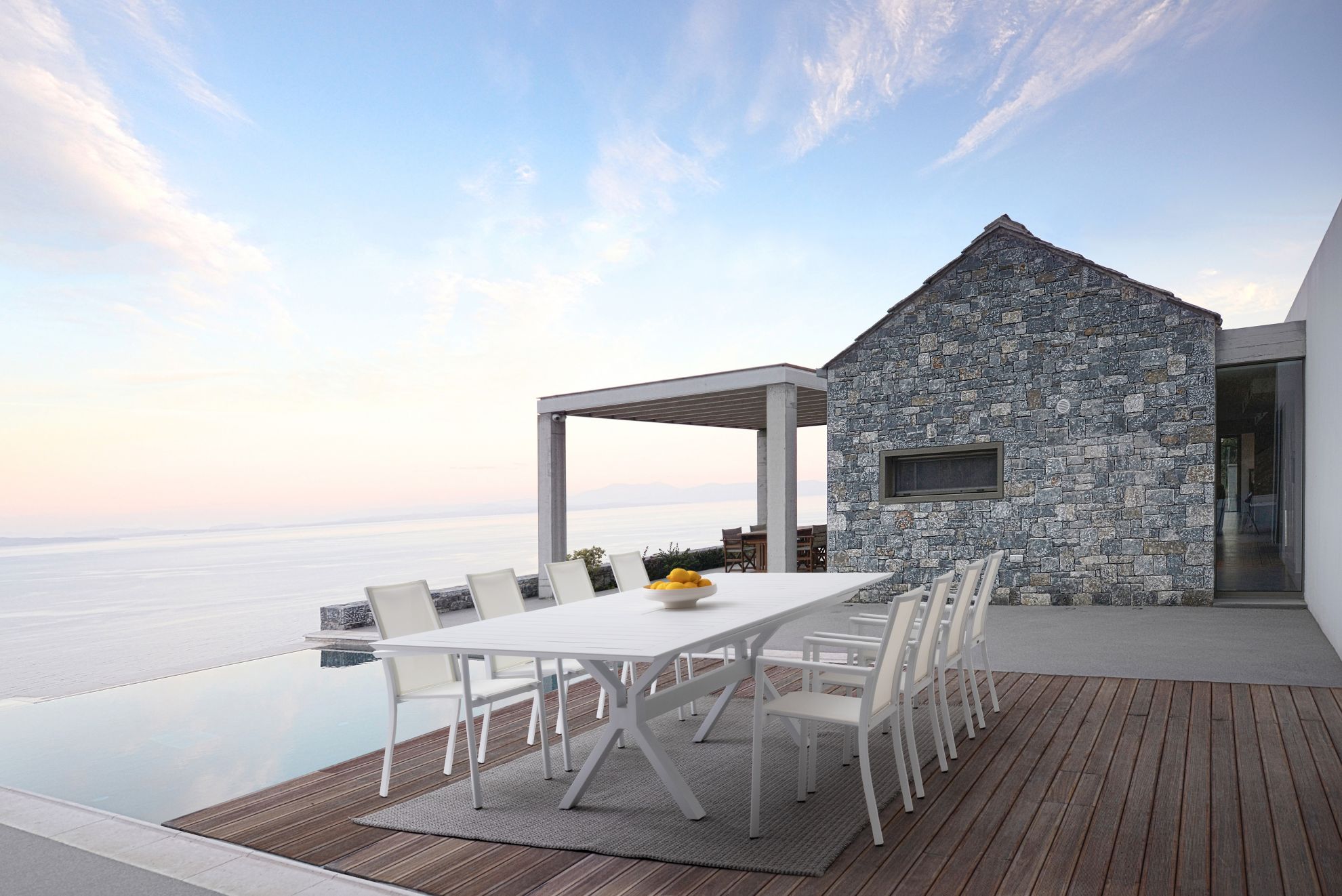 Kenyon este o masa extensibila pentru exterior confectionata din aluminiu vopsit electrostatic.