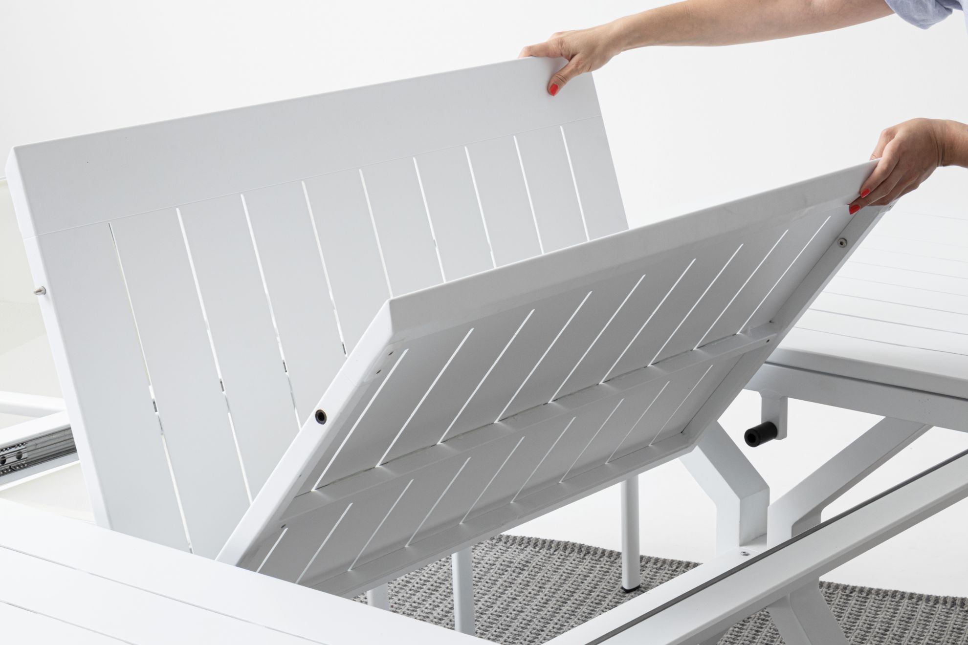 Picioare si blat din aluminiu vopsit electrostatic.