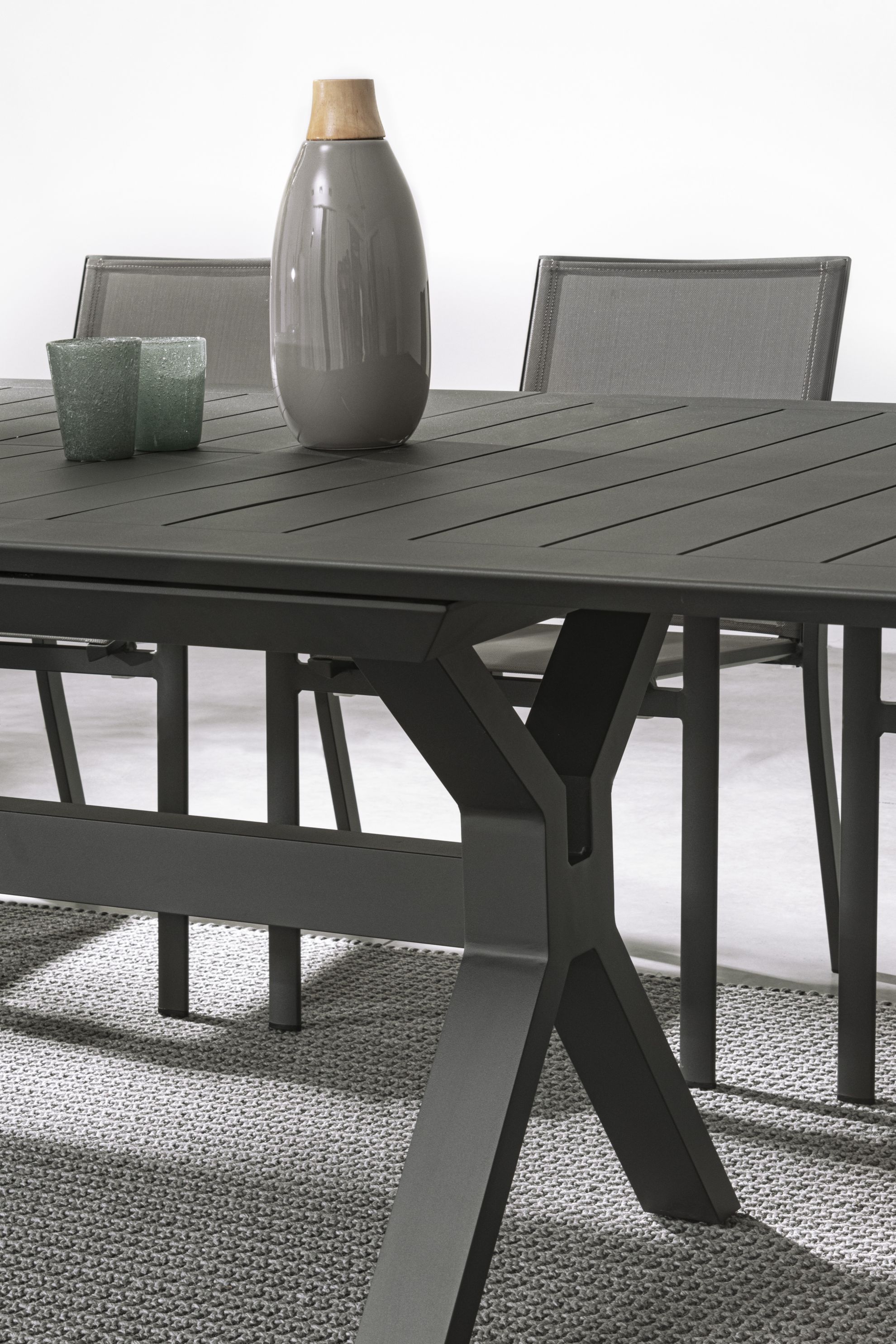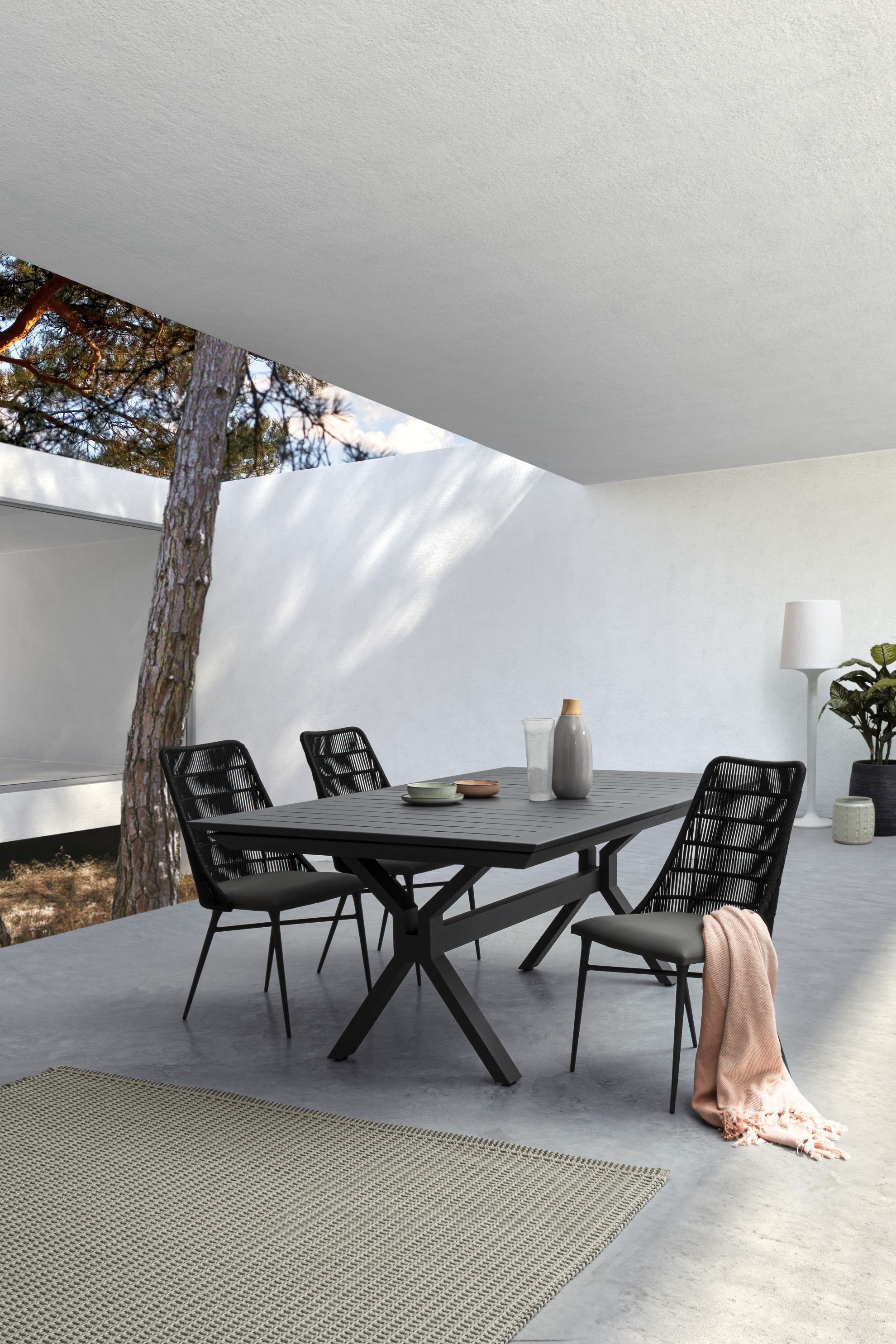 Kenyon este o masa extensibila pentru exterior confectionata din aluminiu vopsit electrostatic.