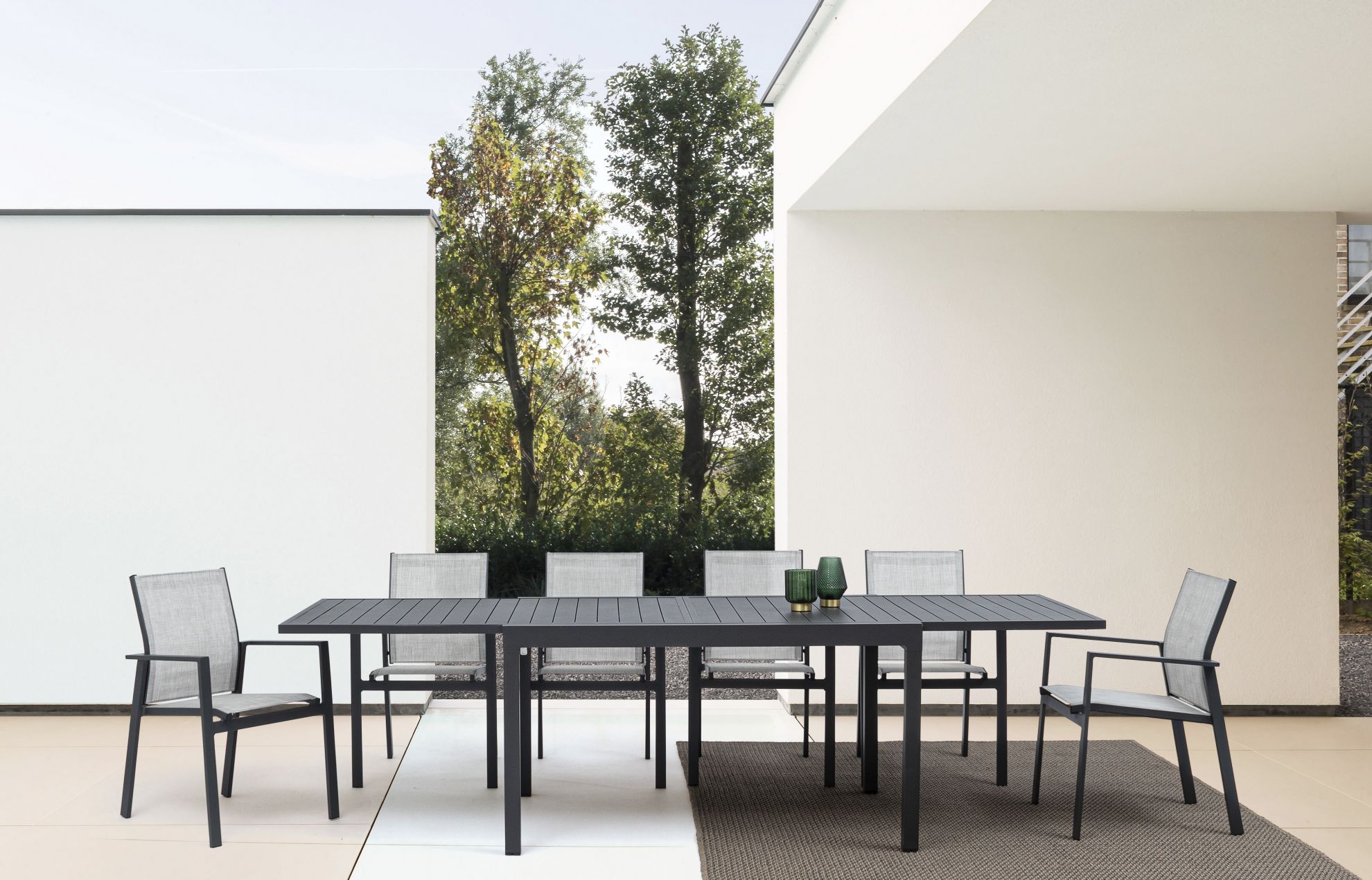 Pelagius este o masa extensibila pentru exterior confectionata din aluminiu vopsit electrostatic.