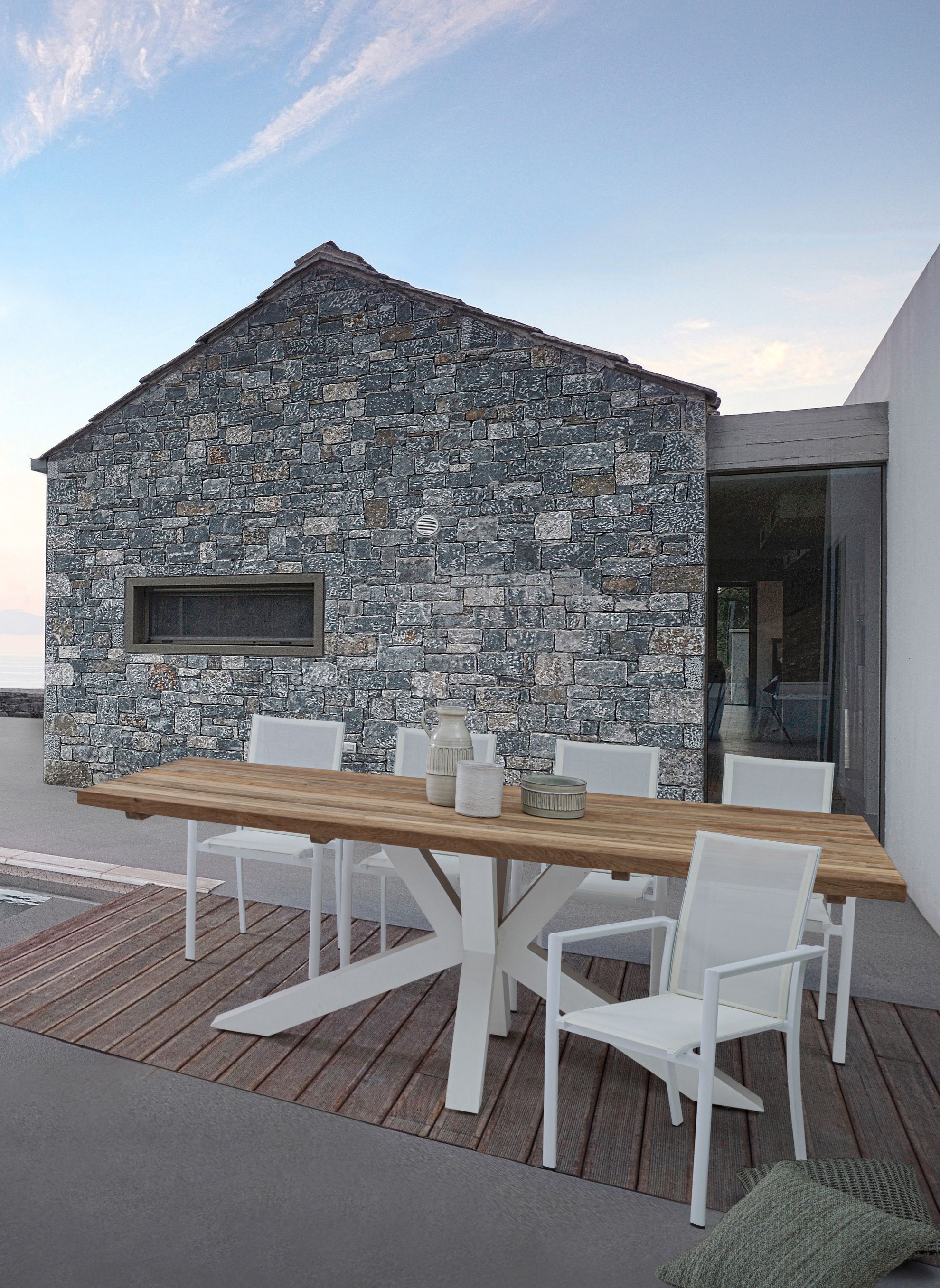 Ramsey este o masa pentru exterior cu picioare din aluminiu si blat din lemn de tec.