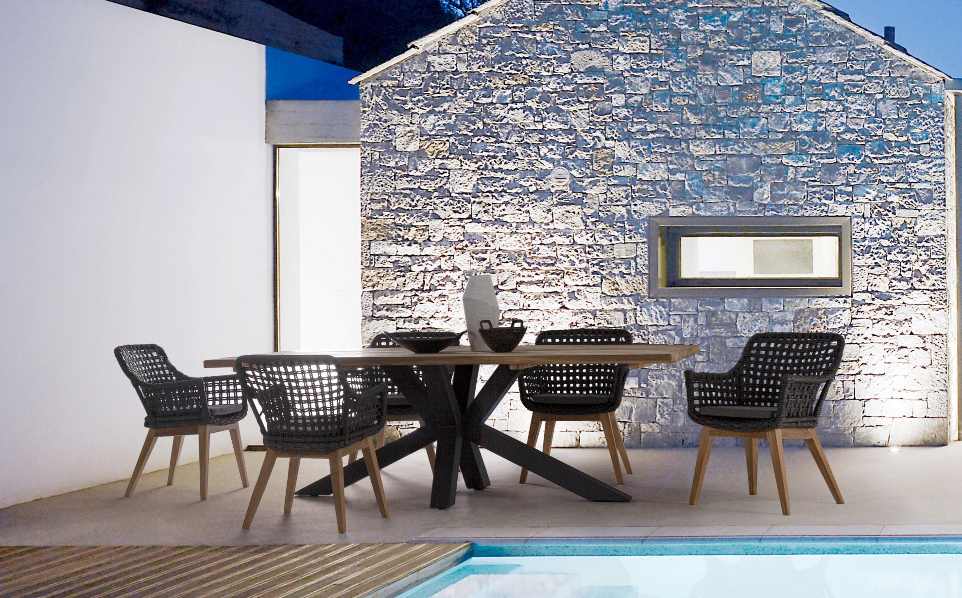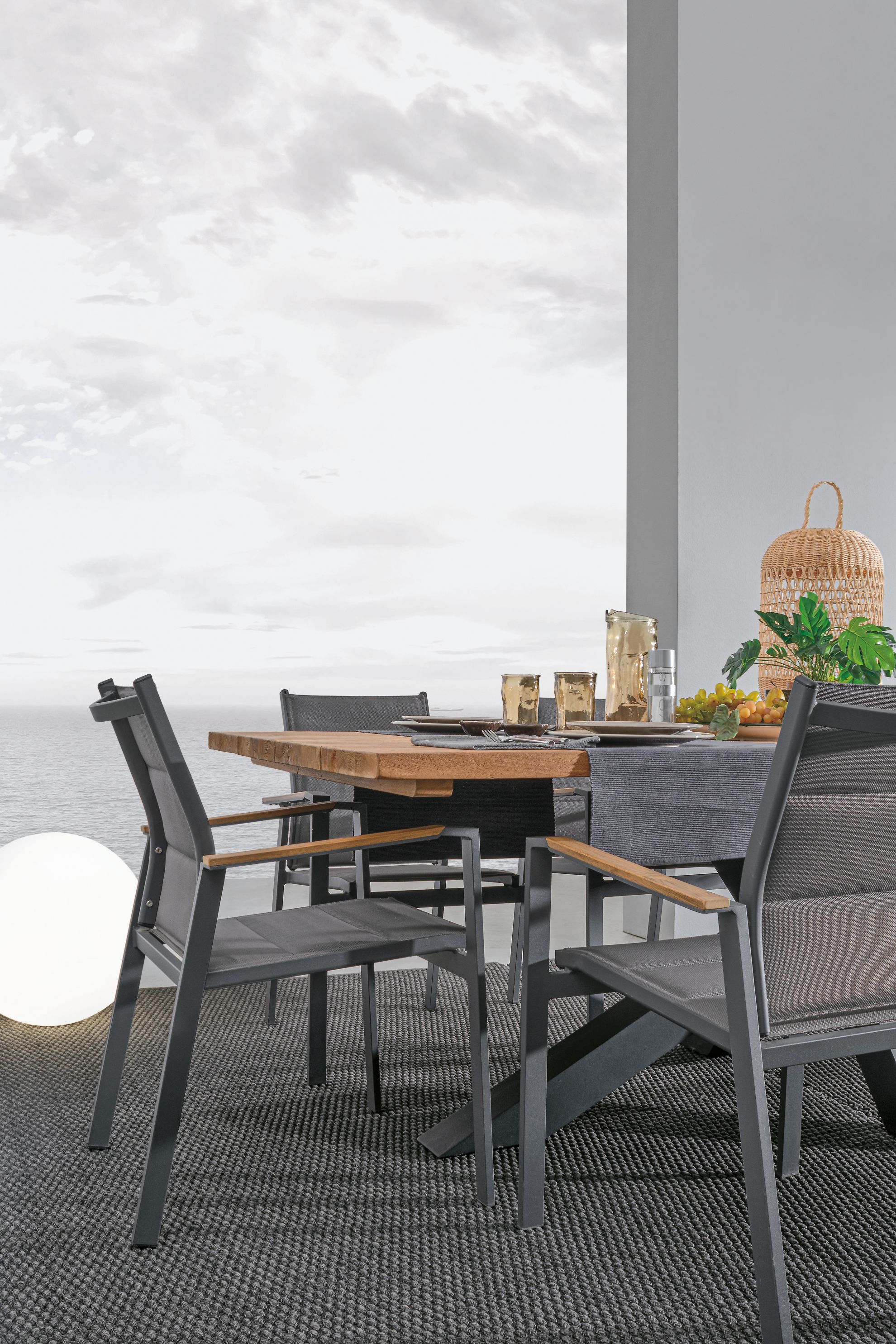 Ramsey este o masa pentru exterior cu picioare din aluminiu si blat din lemn de tec.