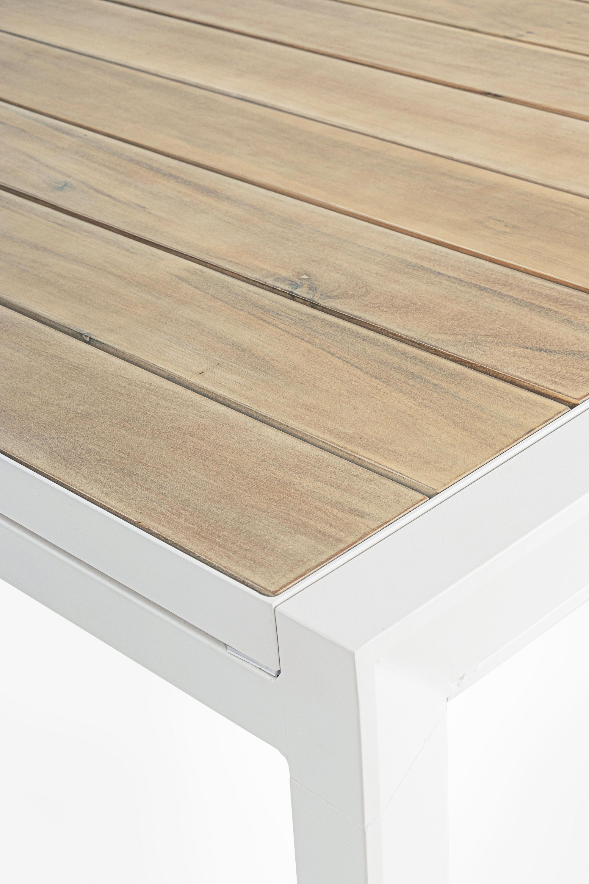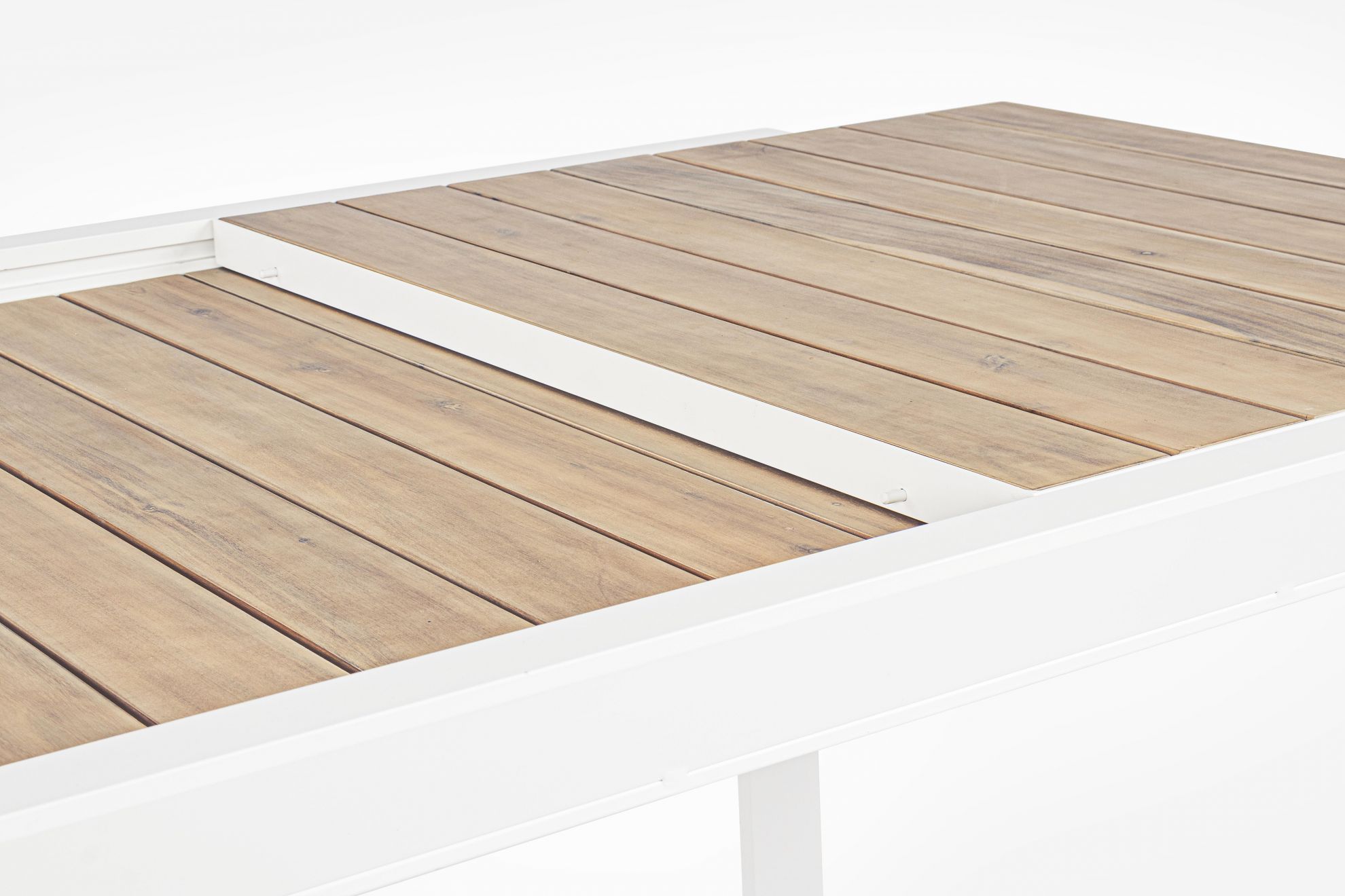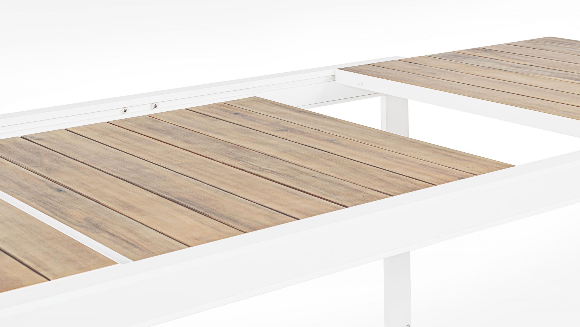 Masa extensibila pentru exterior cu stuctura din aluminiu si blat din lemn de acacia.