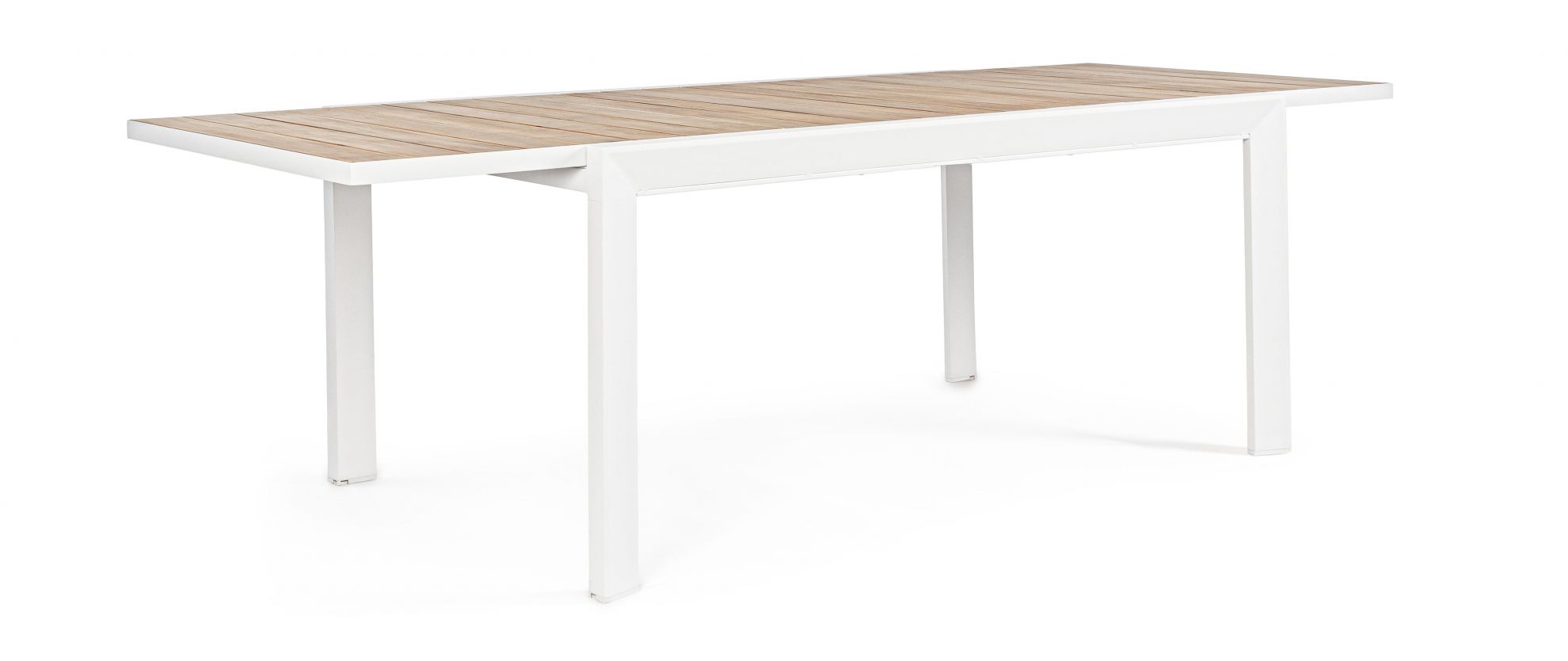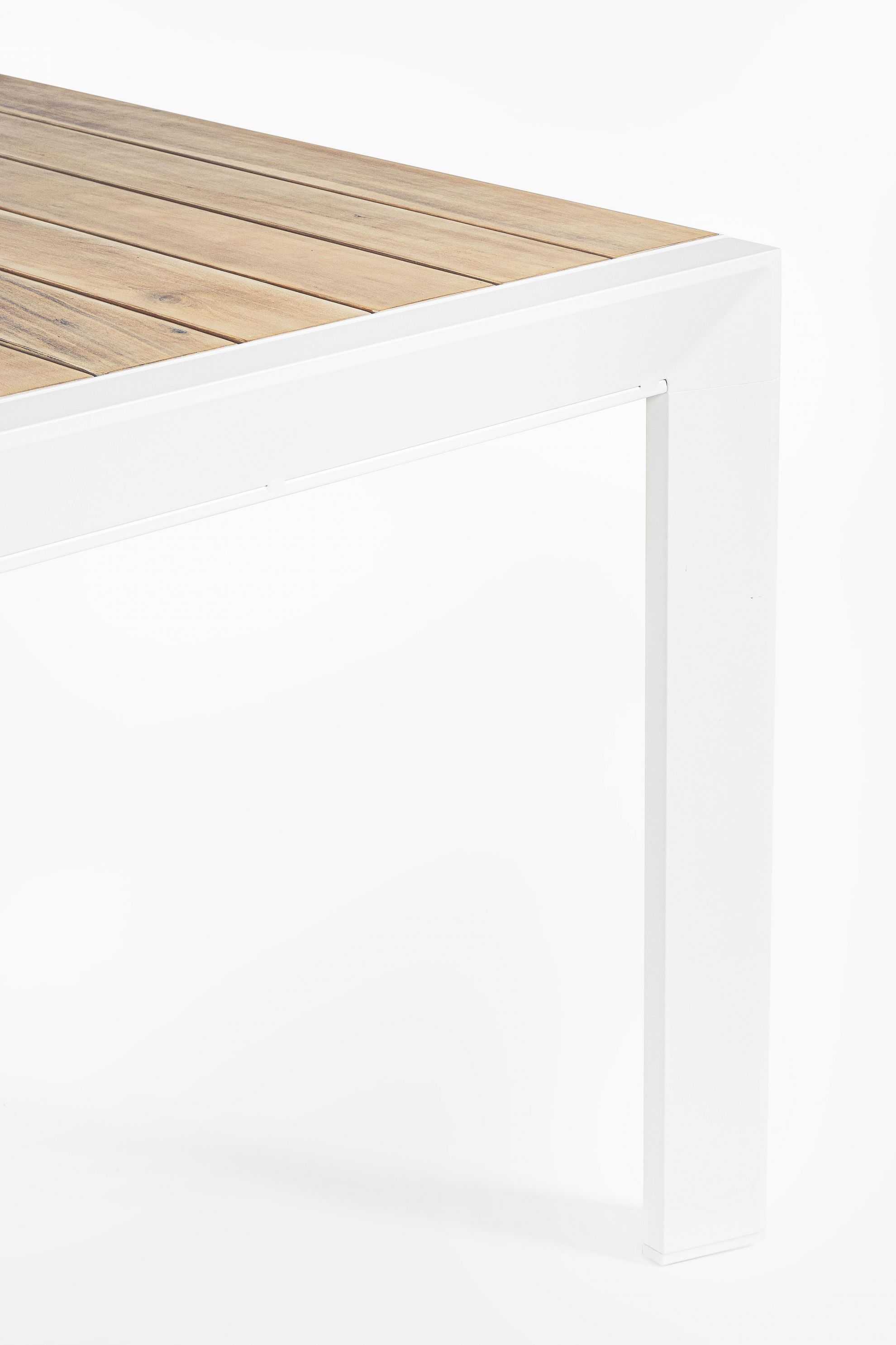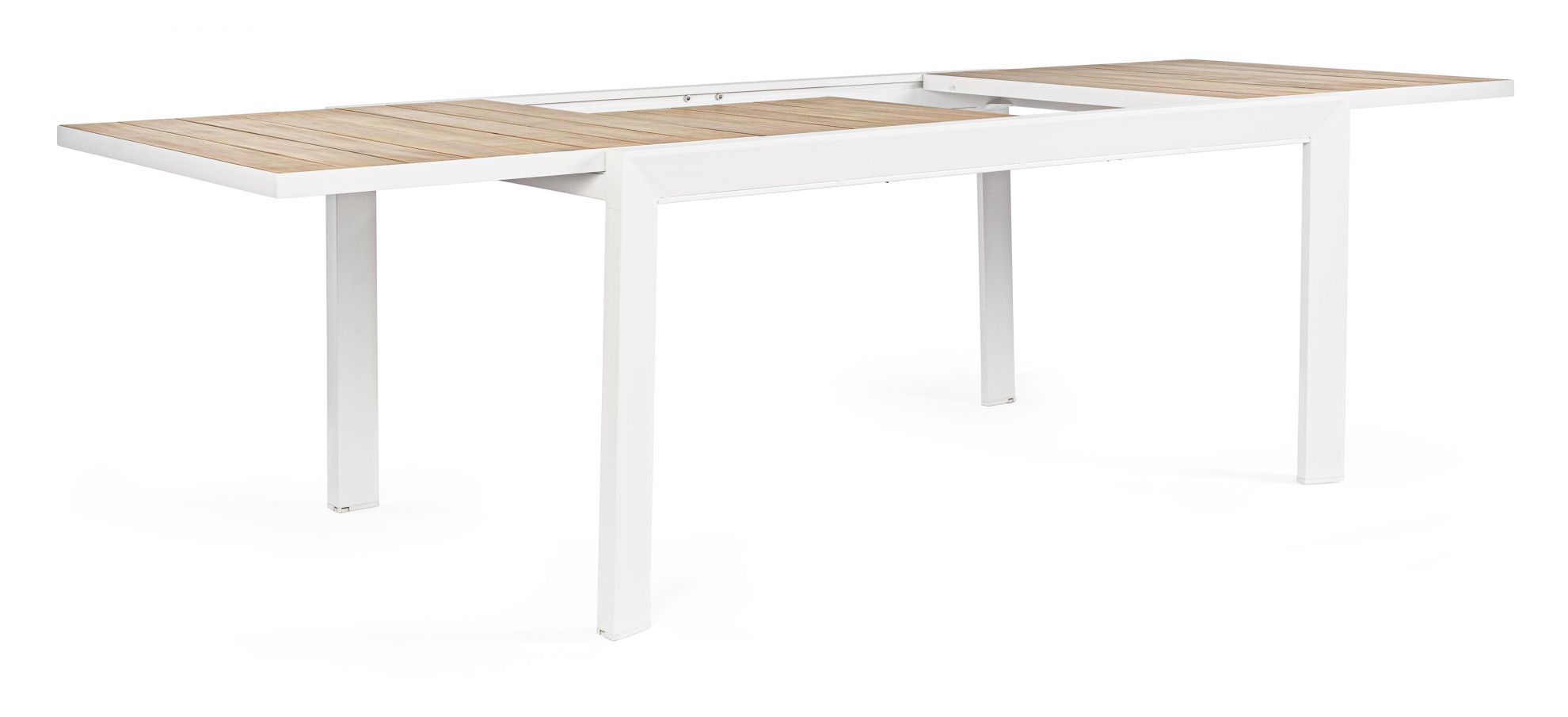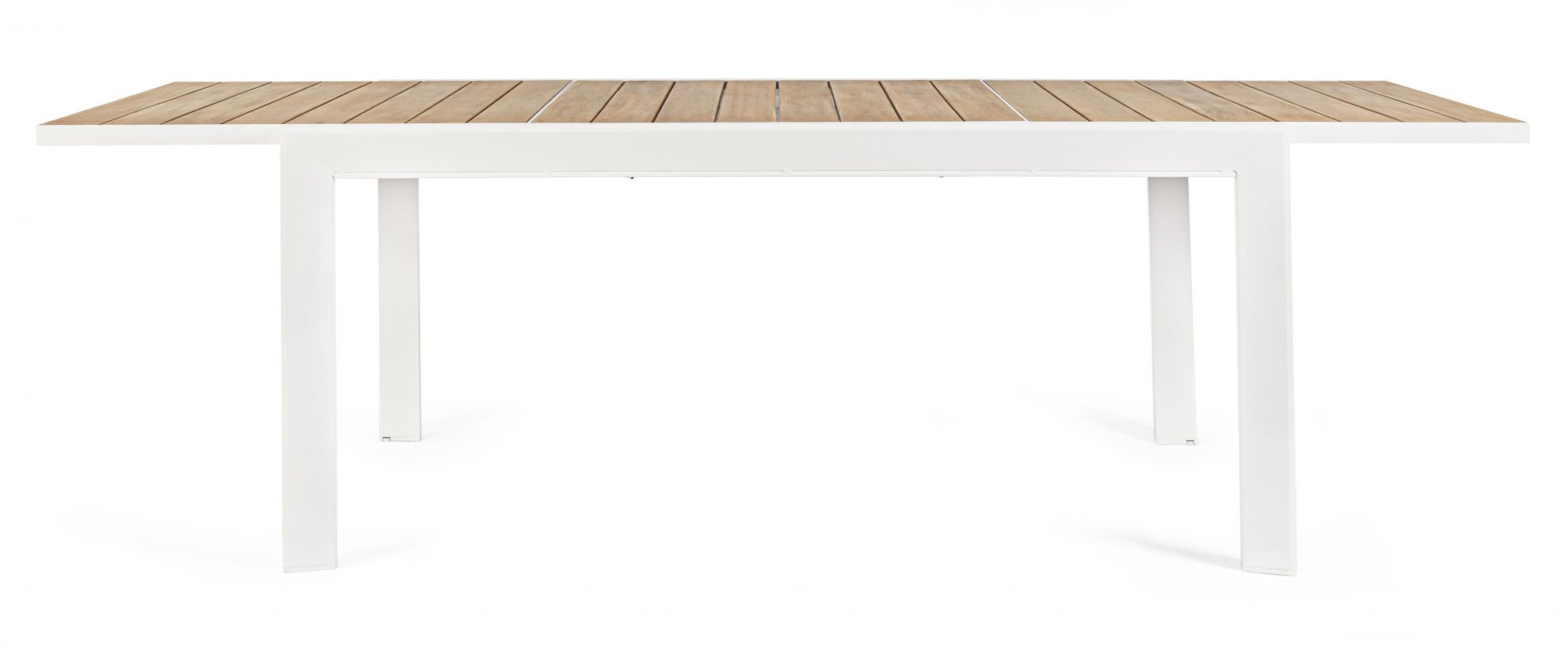 Masa extensibila pentru exterior cu stuctura din aluminiu si blat din lemn de acacia.