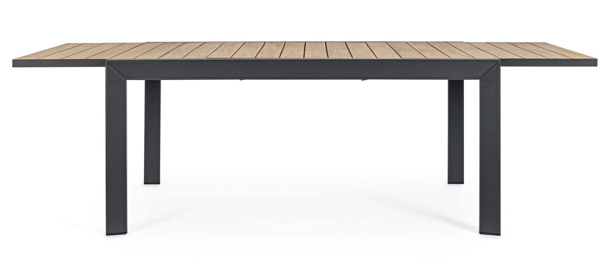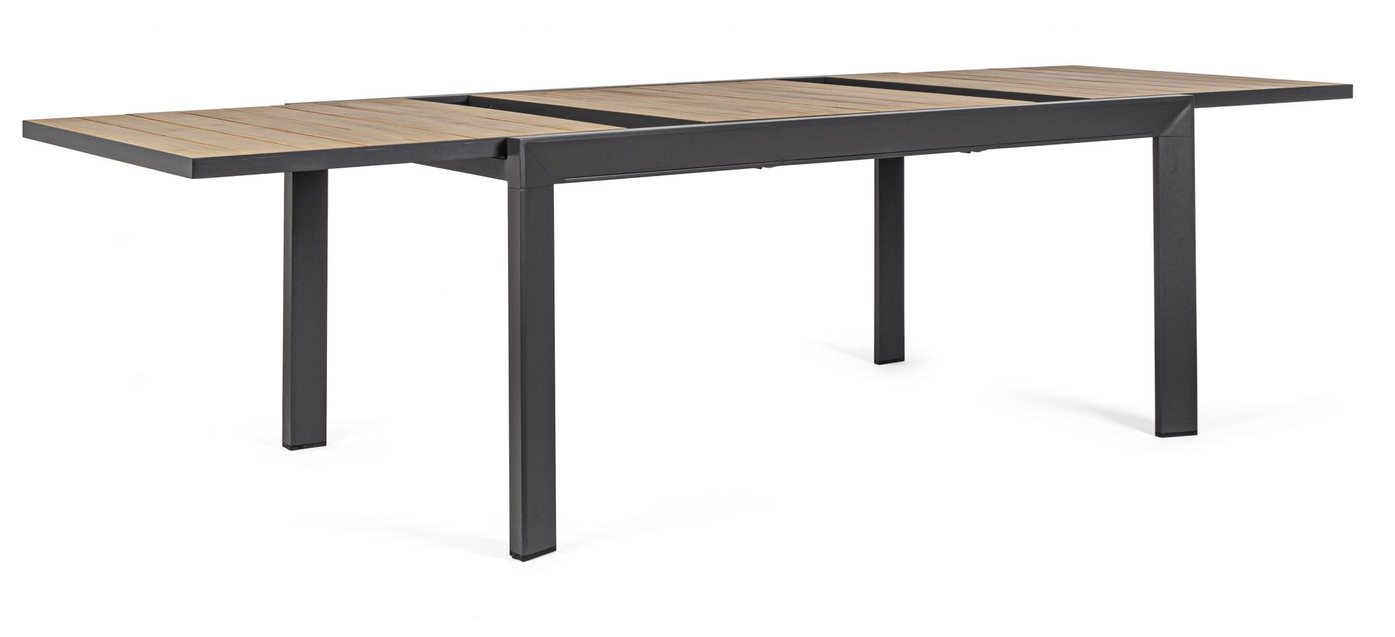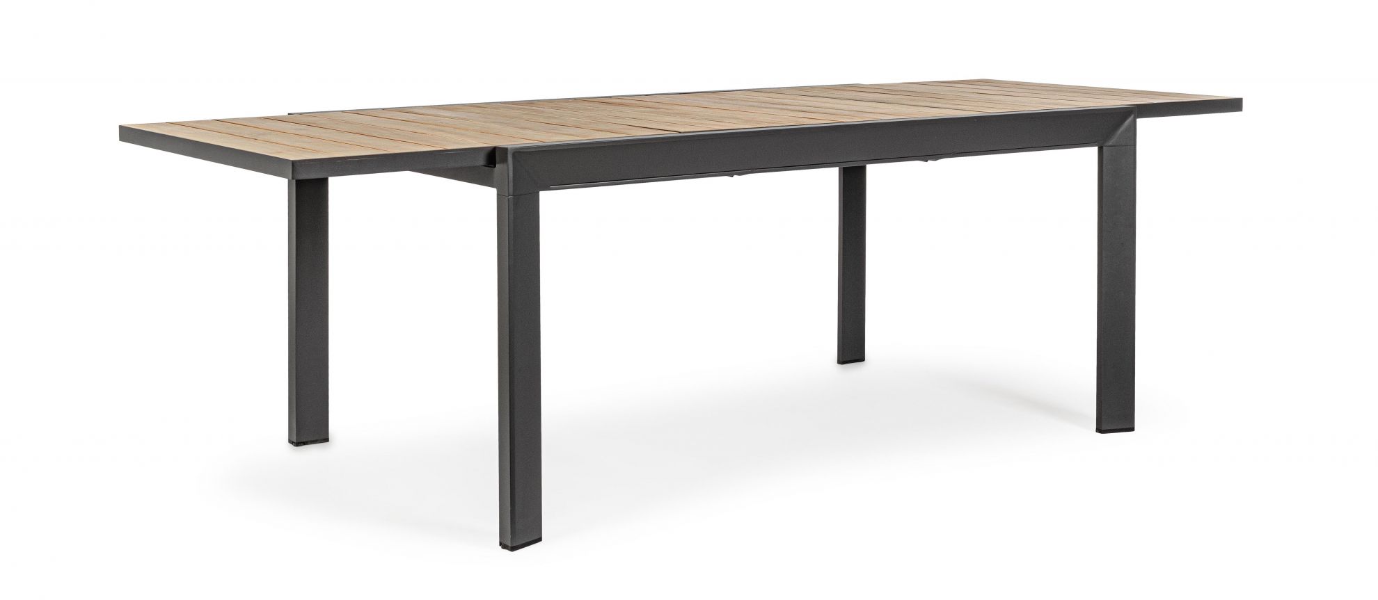 Masa extensibila pentru exterior cu stuctura din aluminiu si blat din lemn de acacia.