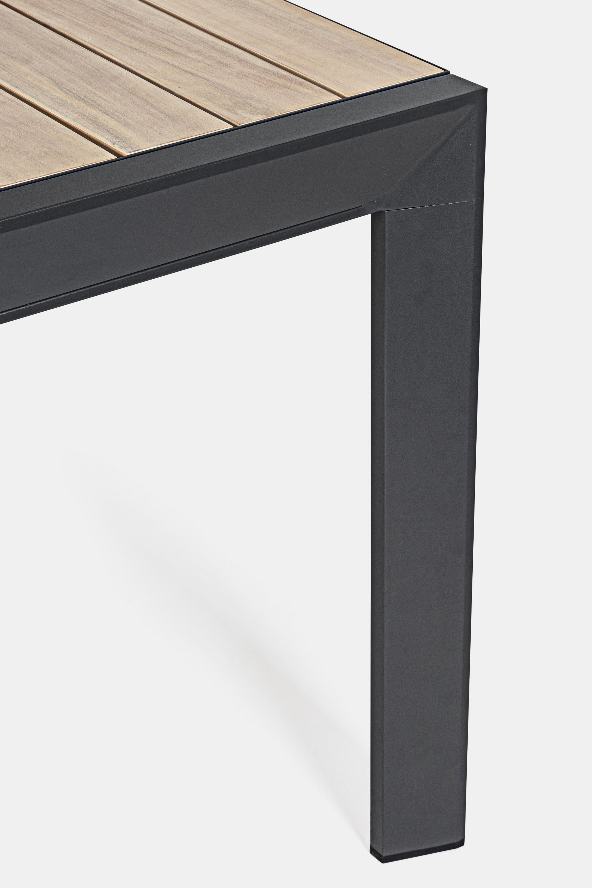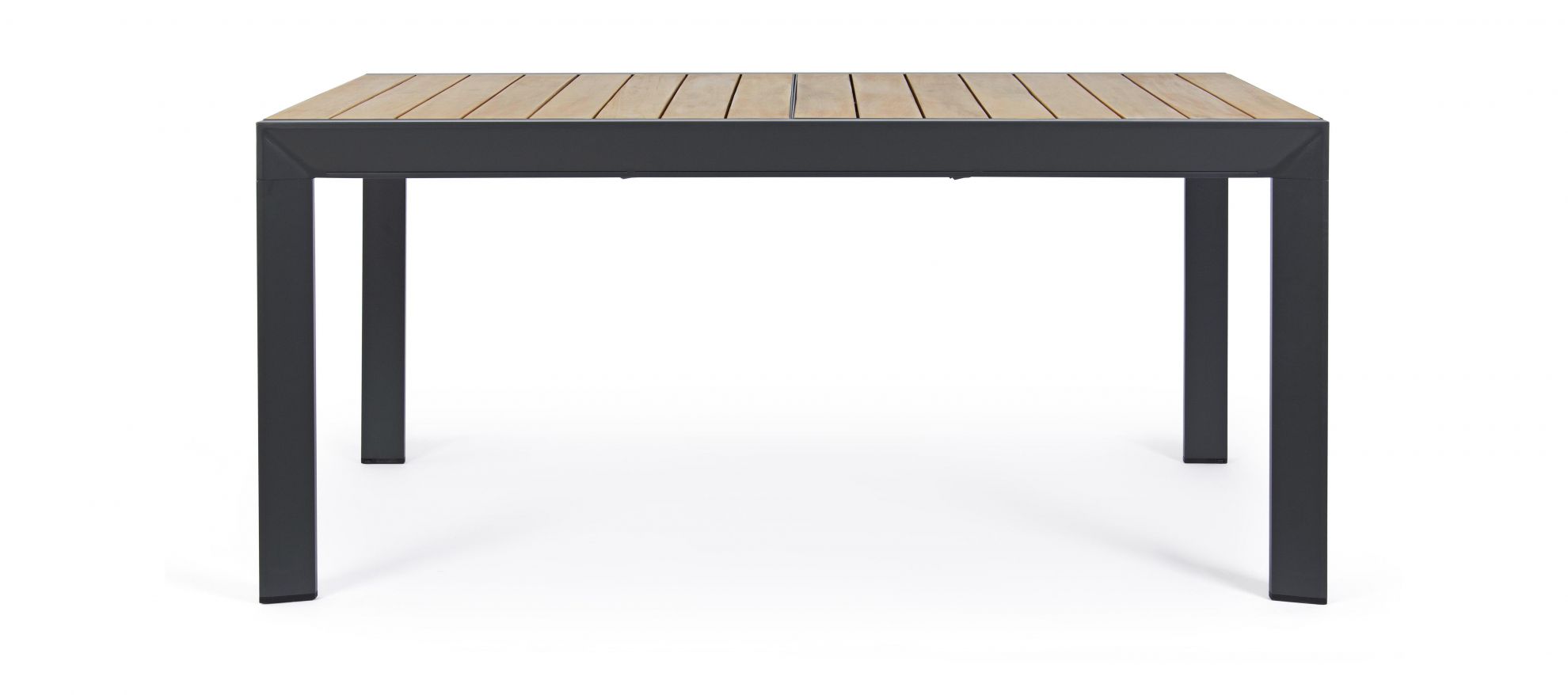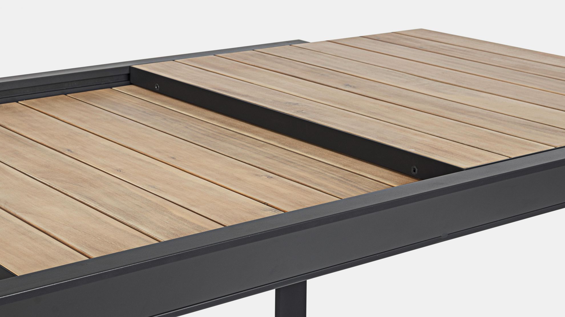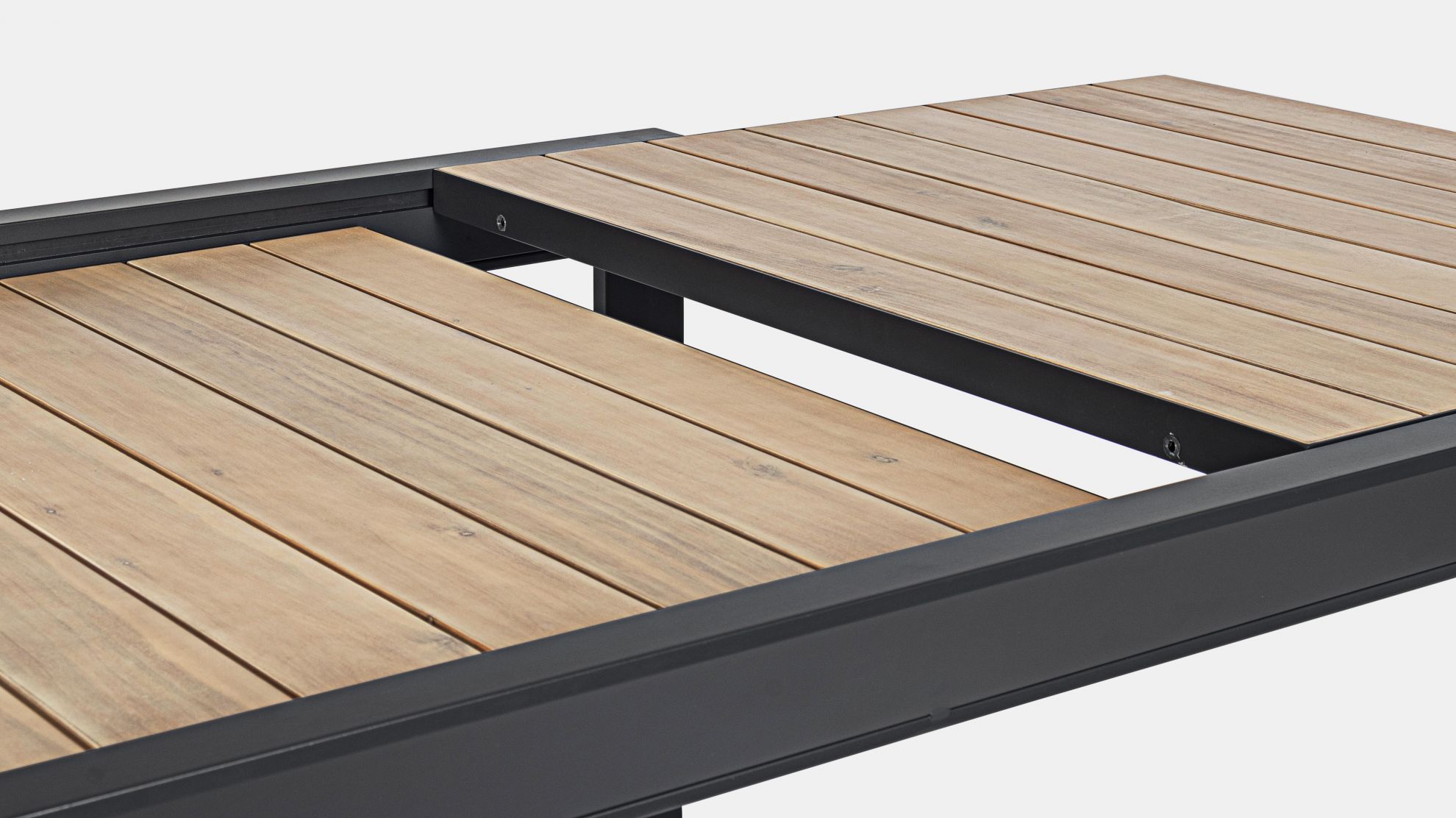 Masa extensibila pentru exterior cu stuctura din aluminiu si blat din lemn de acacia.