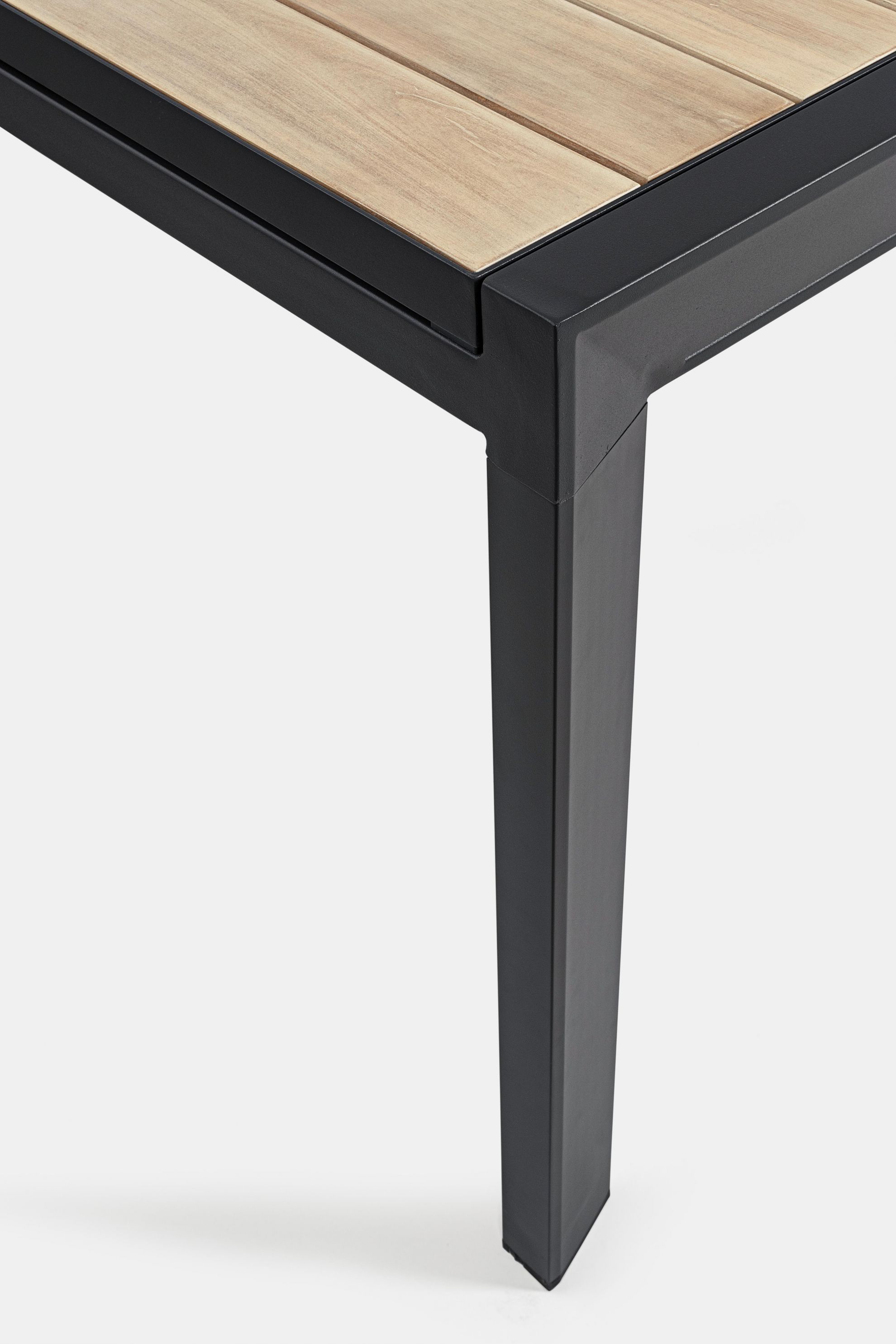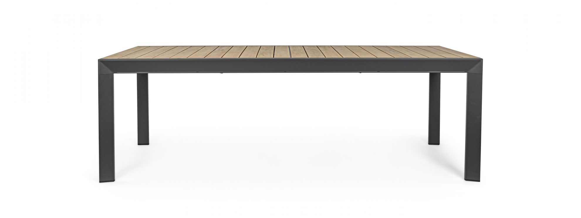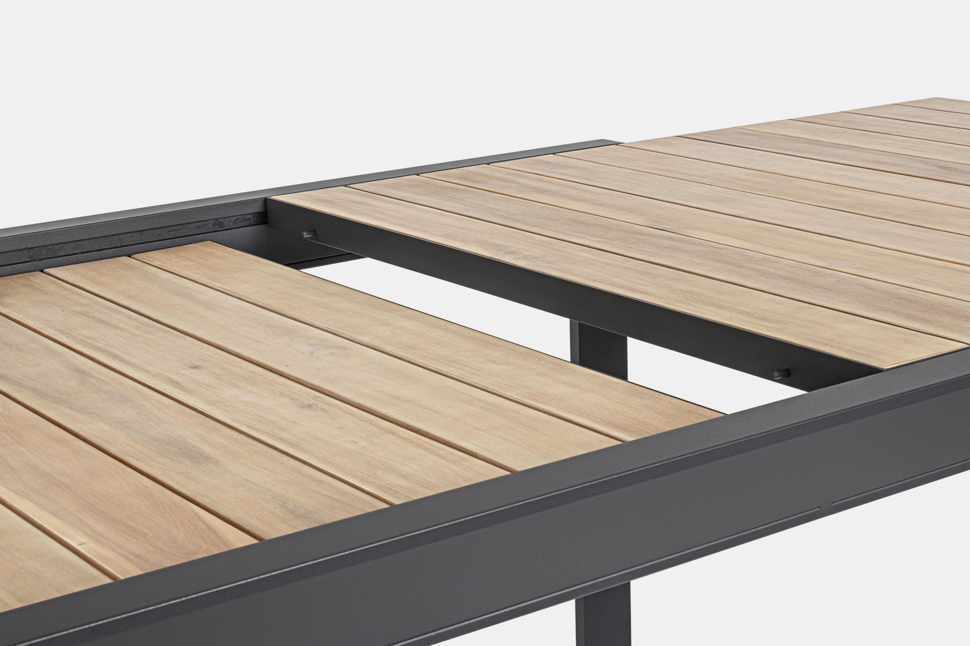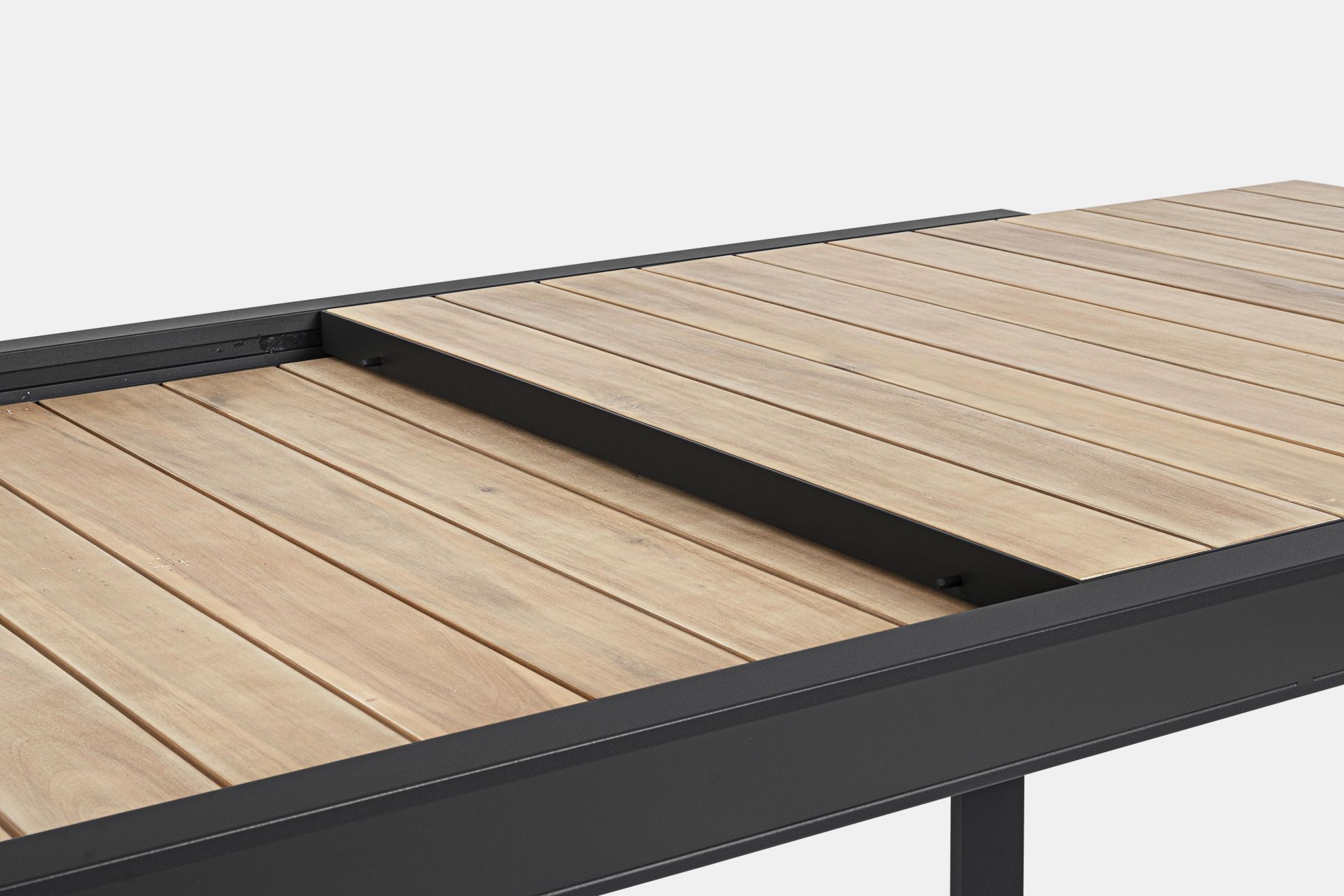Masa extensibila pentru exterior cu stuctura din aluminiu si blat din lemn de acacia.