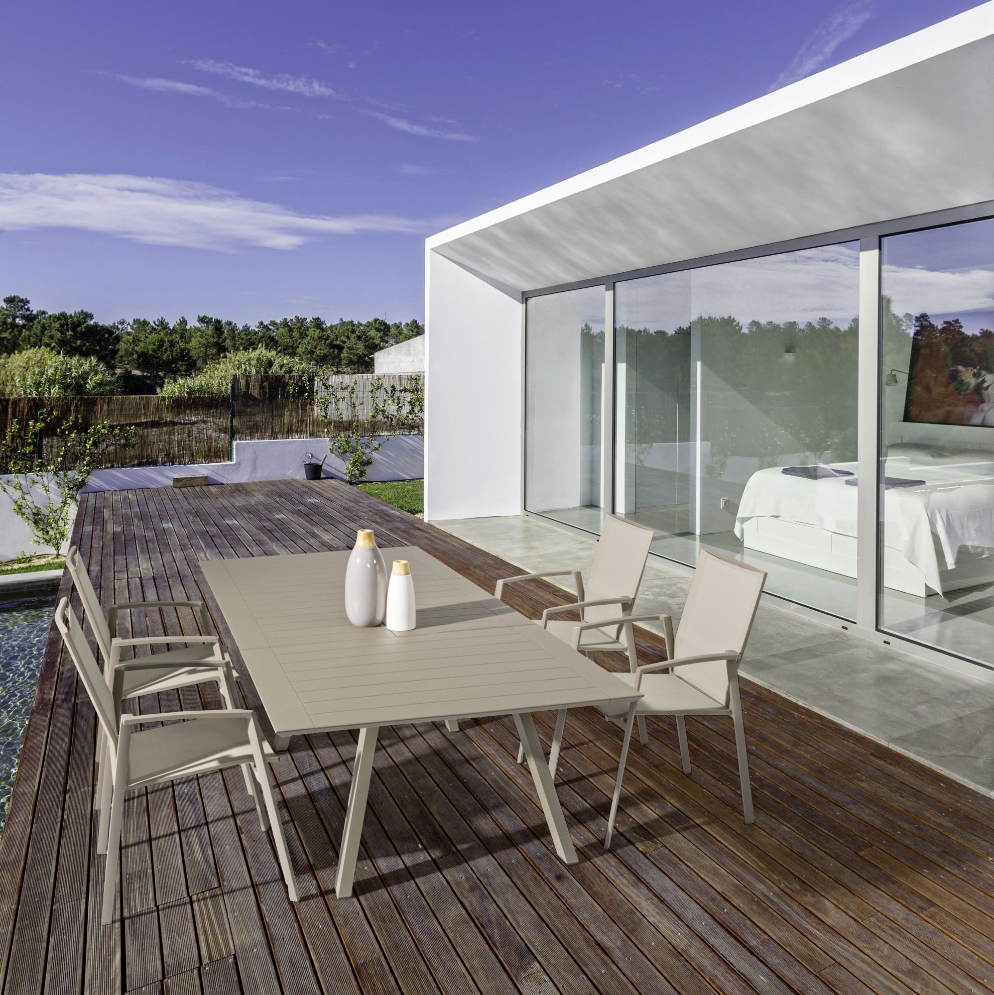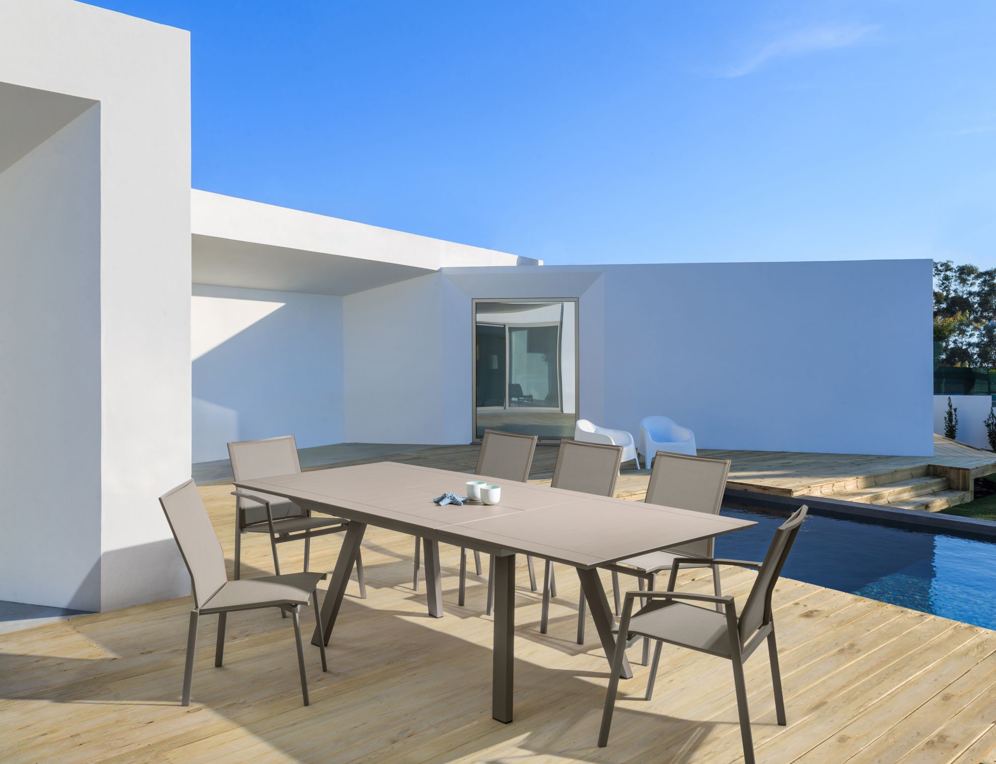 Klayton este o masa extensibila pentru exterior confectionata din aluminiu vopsit electrostatic.
