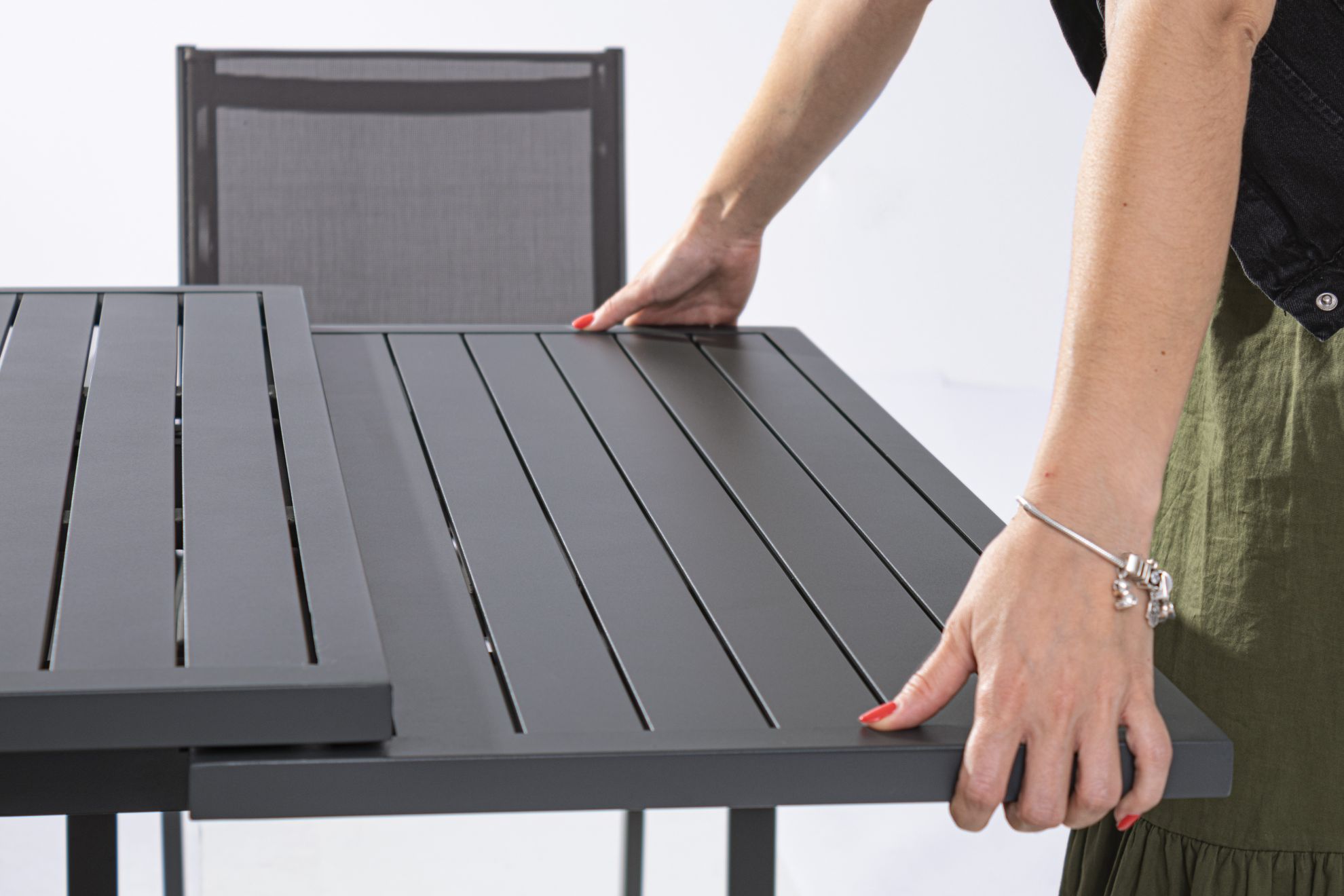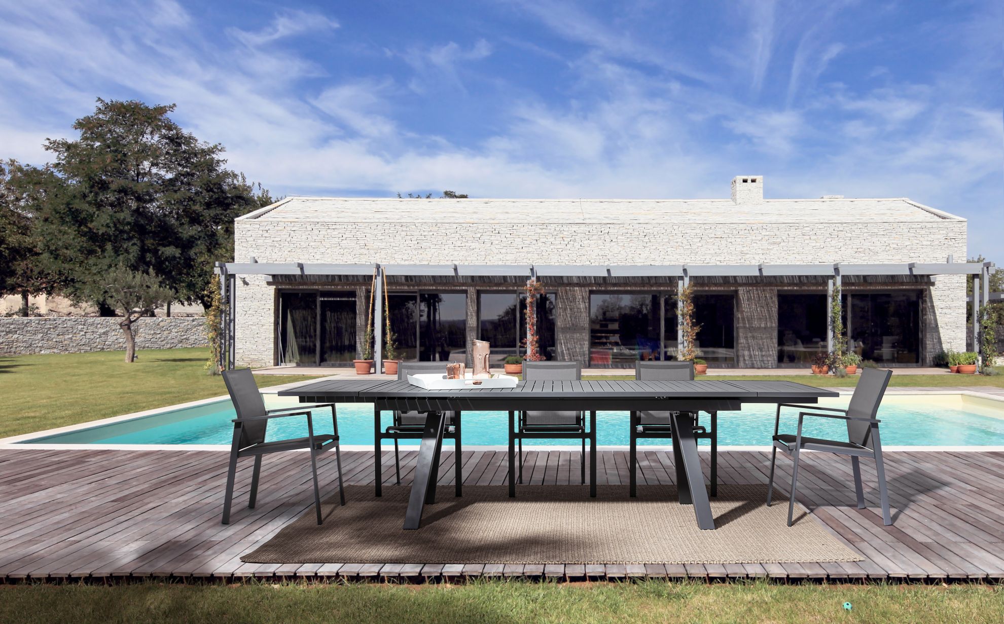 Crozet este o masa extensibila pentru exterior confectionata din aluminiu vopsit electrostatic.