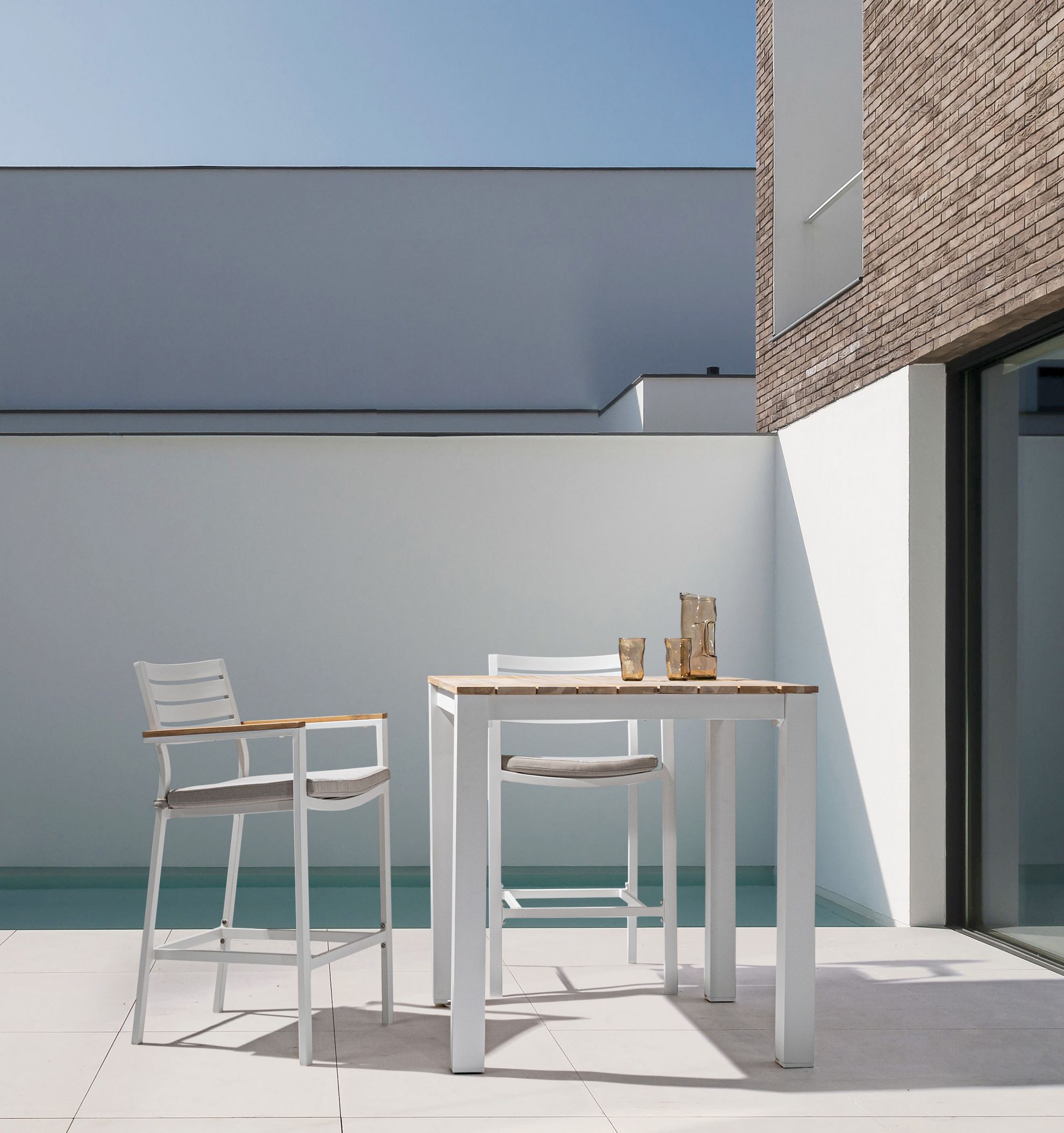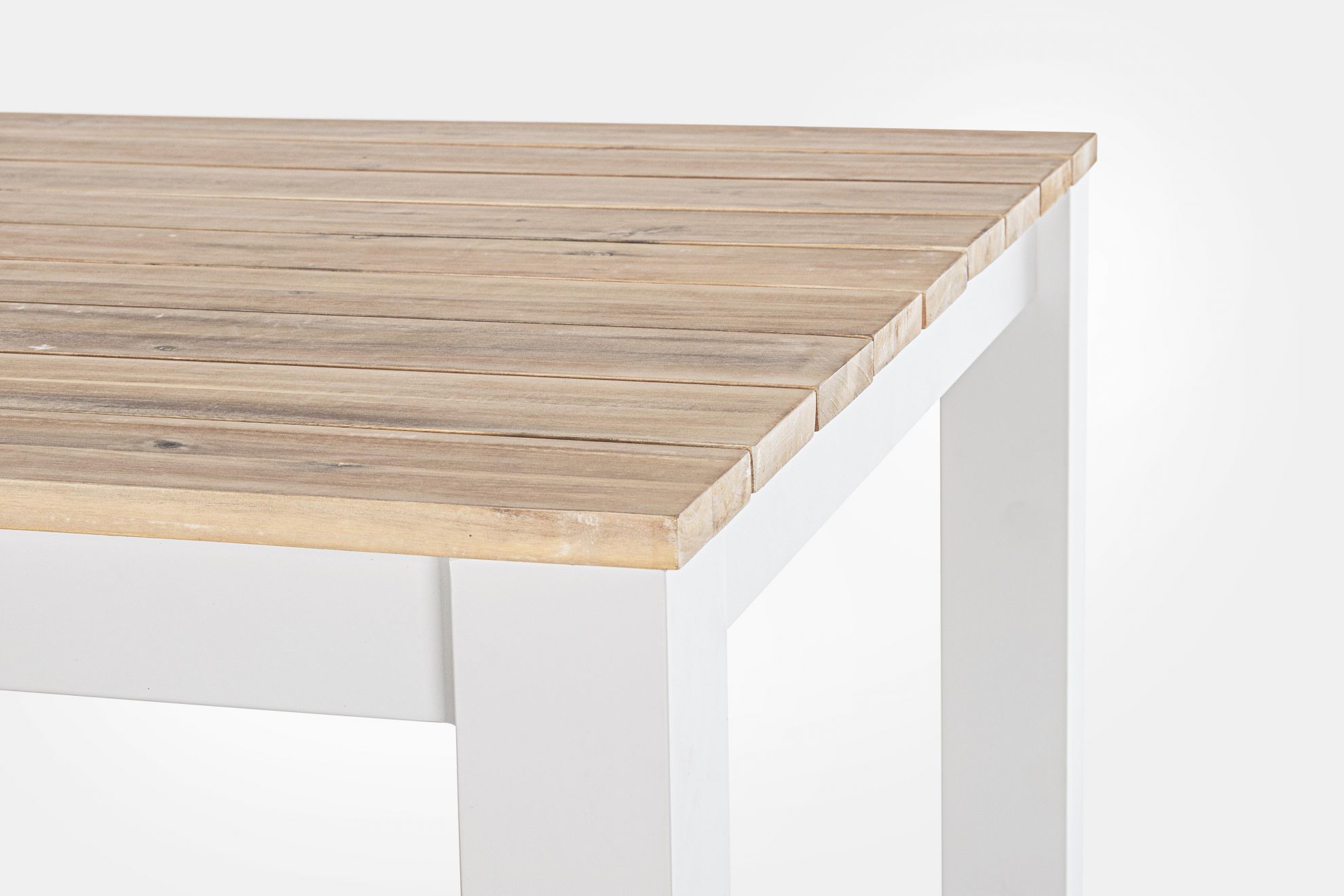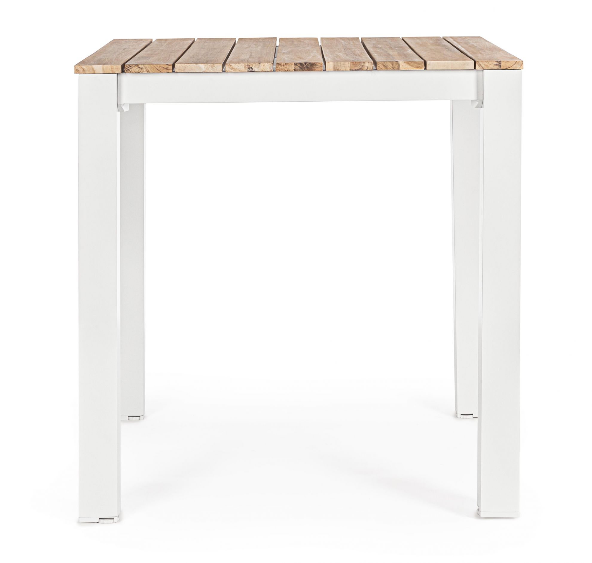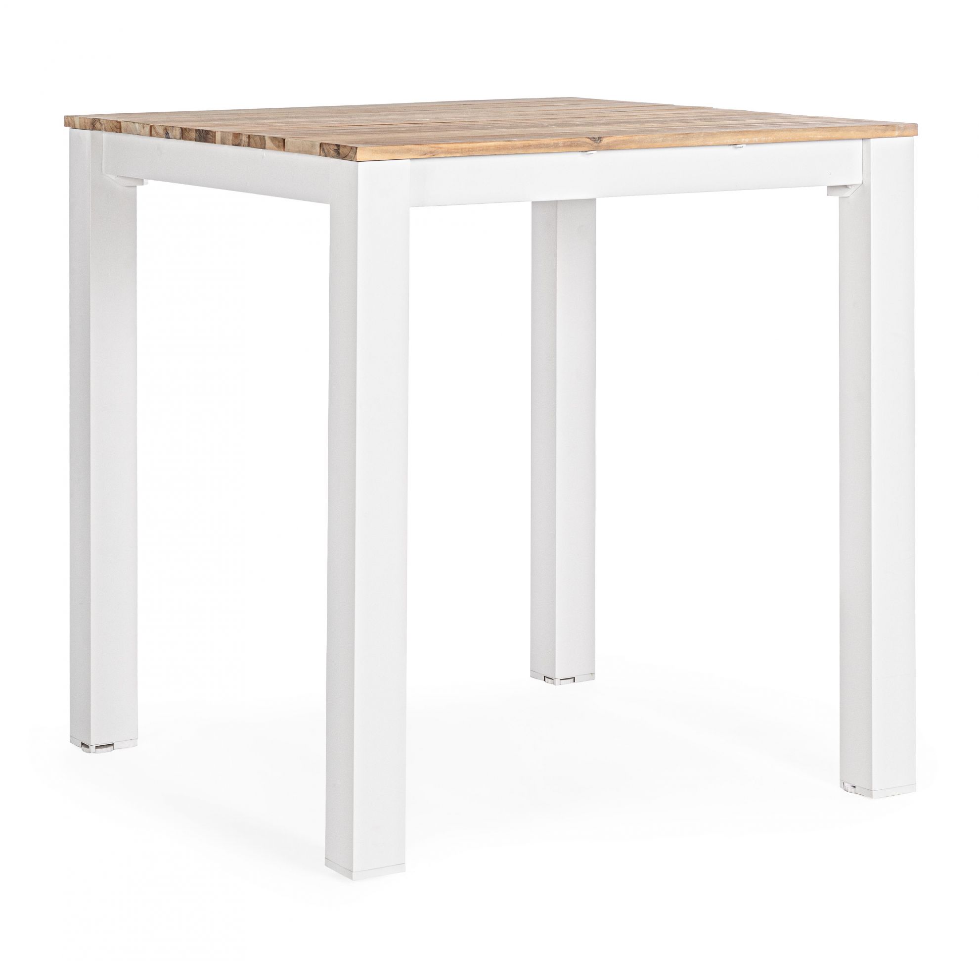 Masa inalta pentru exterior cu stuctura din aluminiu si blat din lemn de acacia.
