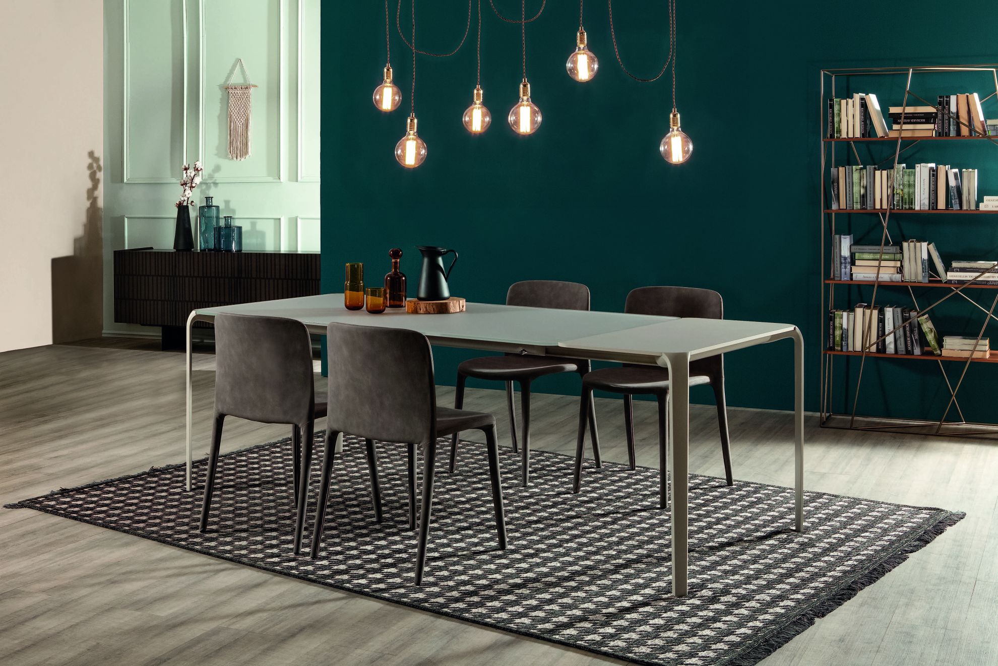 LIGHT este o masa extensibila de la Tonin Casa cu picioare din aluminiu si blat din sticla, ceramica sau HPL, disponibila in diverse finisaje si dimensiuni.