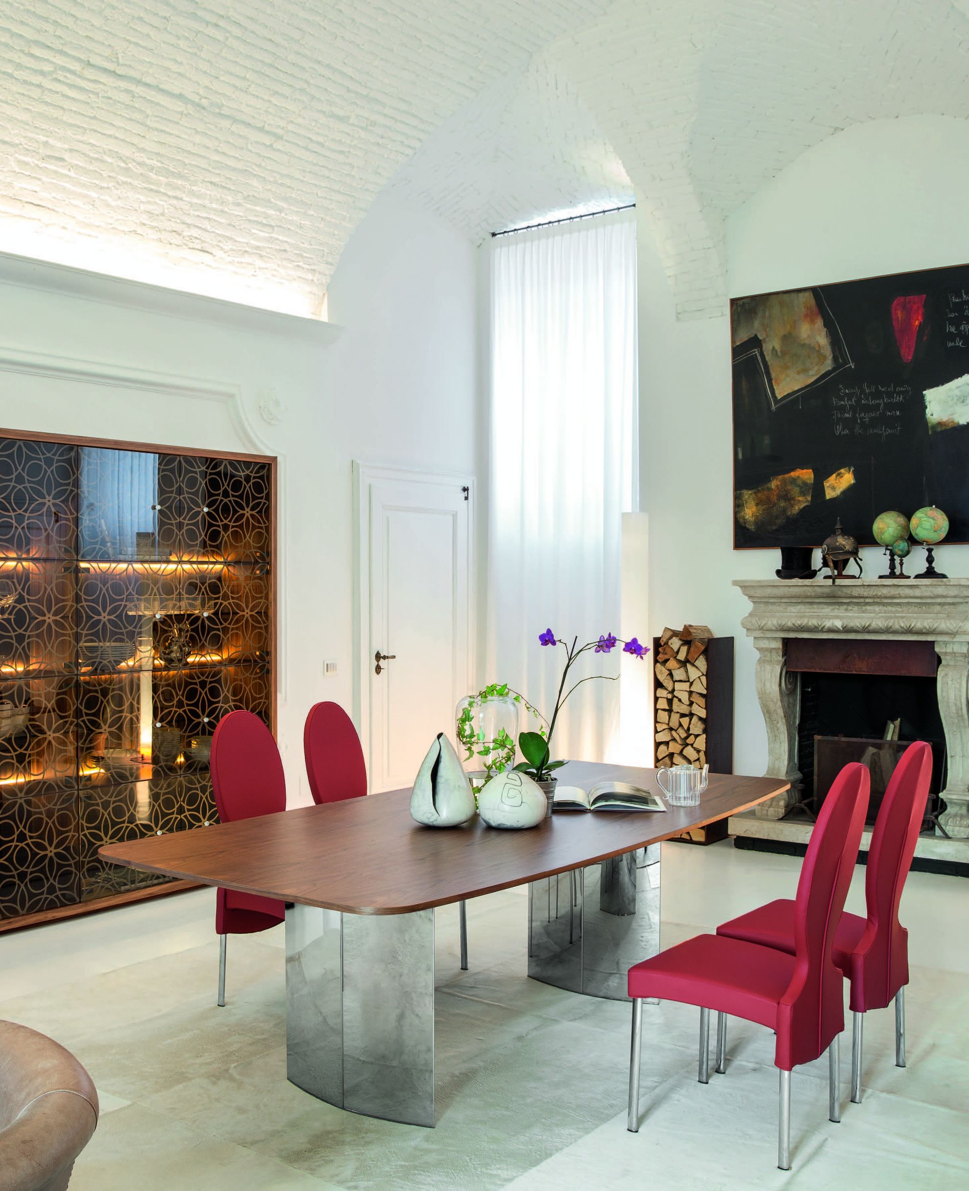 Masa MANHATTAN de la Tonin Casa este o masa cu un design modern, disponibila in varianta fixa sau extensibila, cu mecanism din aluminiu si blat din sticla, marmura, ceramica sau lemn.