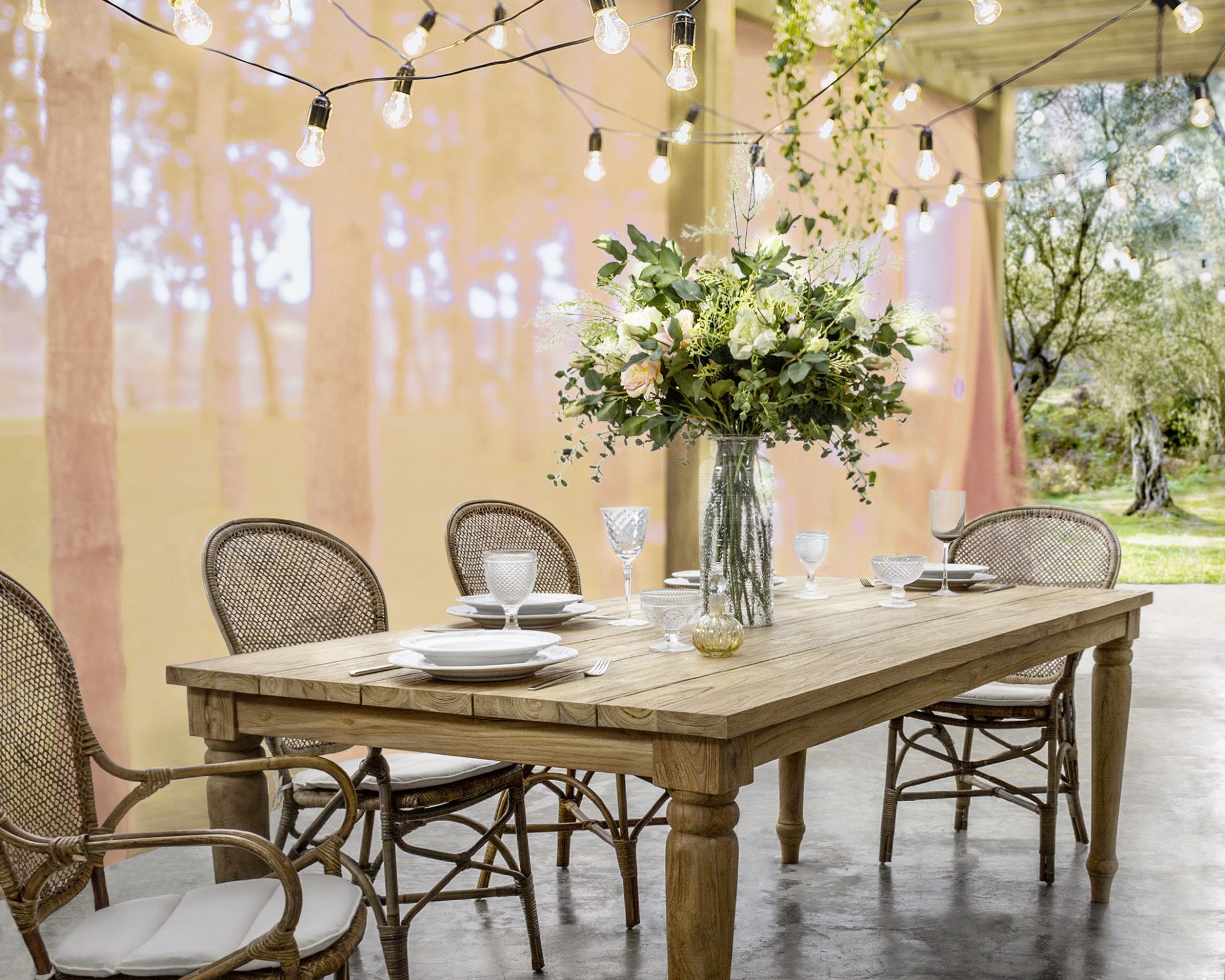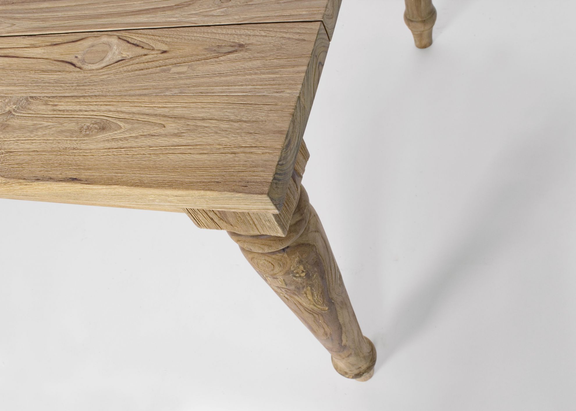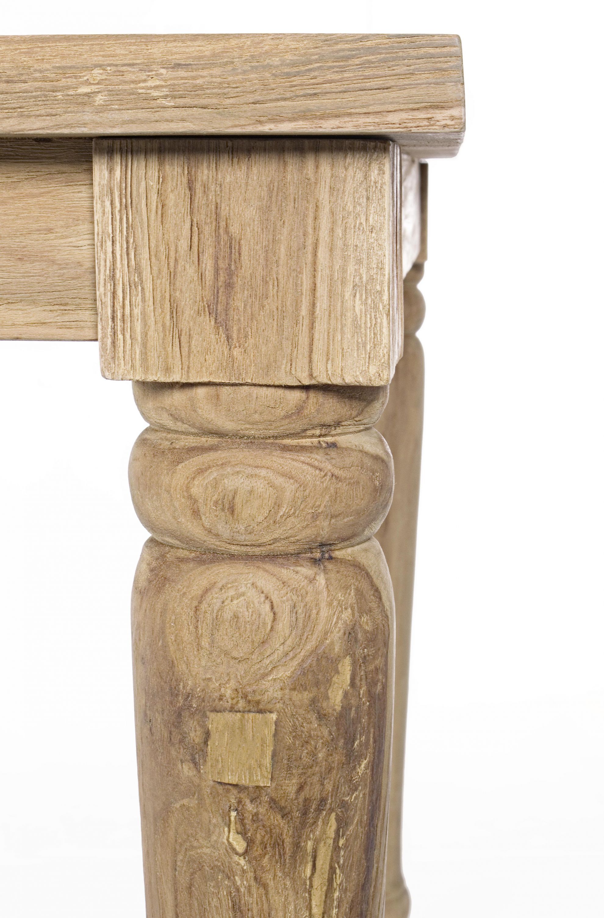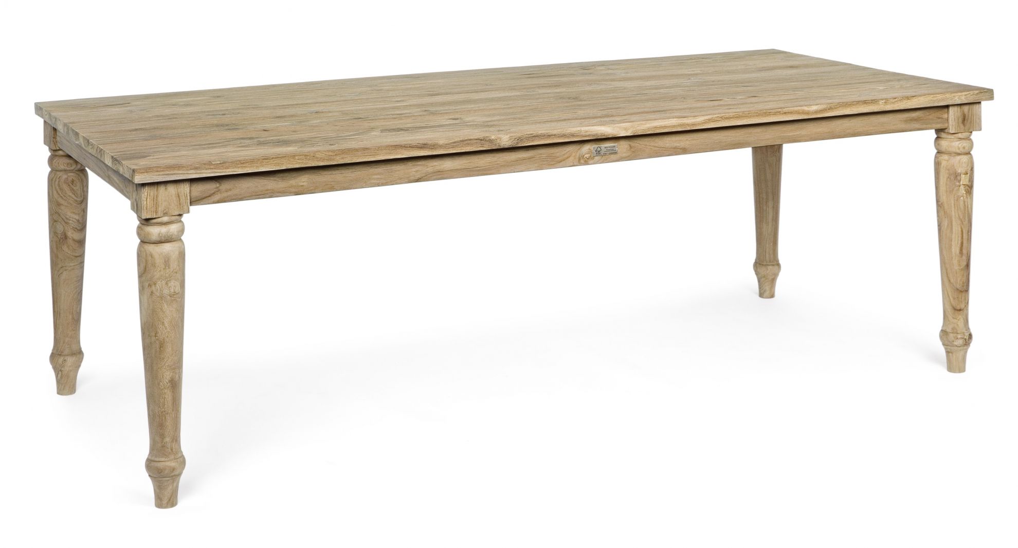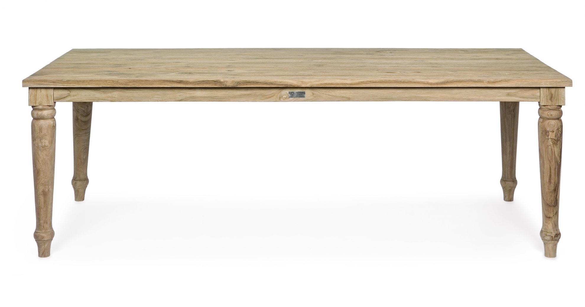 Masa pentru exterior realizata din lemn de tec reciclat FSC, finisaj natural rustic.