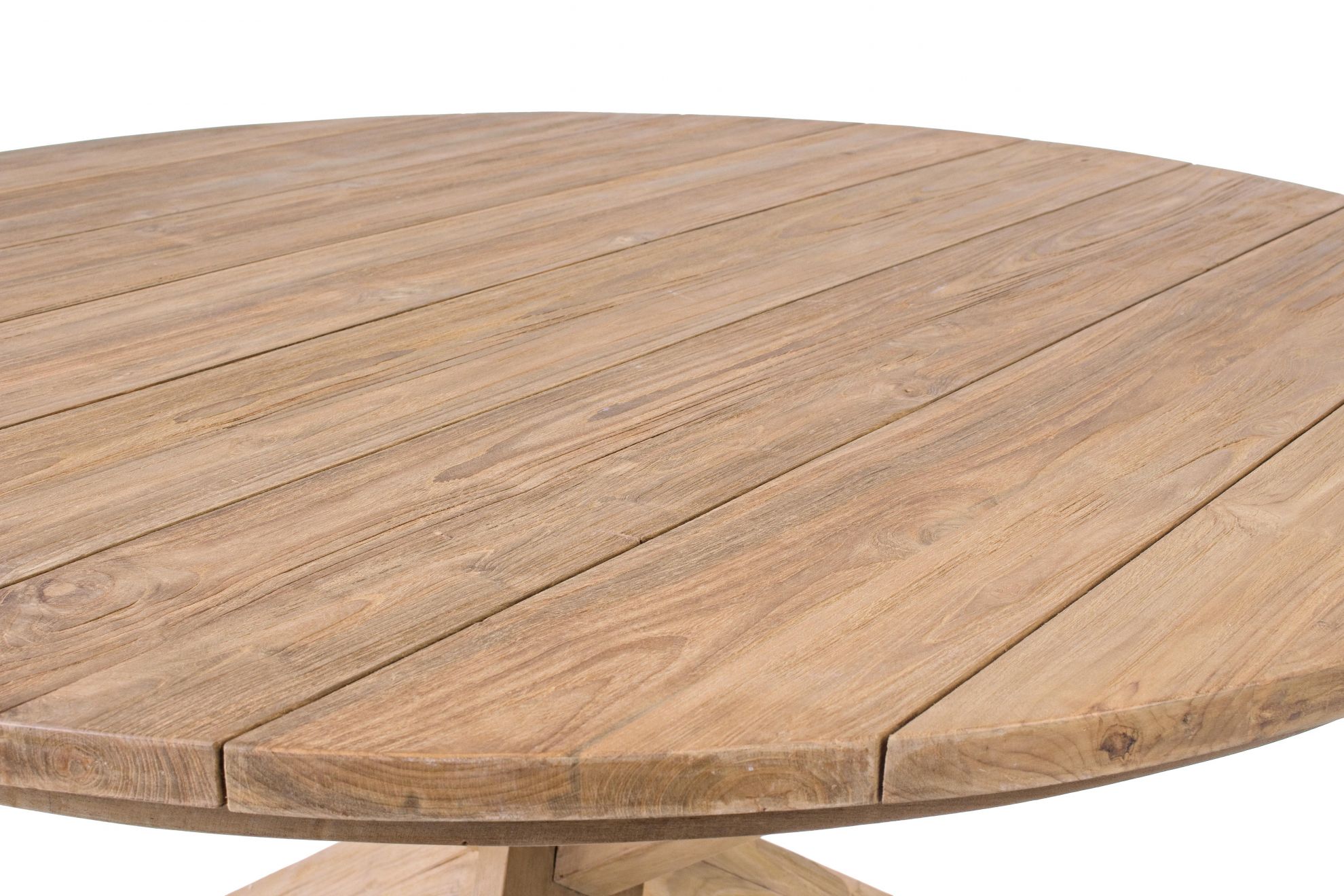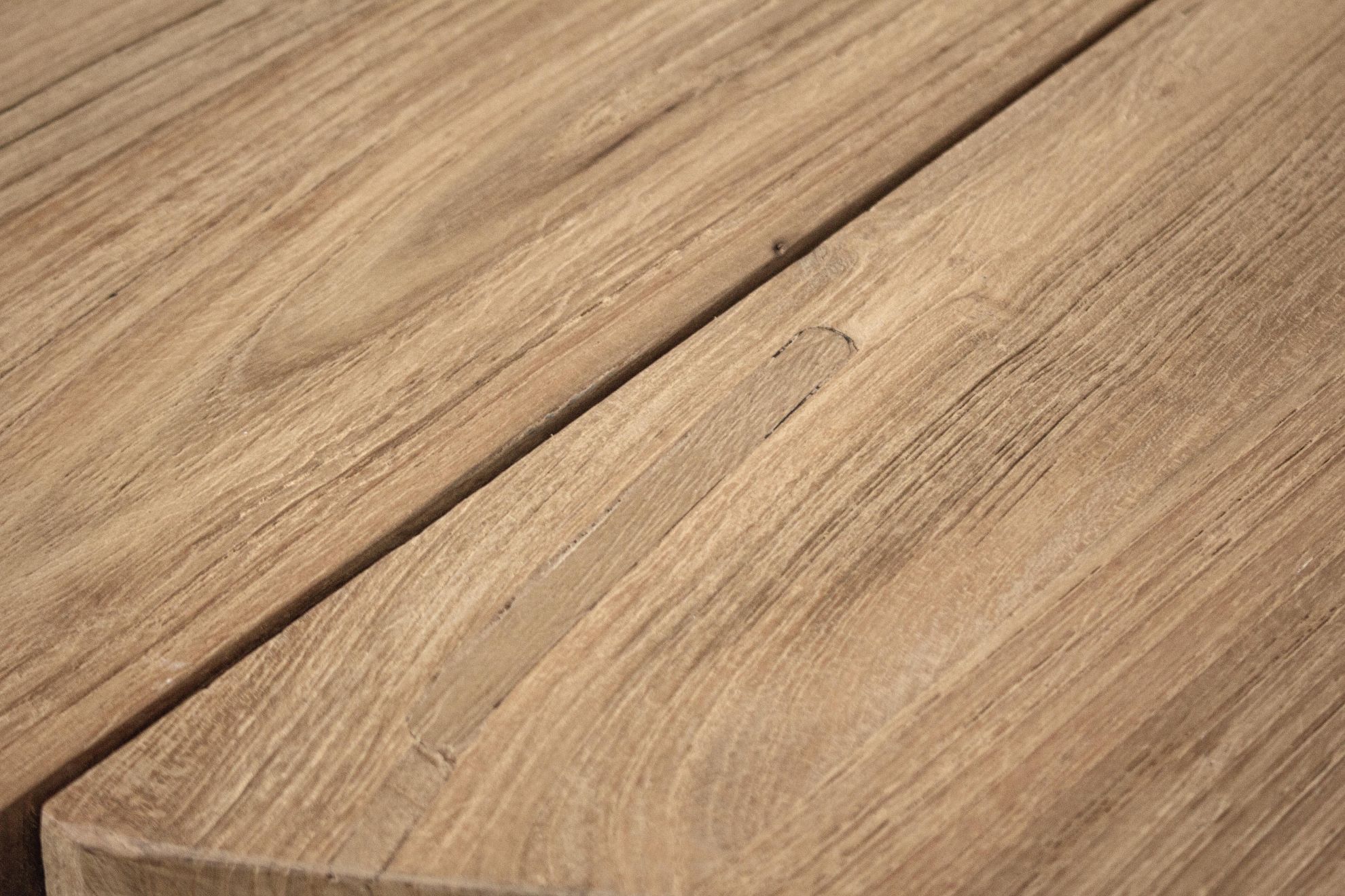 Masa pentru exterior realizata din lemn de tec reciclat, finisaj natural, vopsea pe baza de apa, picioare solide 4x12 cm.
