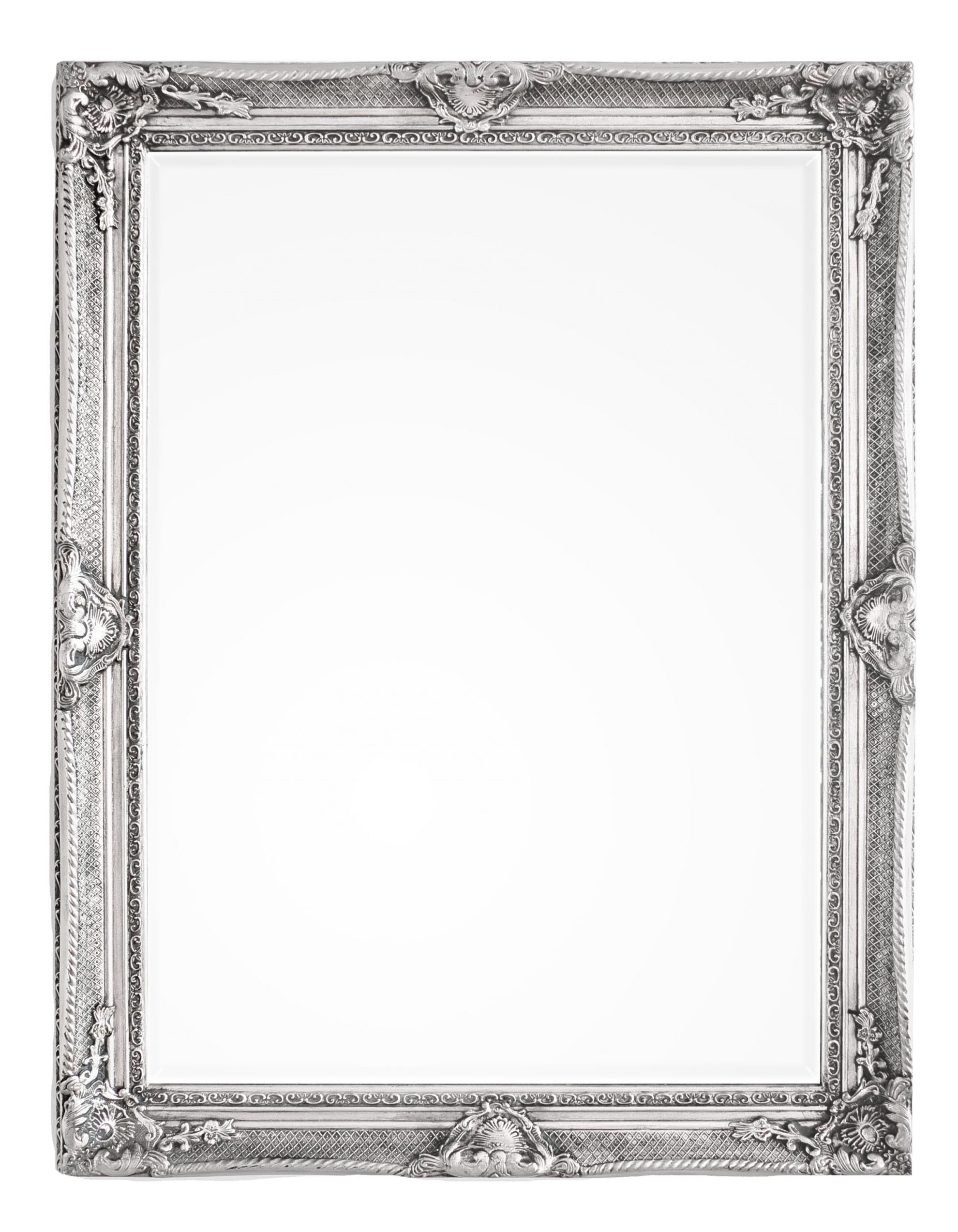 Oglinda decorativa Miro de la Bizzotto, cu rama din lemn de molid vopsit. Culoare argintiu, grosime sticla 4 mm.