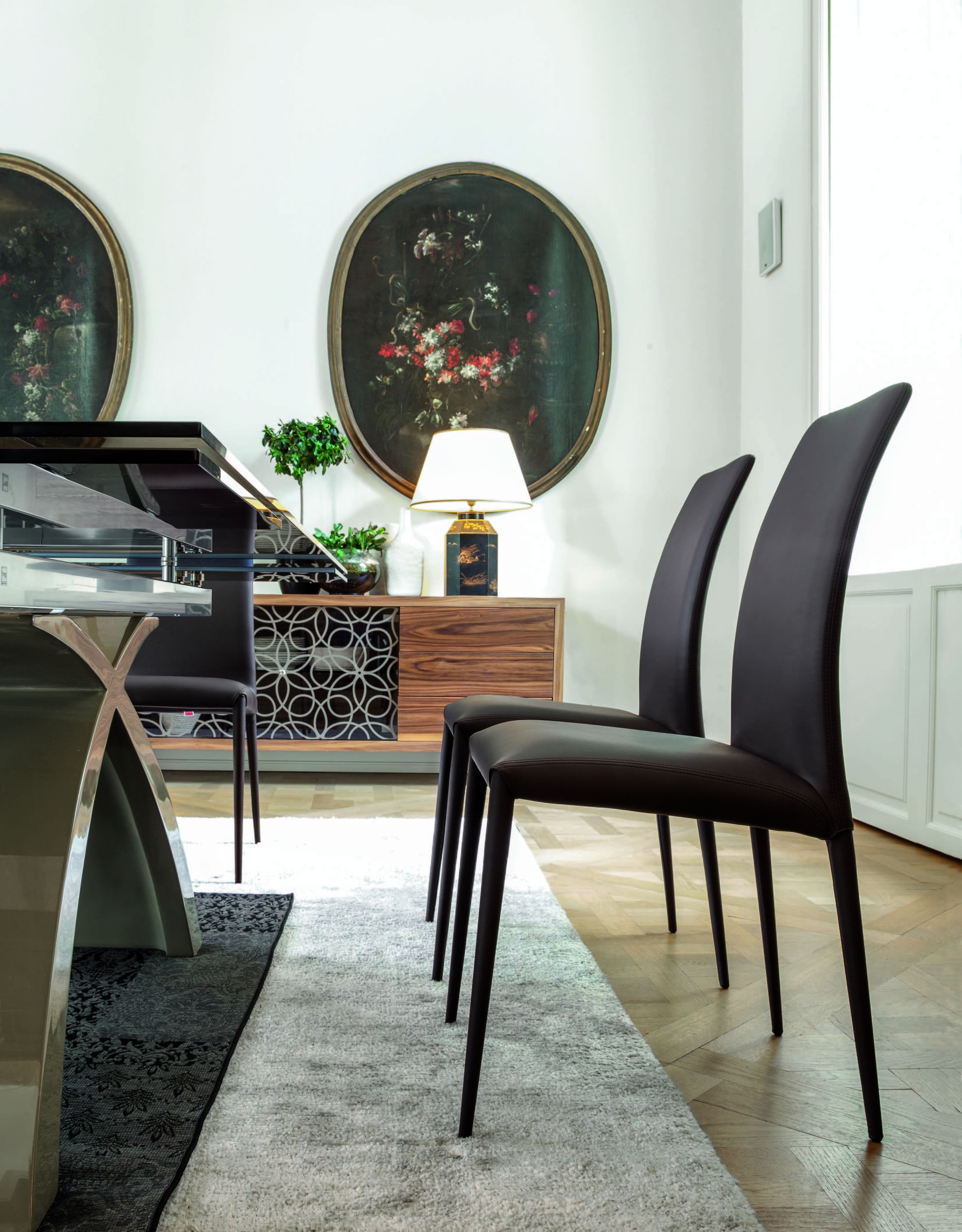 Scaun CHARM de la Tonin Casa, confortabil si elegant, disponibil intr-o gama larga de culori si finisaje din piele, piele ecologica, piele nabuk.