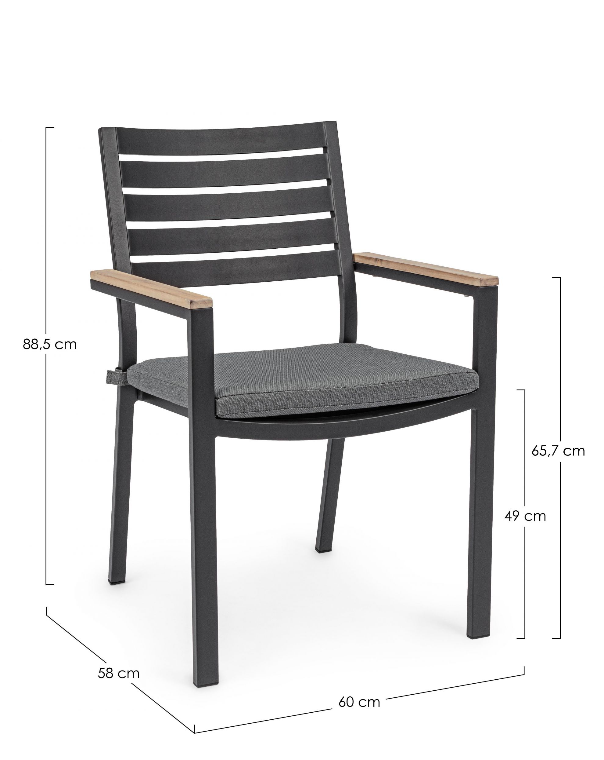 Scaun pentru terasa, gradina, cu brate si structura din aluminiu.
