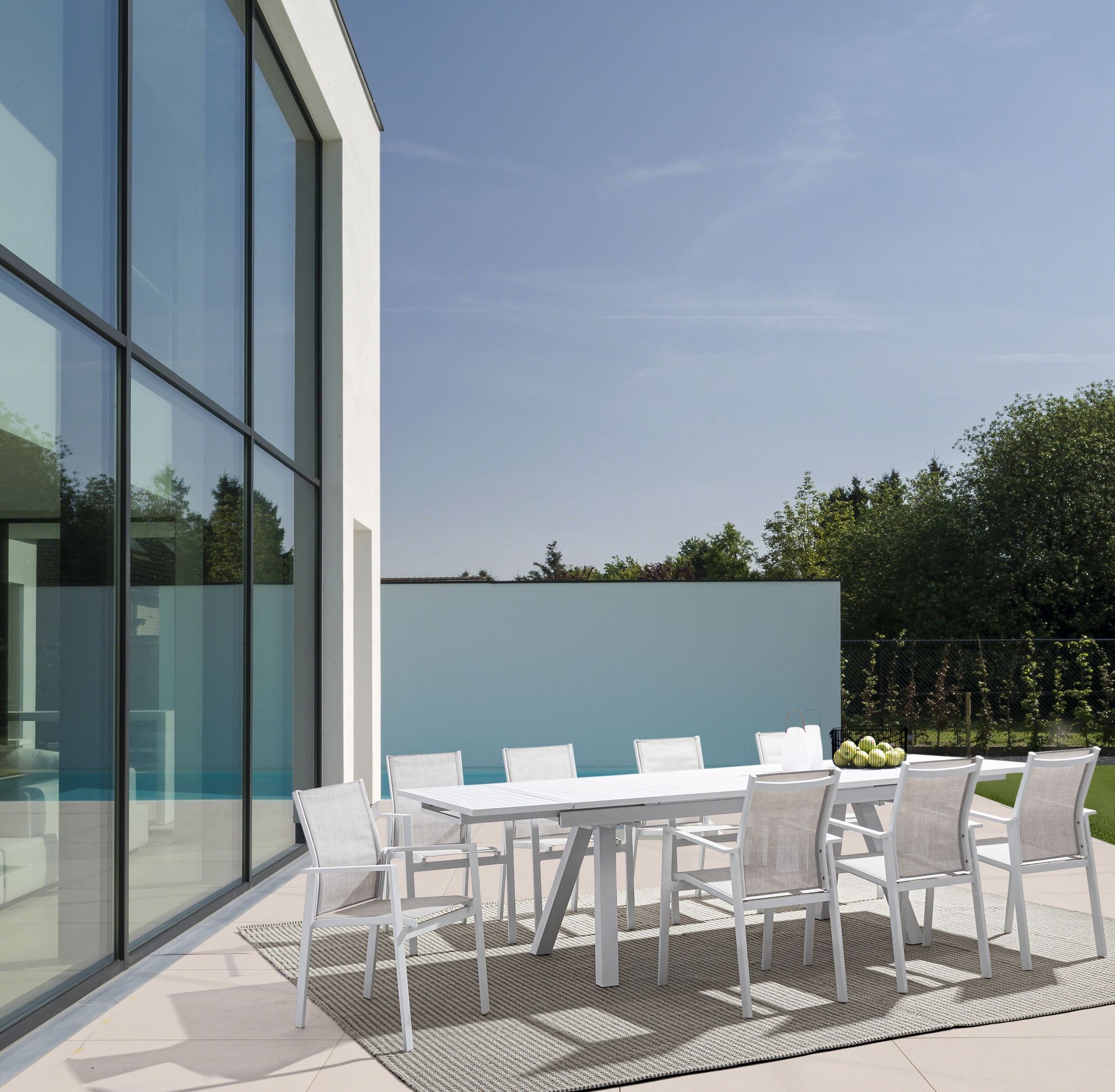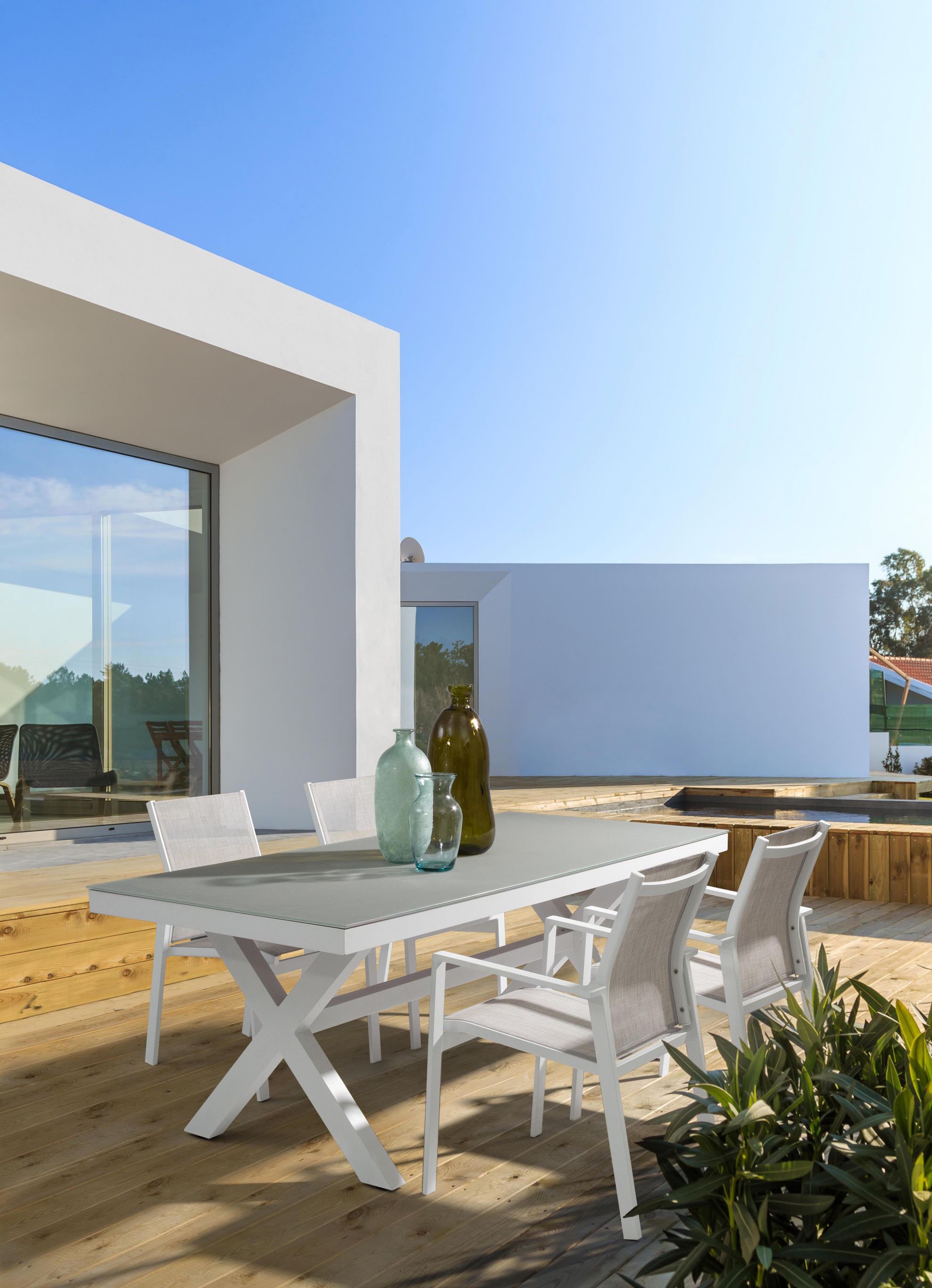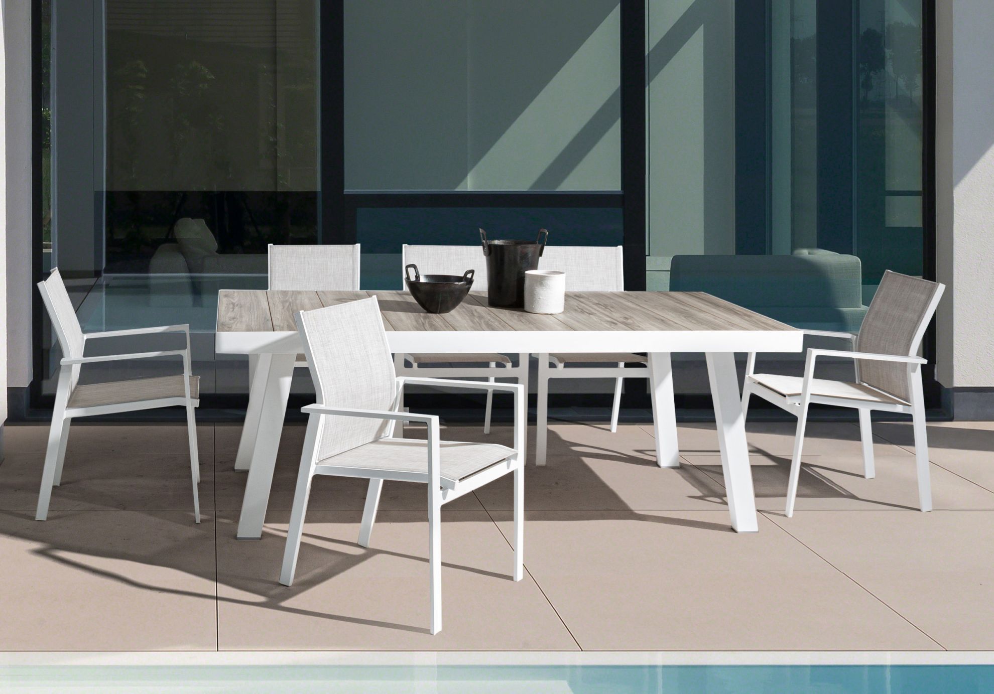 Scaun pentru terasa, gradina, cu brate si structura din aluminiu.