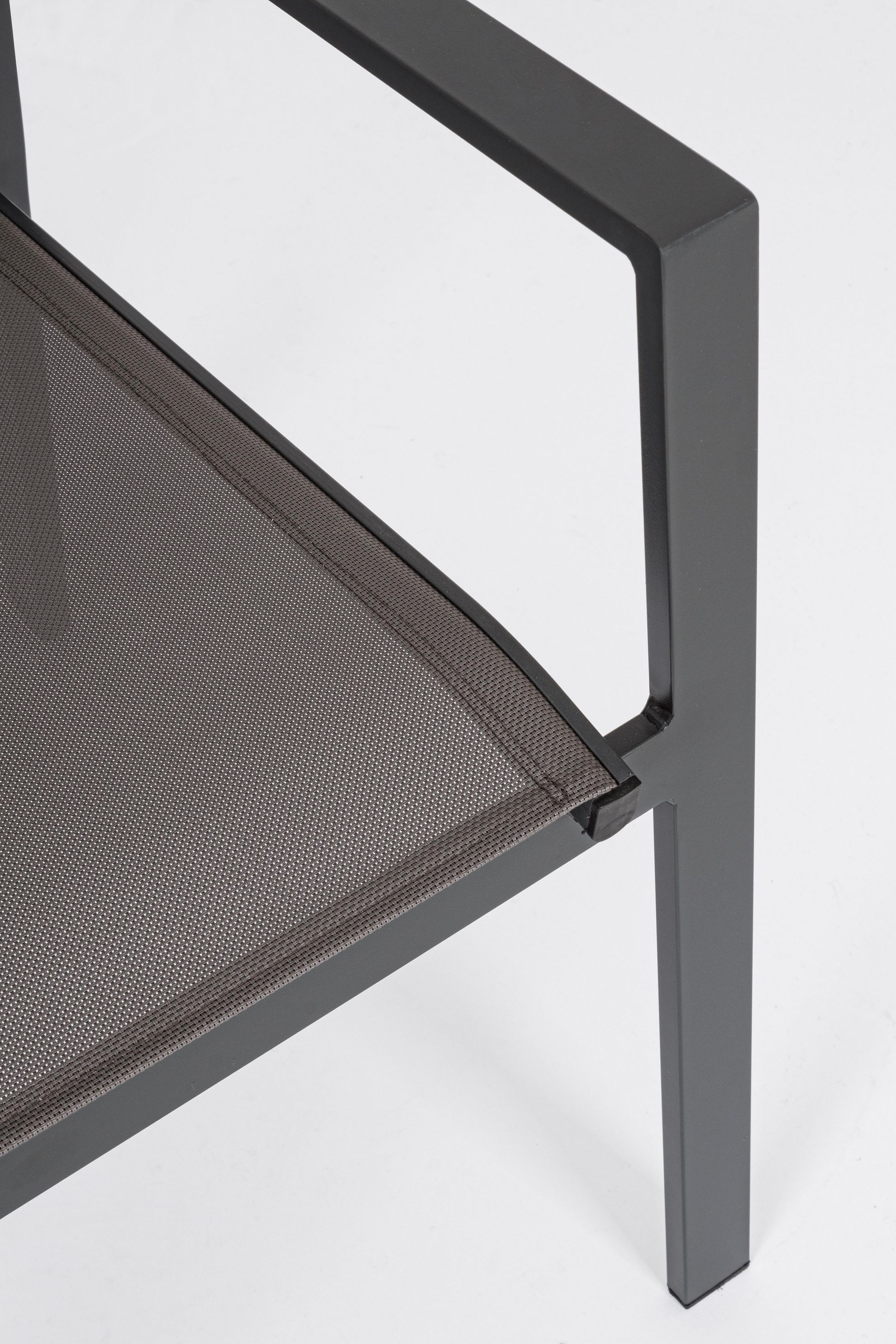 Scaun pentru terasa, gradina, cu brate si structura din aluminiu.