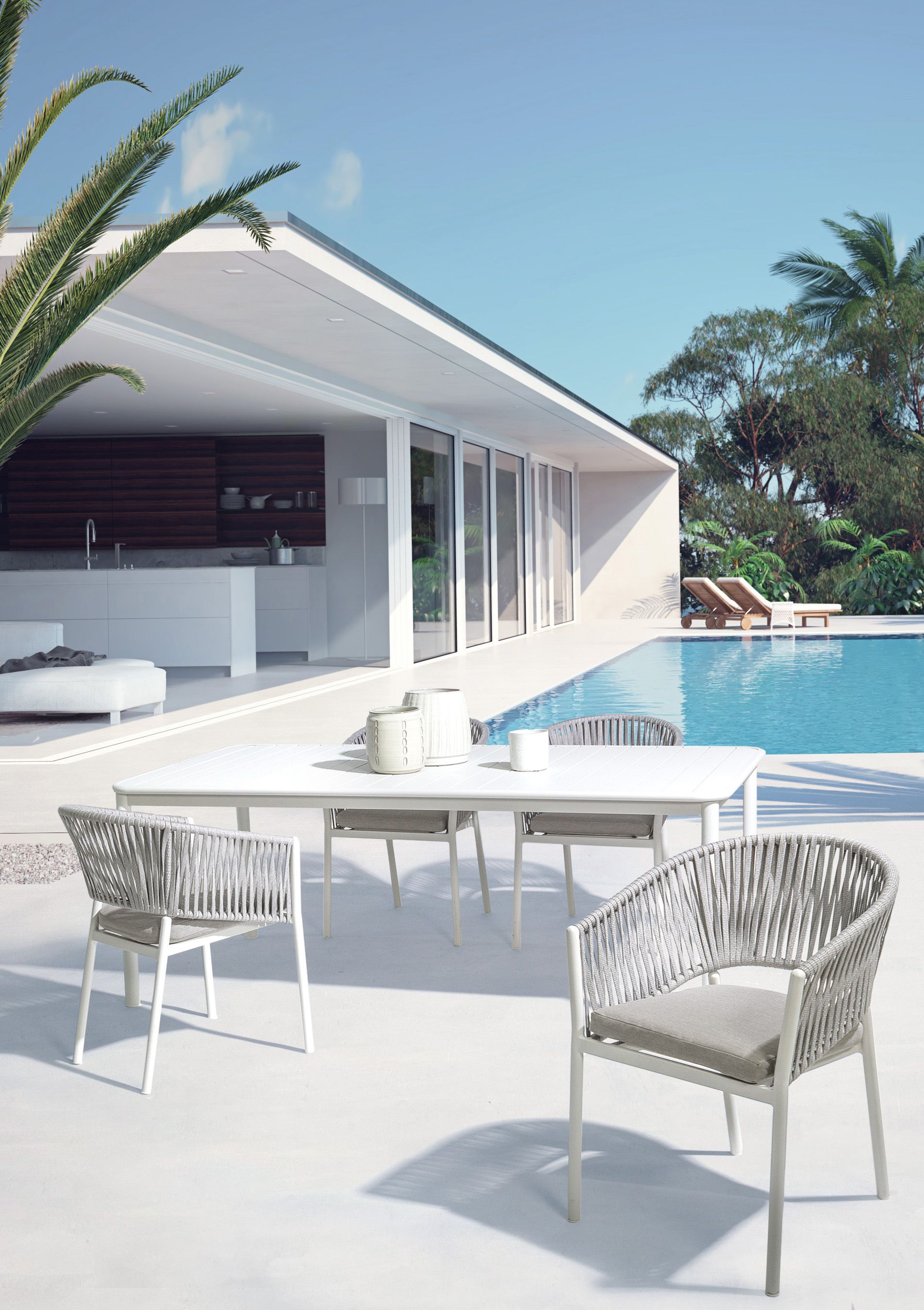 Florencia de la Bizzotto este un scaun pentru exterior, cu structura din aluminiu.