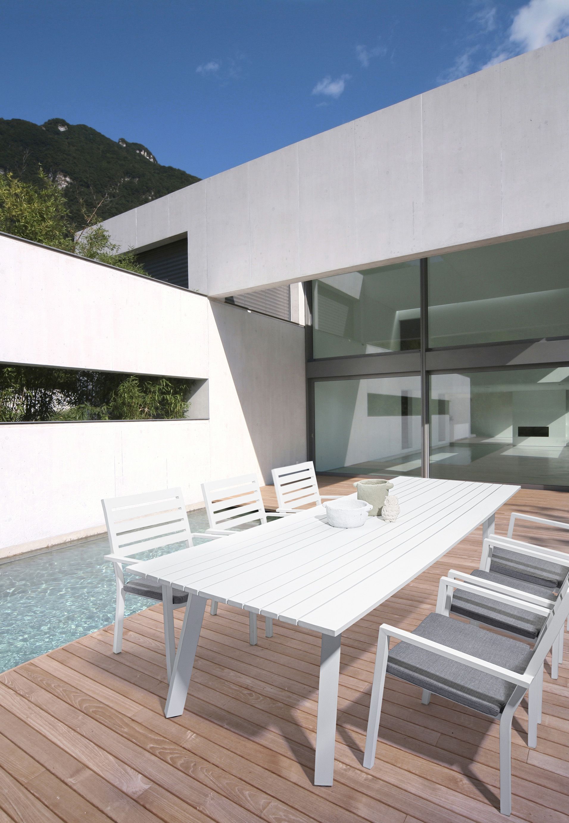 Scaun pentru terasa, gradina, cu brate si structura din aluminiu.