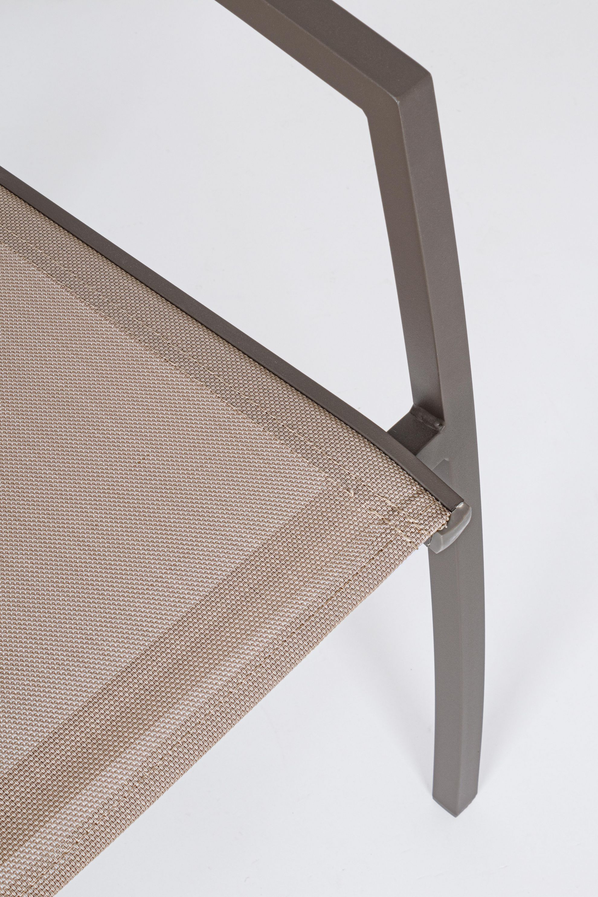 Scaun pentru terasa, gradina, cu brate si structura din aluminiu.