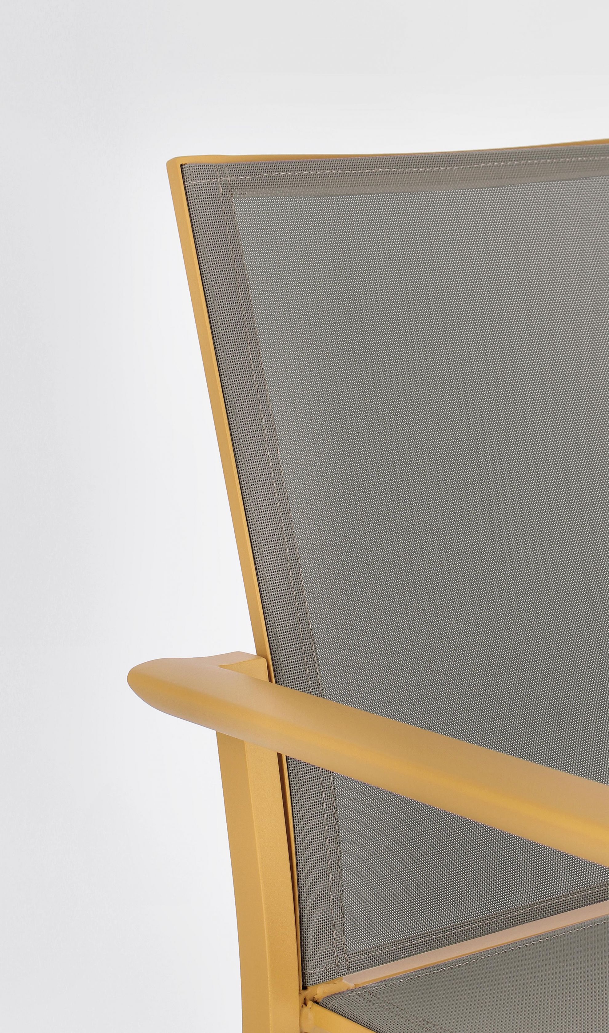 Scaun pentru terasa, gradina, cu brate si structura din aluminiu.