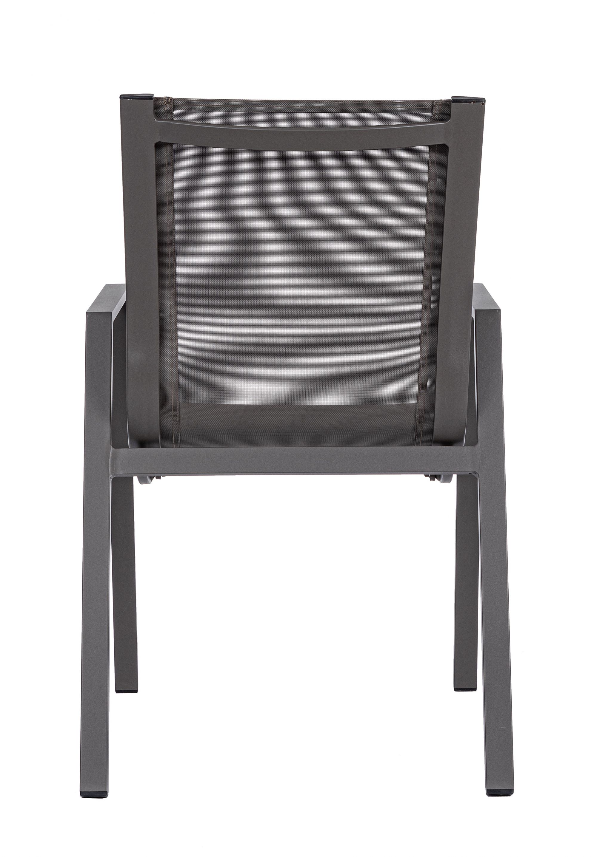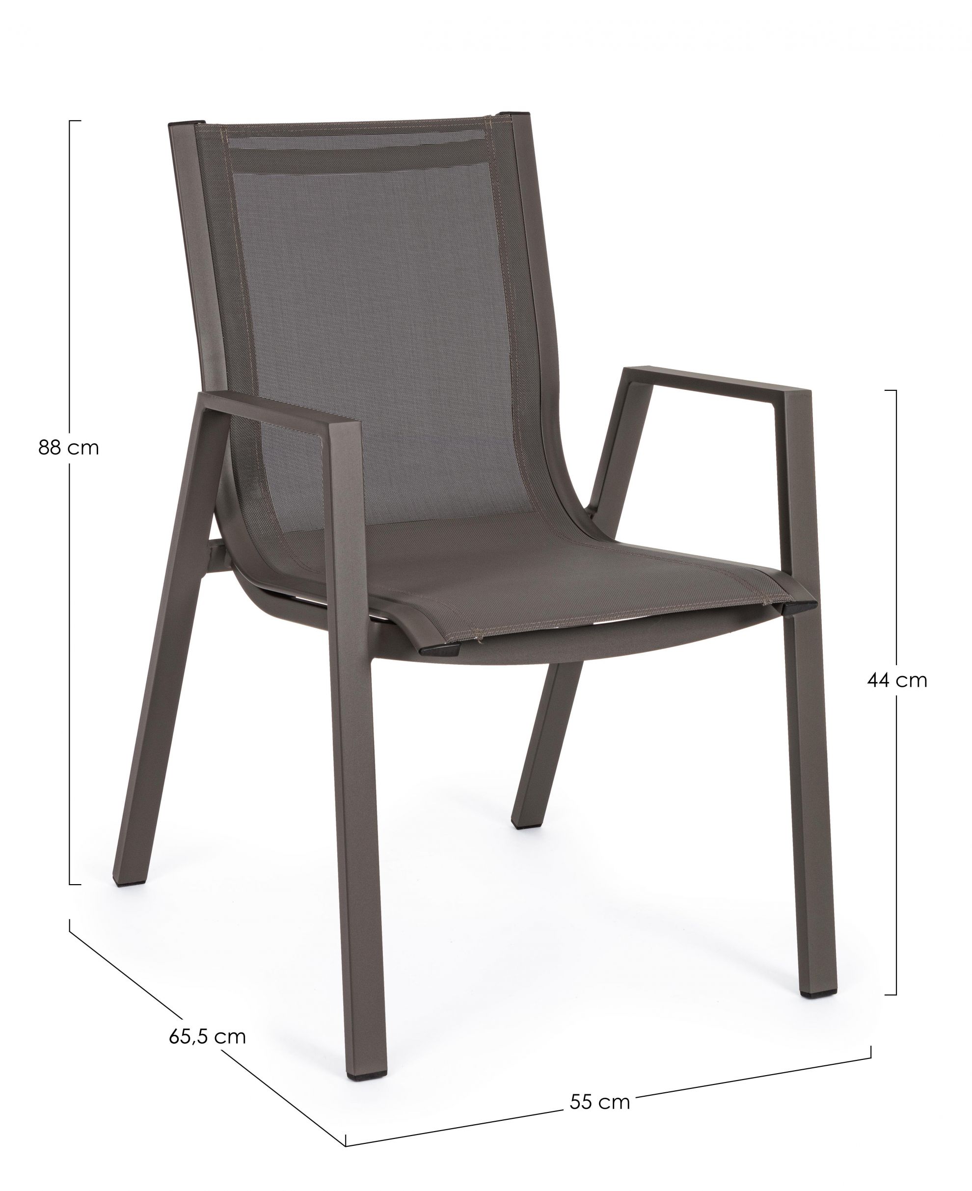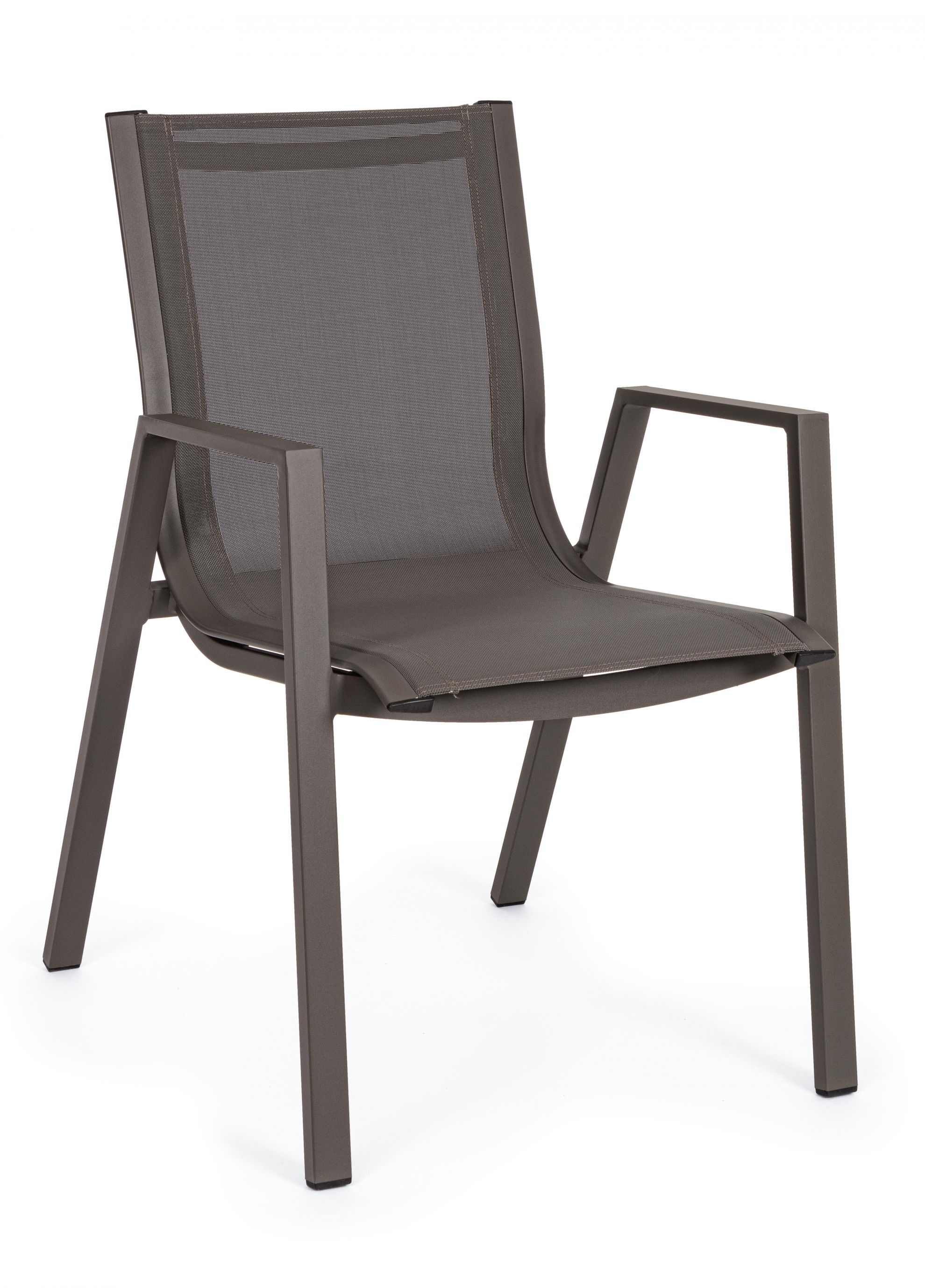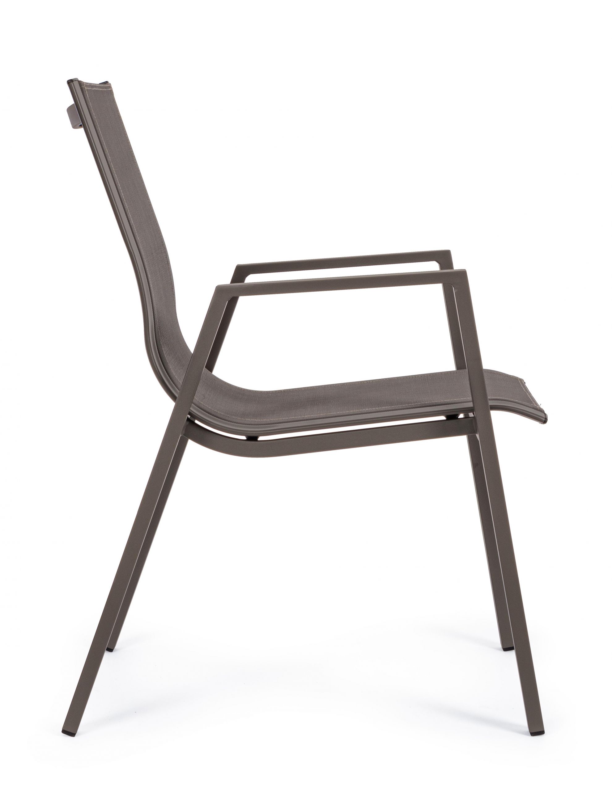 Scaun pentru exterior cu brate si structura din aluminiu.