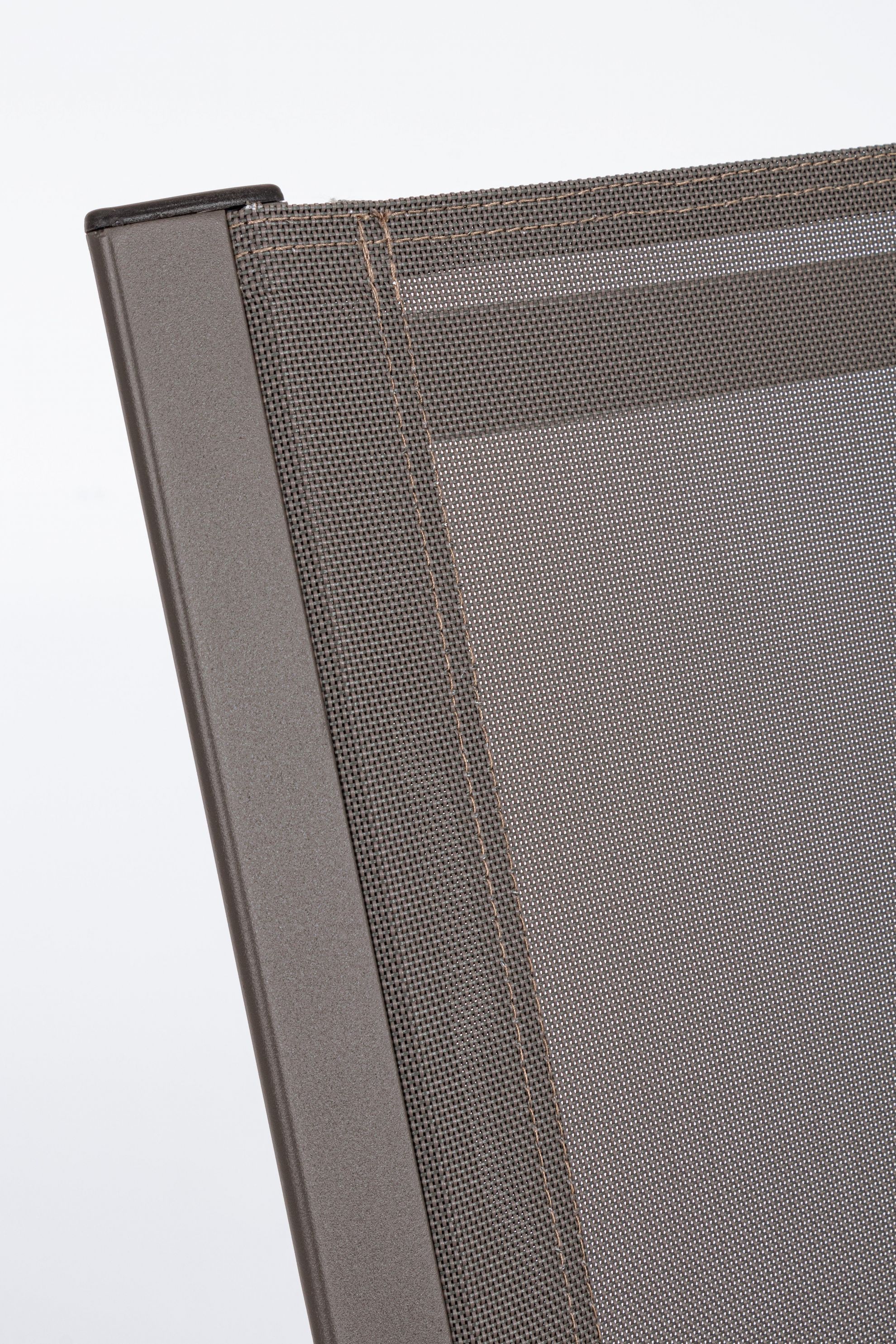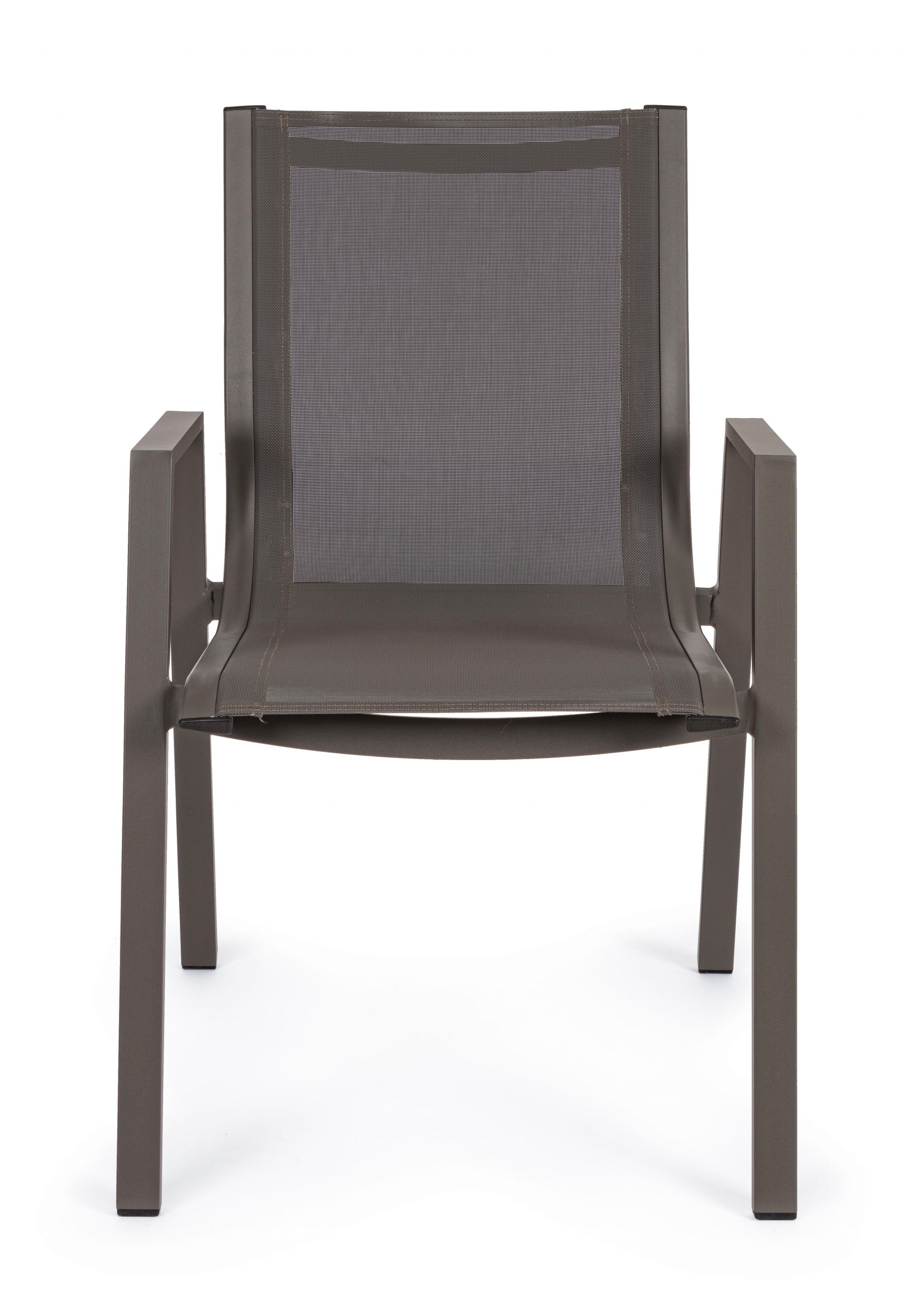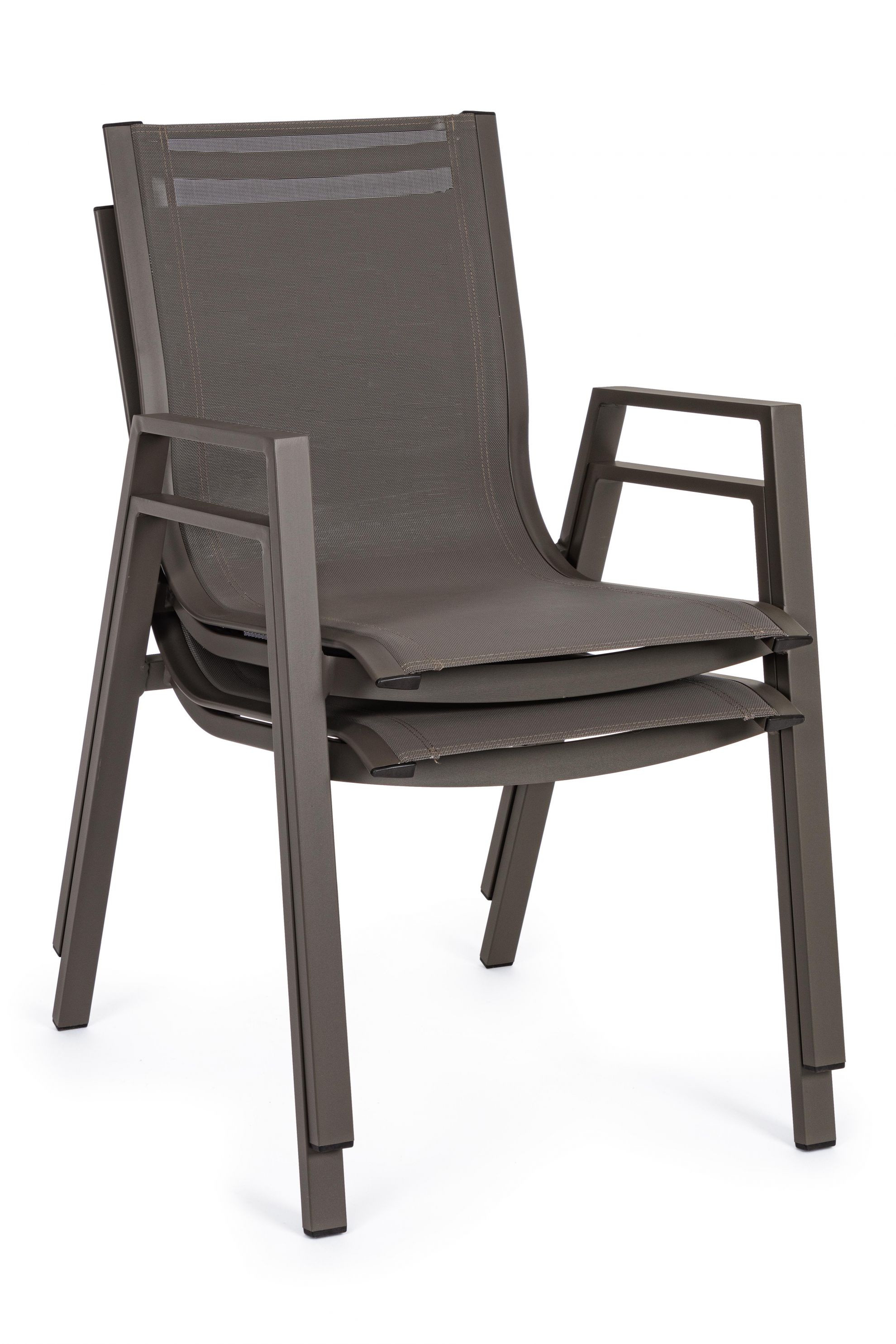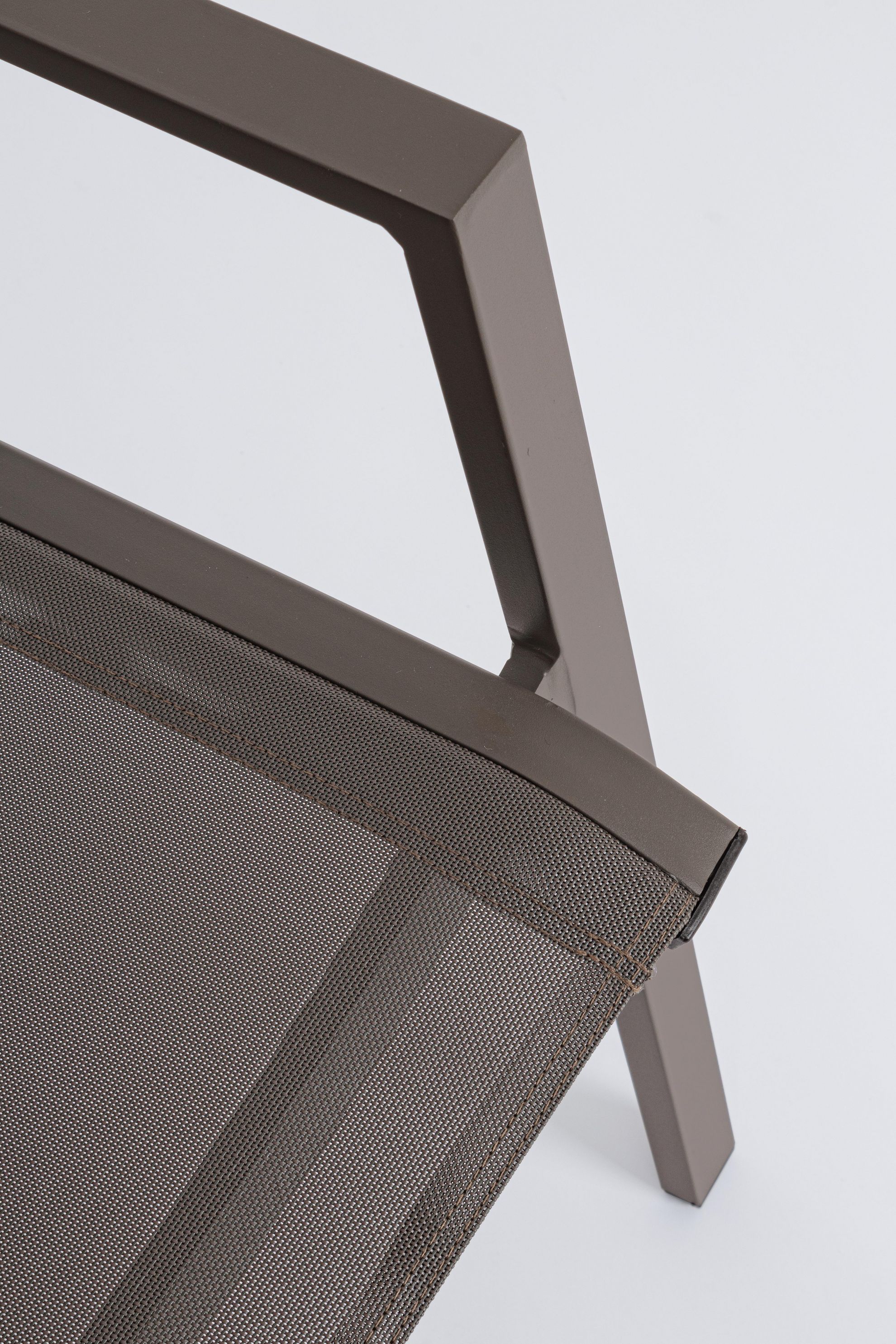 Scaun pentru exterior cu brate si structura din aluminiu.