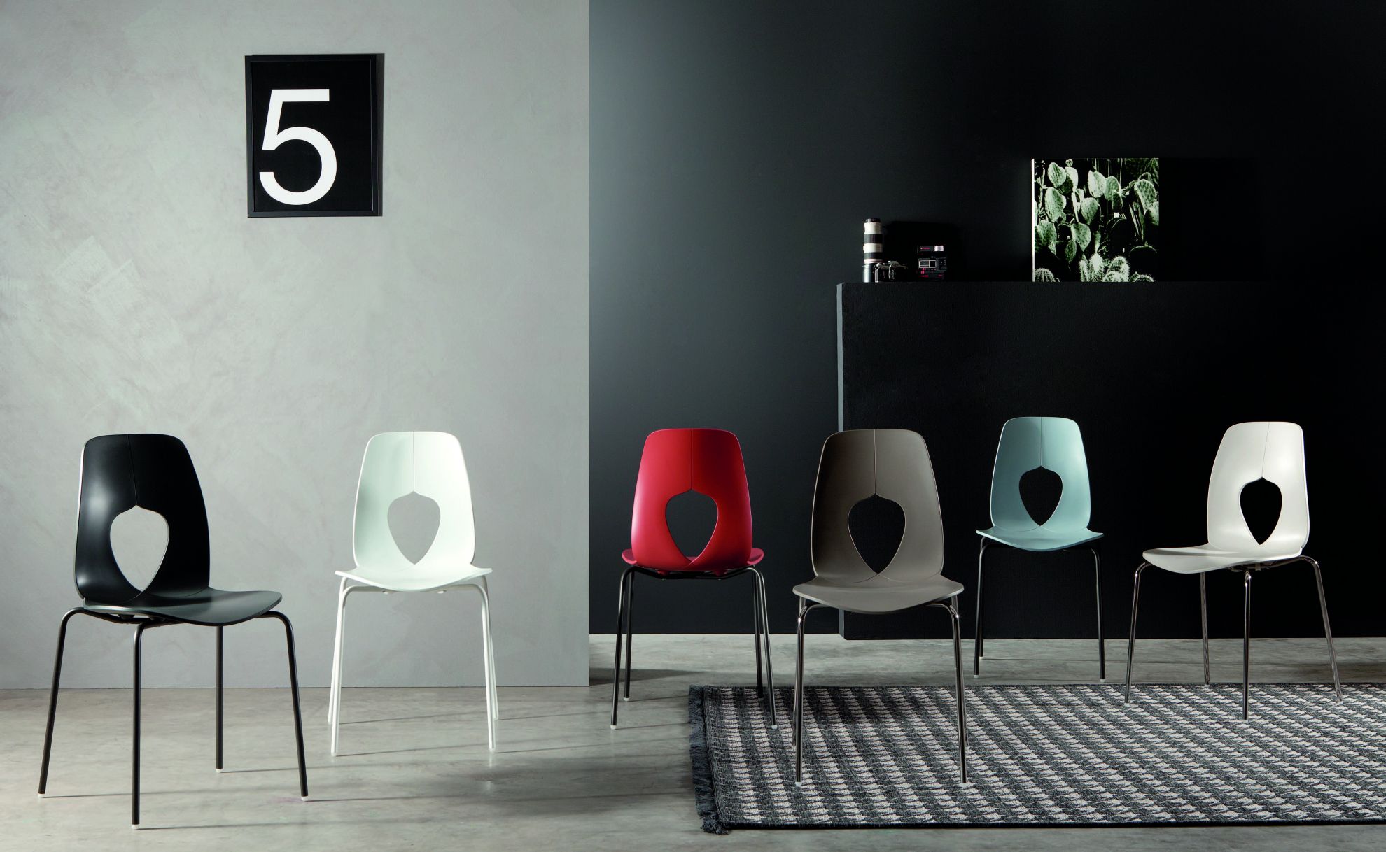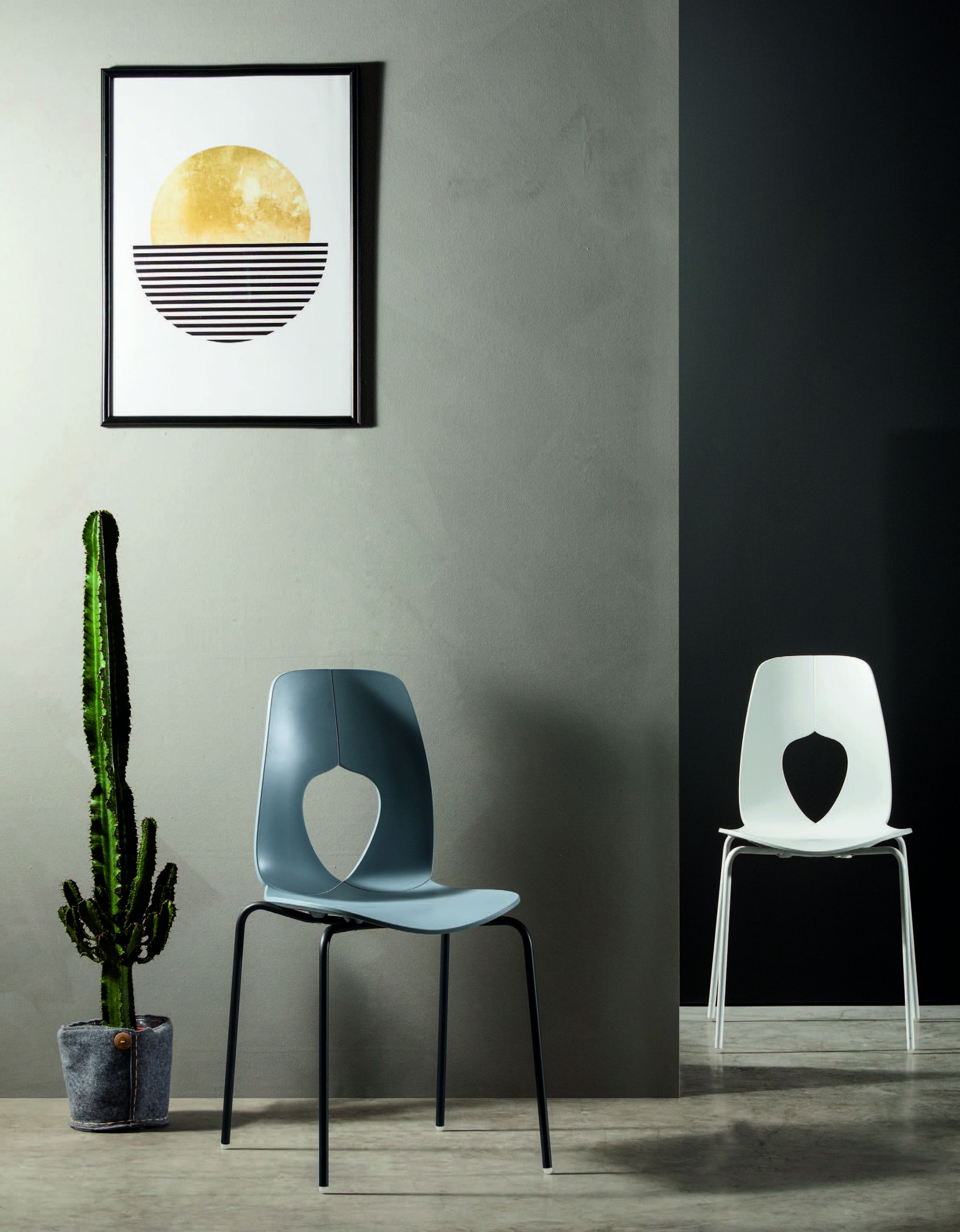 Scaunul HOLE de la Tonin Casa este realizat din polipropilena, un material de noua generatie, ecologic si rezistent. Are o structura din metal cromat sau lacuit si este disponibil in diverse culori.
