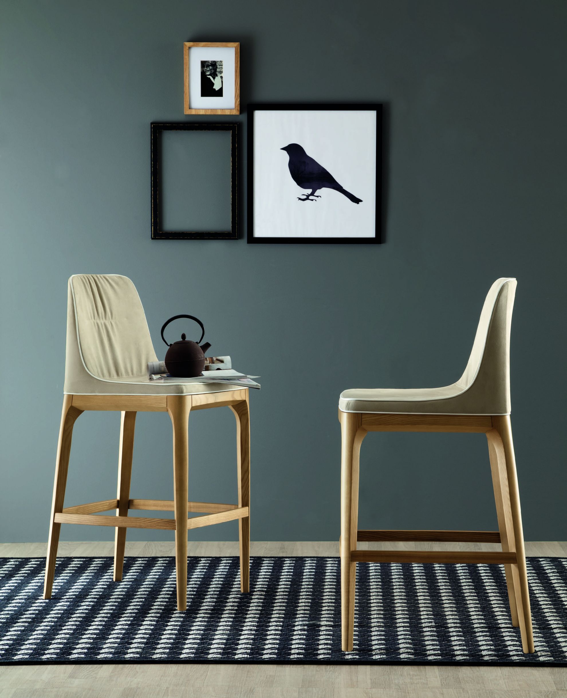 Scaunul pentru bar MIVIDA de la Tonin Casa este un scaun cu un design elegant si rafina, cu structura din lemn de stajar sau nuc si husa din piele.