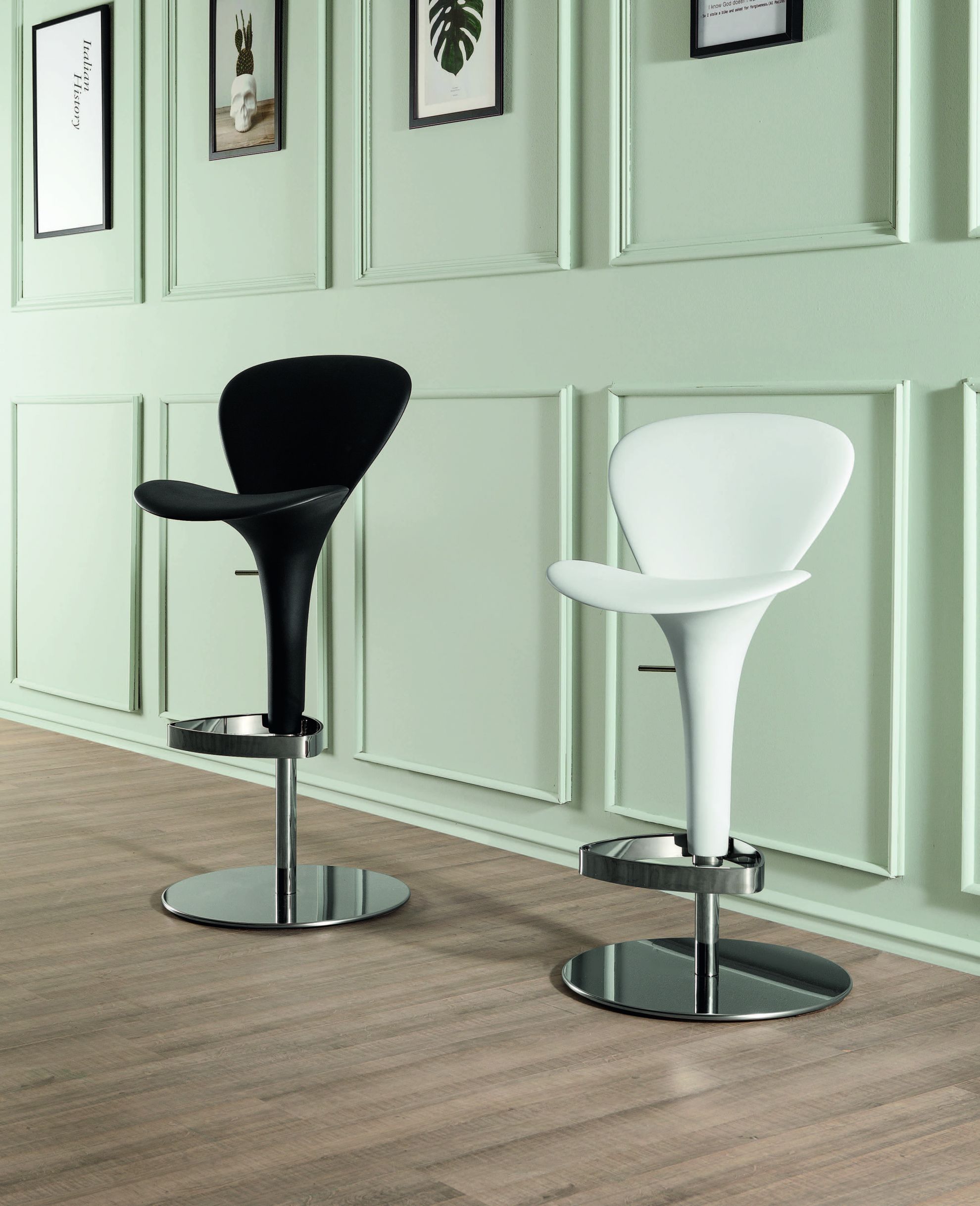 Scaunul OSLO de la Tonin Casa este un scaun pentru bar, rotativ, cu baza din metal cromat si structura din free-form tech.