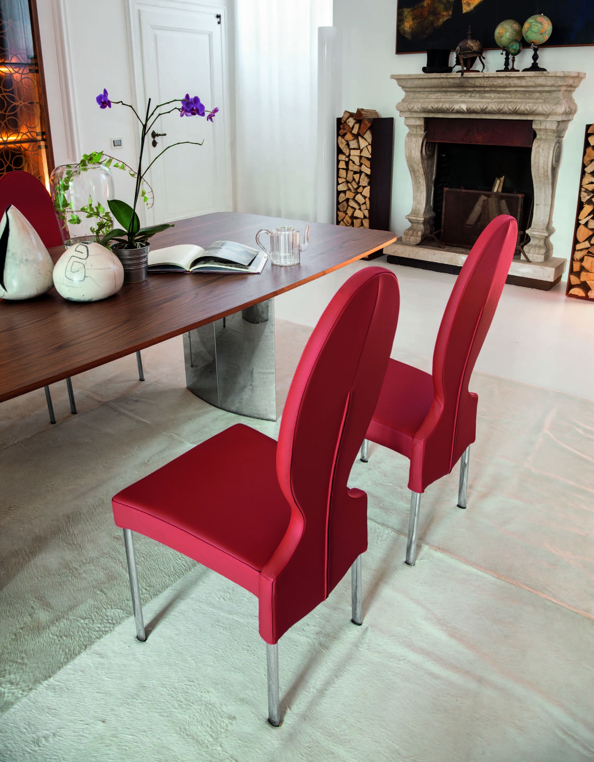 Realizat din spuma poliuretanica si finisat cu piele sau material textil, scaunul VIVIENNE de la Tonin Casa este disponibil in diverse culori si finisaje.