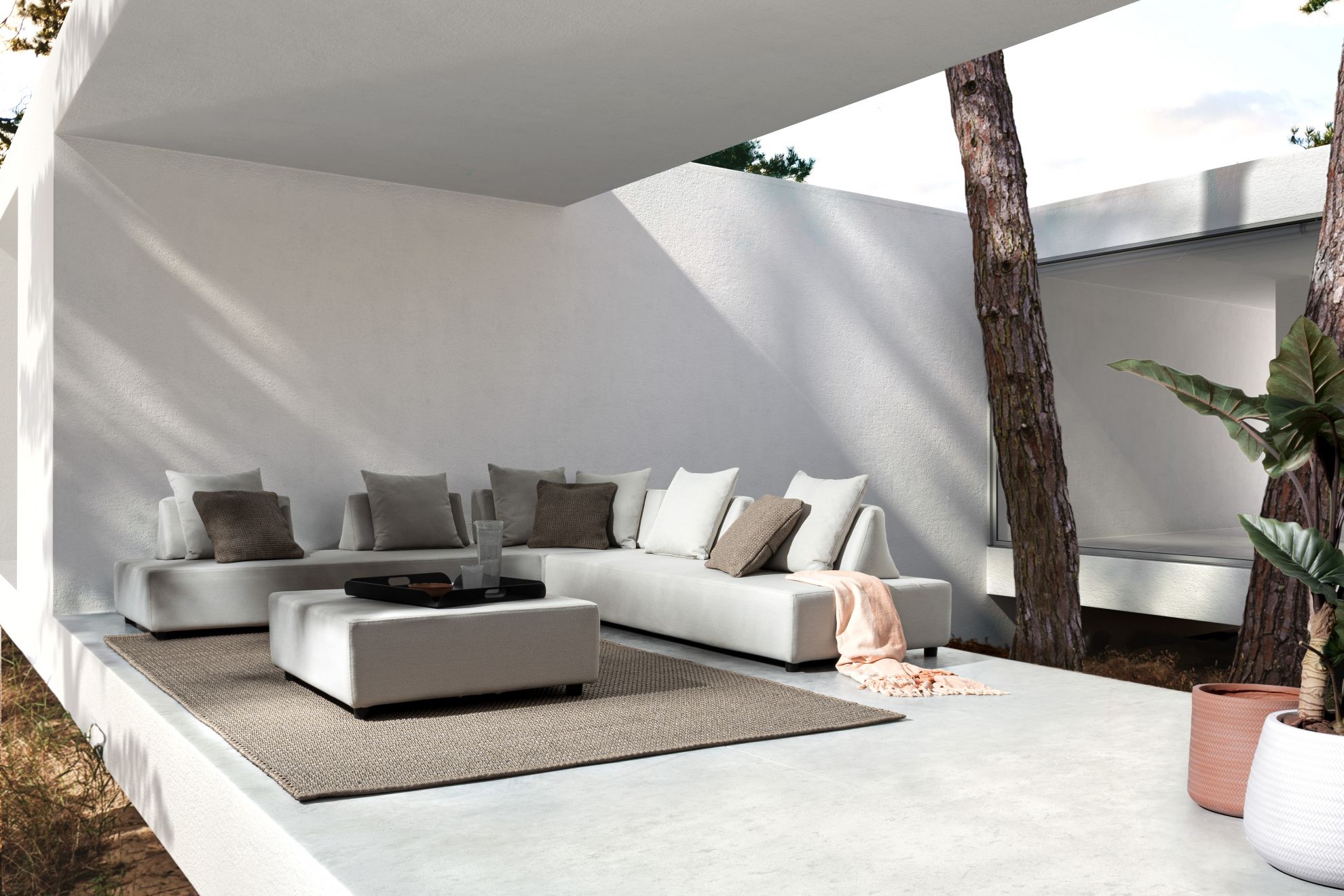Set coltar cu taburet pentru terasa Piper Sand de la Bizzotto.