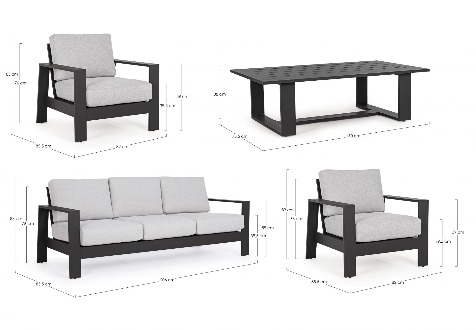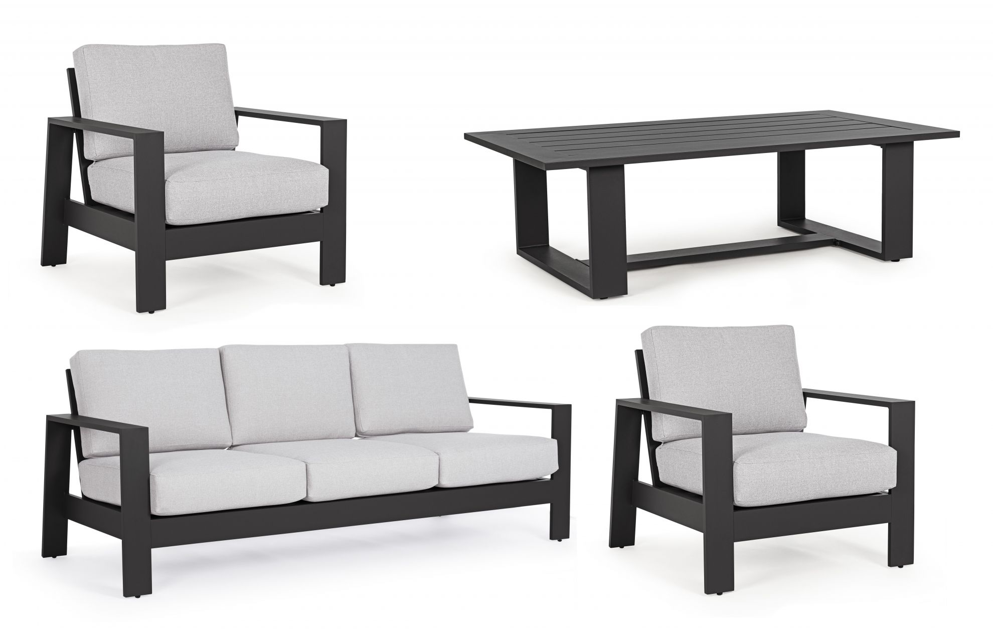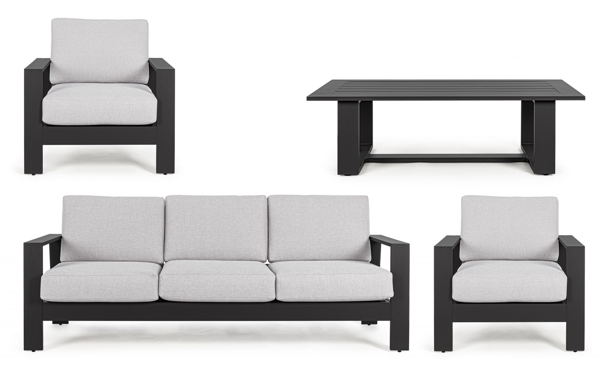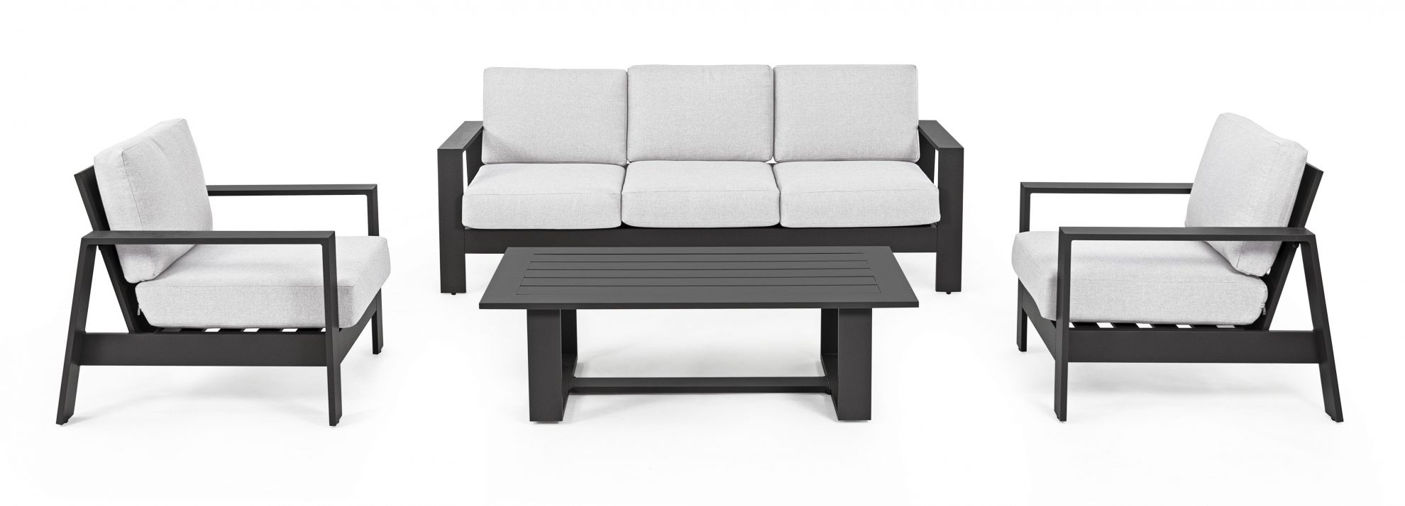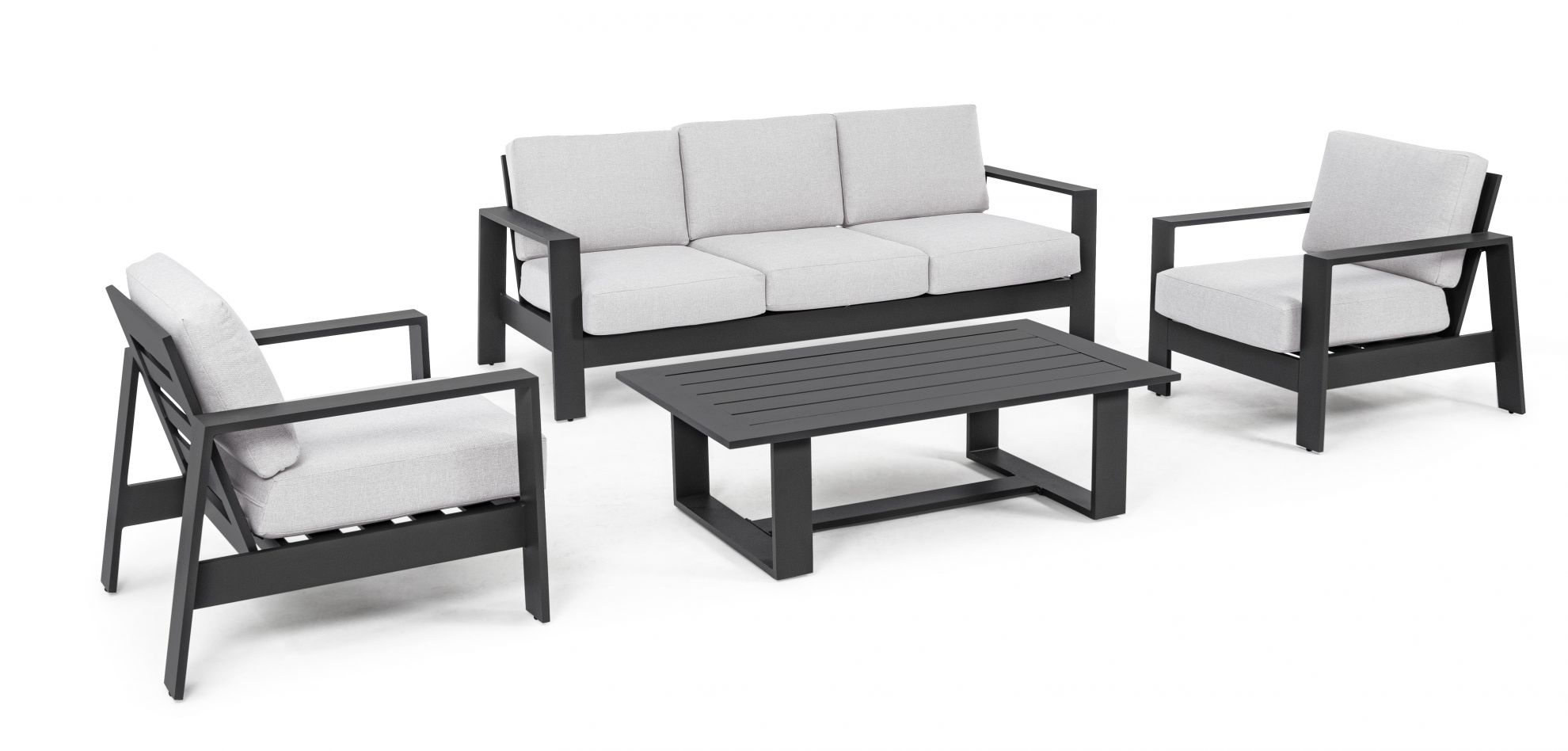 Set mobilier pentru gradina, terasa, Baltic, 2 fotolii + canapea 3 locuri + masuta de cafea, cafeniu