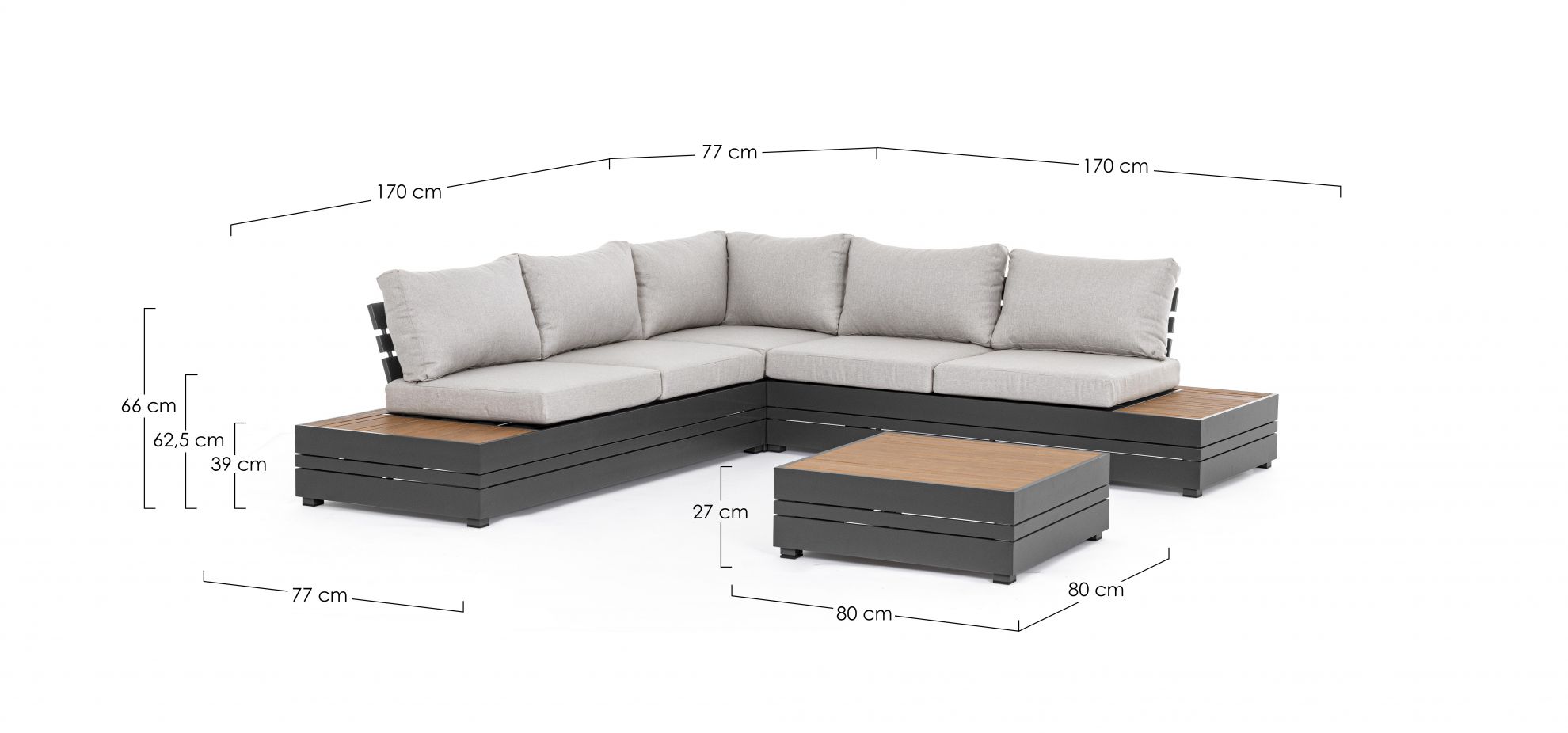 Modul colt: Lungime: 77 cm. / Adancime: 77 cm. / Inaltime: 66 cm.